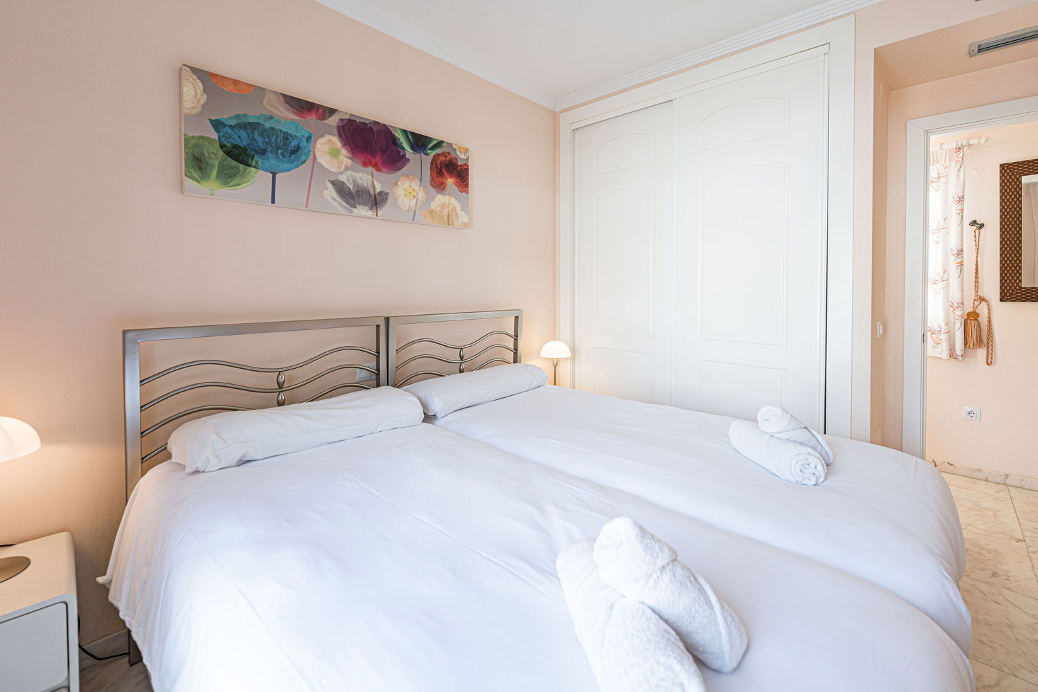 Functional design on two levels near the seaThe property stands out for its intelligent layout, which separates the sleeping area from the social area by just eight steps. It has two bedrooms: the master bedroom with a king-size bed and en-suite bathroom, and a second bedroom with two single beds, both with high-quality mattresses to ensure a good night's sleep. The separate kitchen is large and fully equipped for long stays, complemented by a main bathroom with a bathtub. Central air conditioning throughout the accommodation ensures the perfect temperature for a good night's sleep, even on the hottest days.