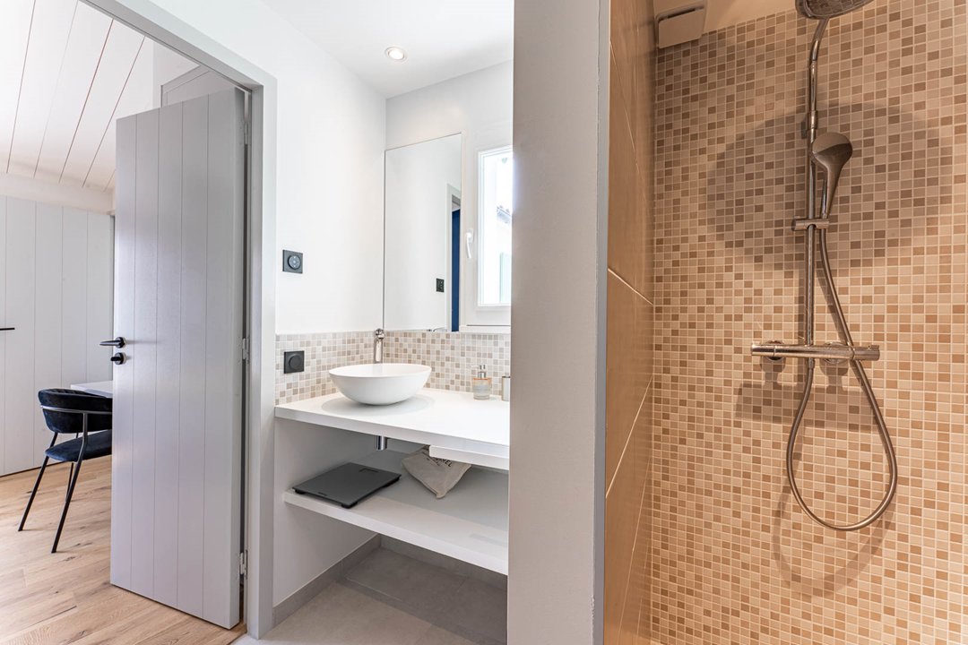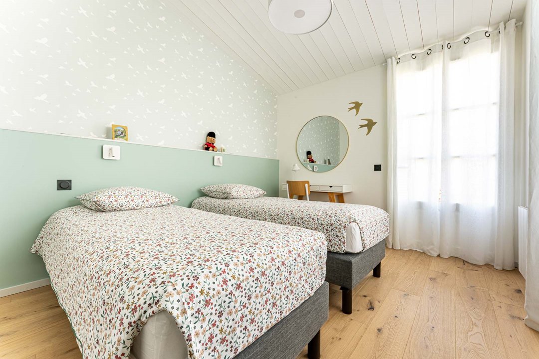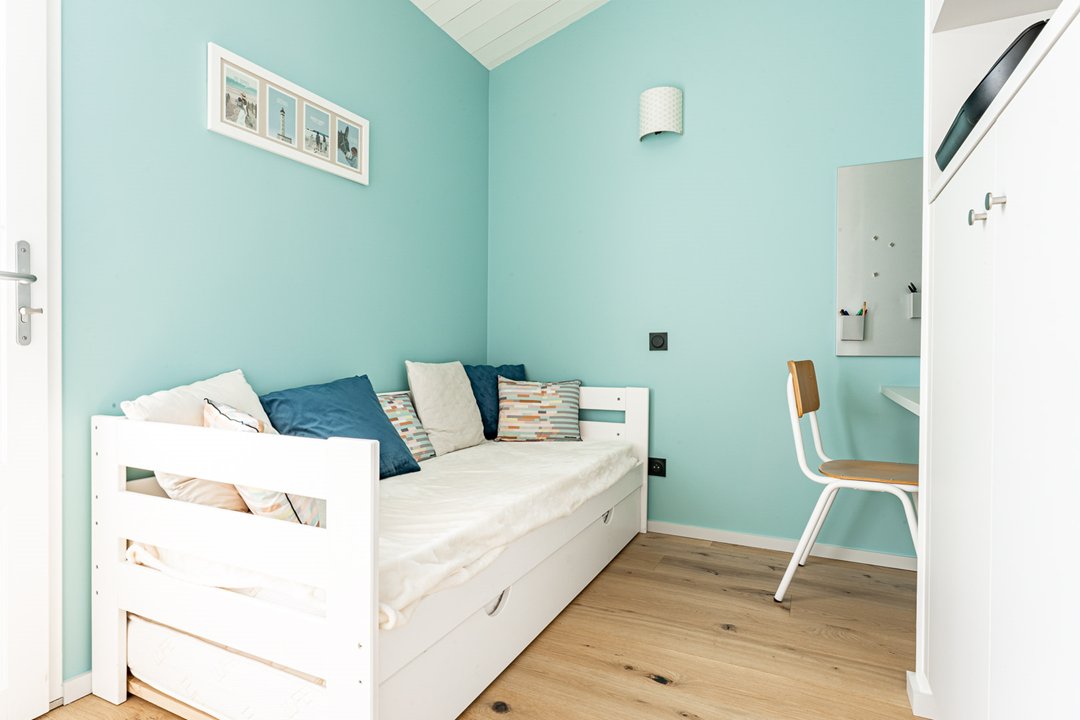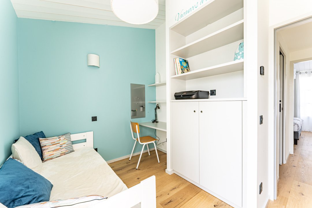The children will appreciate their bedroom with two single beds and storage, while a clever cabin bedroom, which can be used as an office area, is equipped with a trundle bed. These two bedrooms share a bathroom.