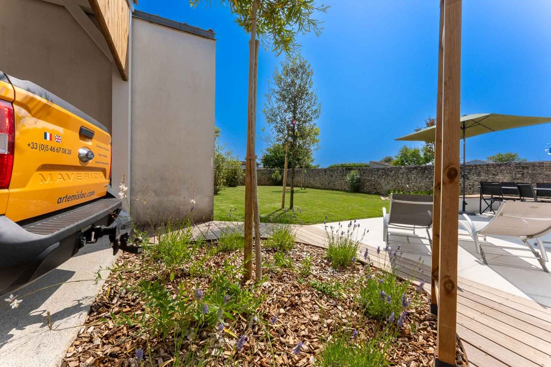 The lush garden is a true haven of peace, ideal for relaxing and enjoying the sun and nature.