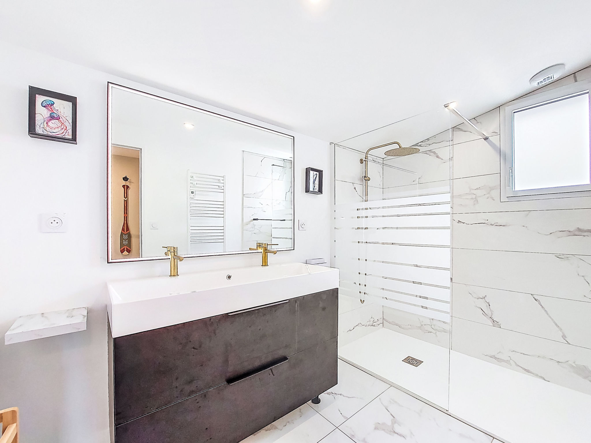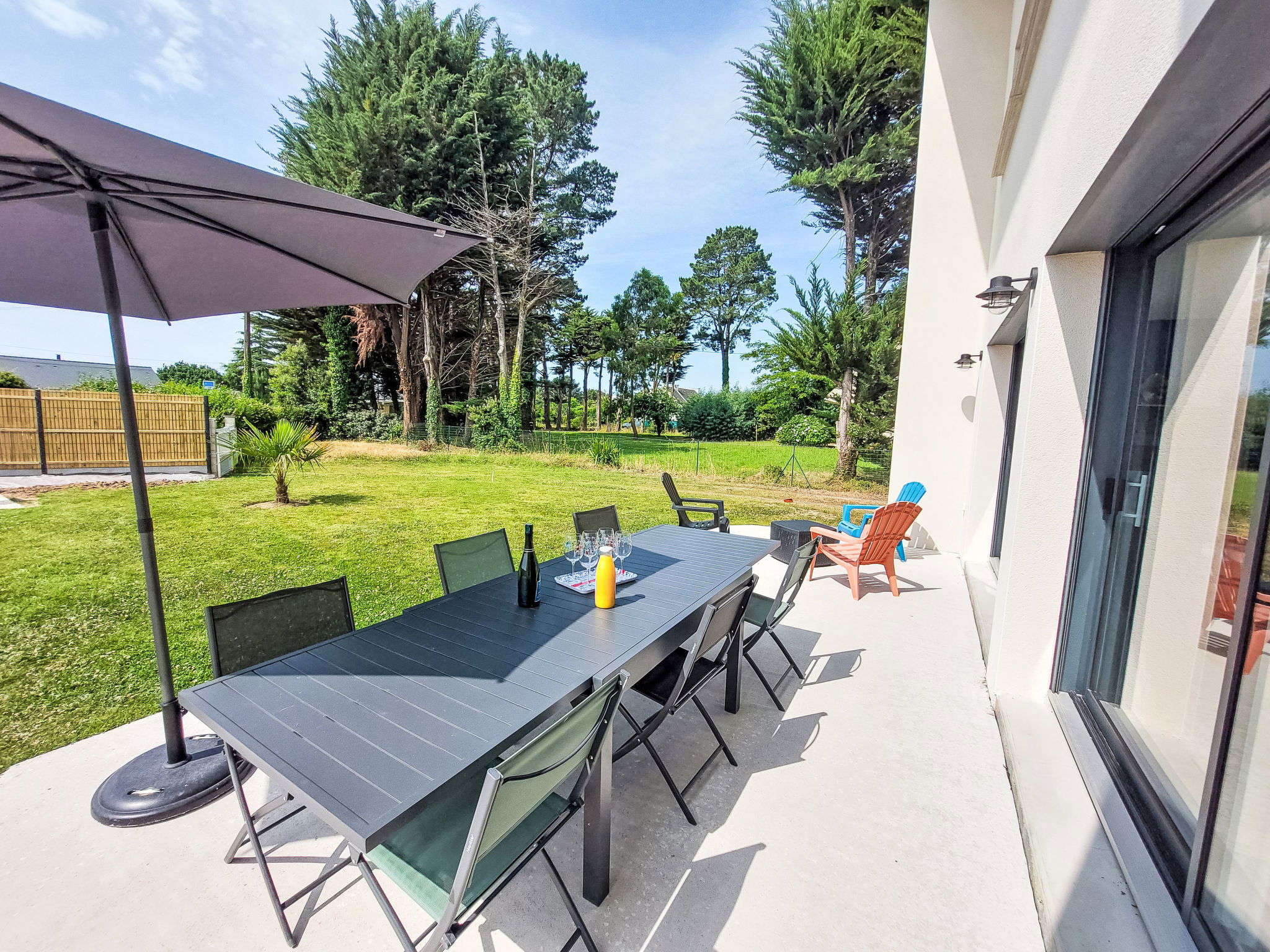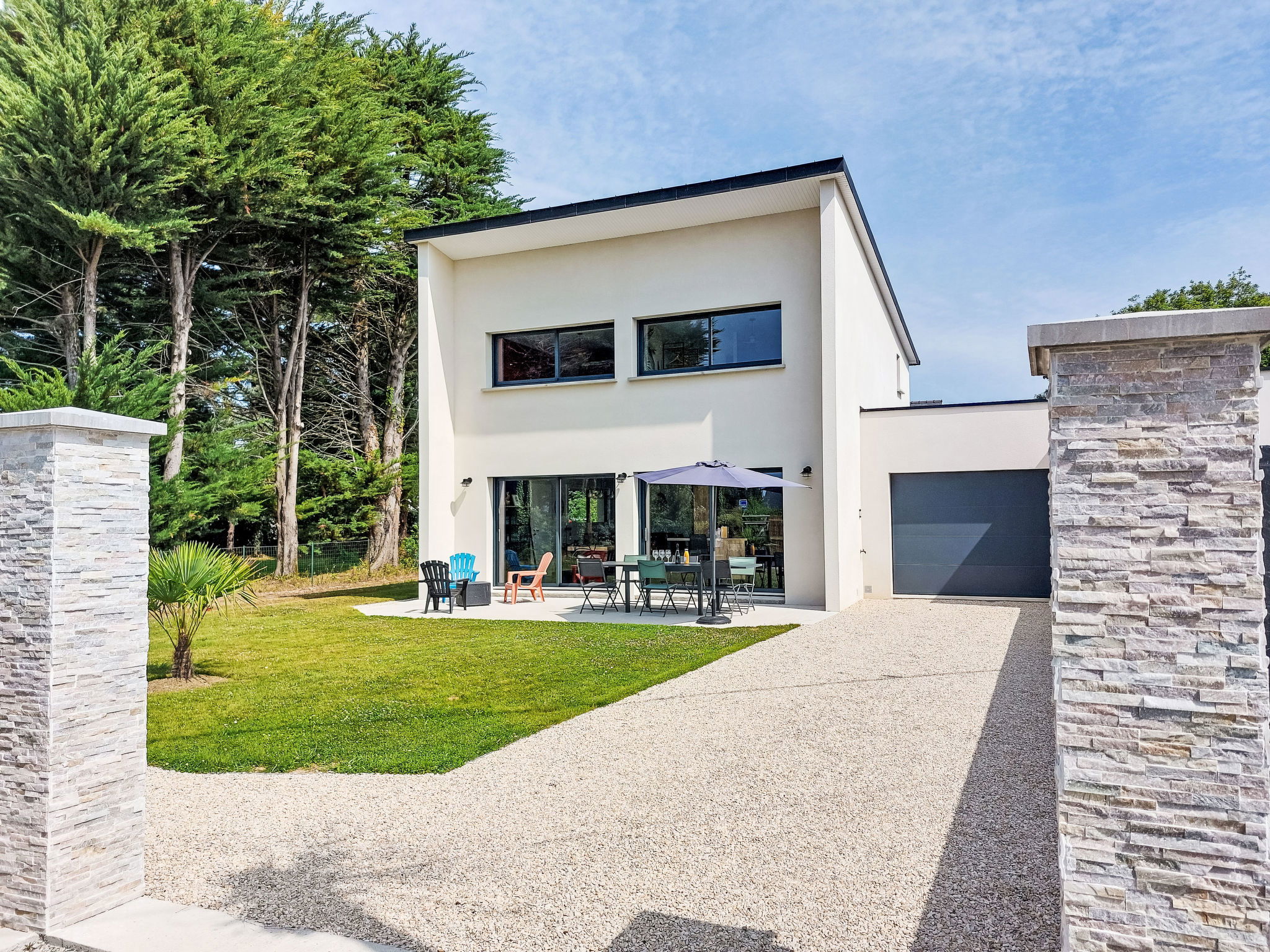 Modern, very comfortable house "Charme de la Plage du Rouvran", built in 2023. 1.1 km from the centre of Le Tour du Parc, 470 m from the sea, 470 m from the beach. Private: property 340 m2 with lawn. Storeroom available. Parking on the premises. Grocery 1.1 km, supermarket 1.1 km, restaurant 500 m, bus stop "Surzur" 9.3 km, sandy beach "Plage de Rouvran" 470 m. Nearby attractions: Musée de l'Ostréiculture 850 m, Pointe de Penvins (Parc Accrobranche) 5 km, Château de Suscinio 6.2 km, Golfe du Morbihan 8.5 km, Sarzeau 9.4 km, Arzon-Vannes 22 km. Hiking paths: GR34. Part of the house is closed and unoccupied.