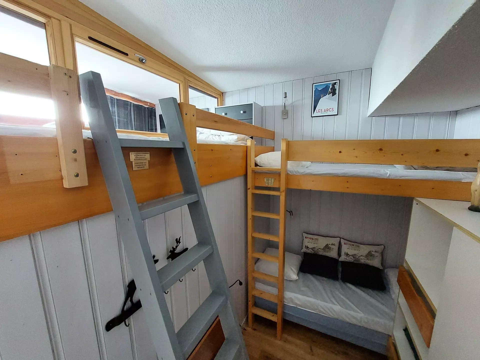 A second cabin bedroom with a set of three 80 cm beds, including 2 high beds.