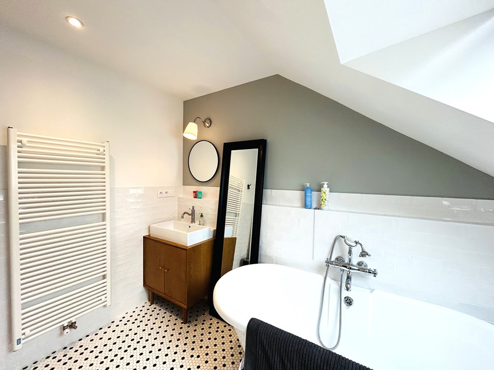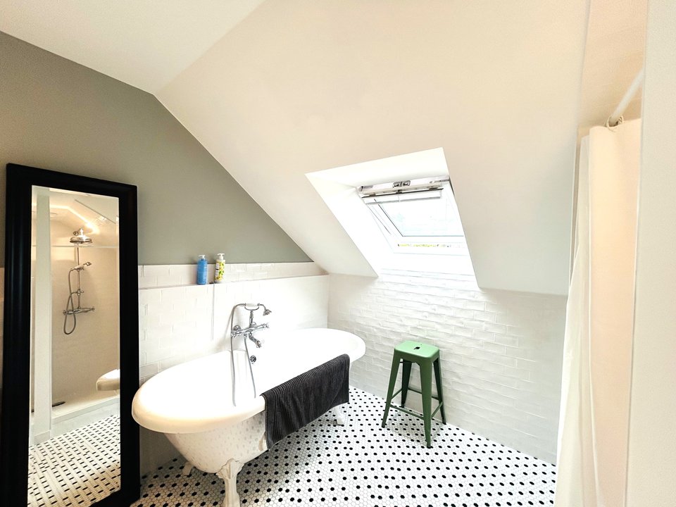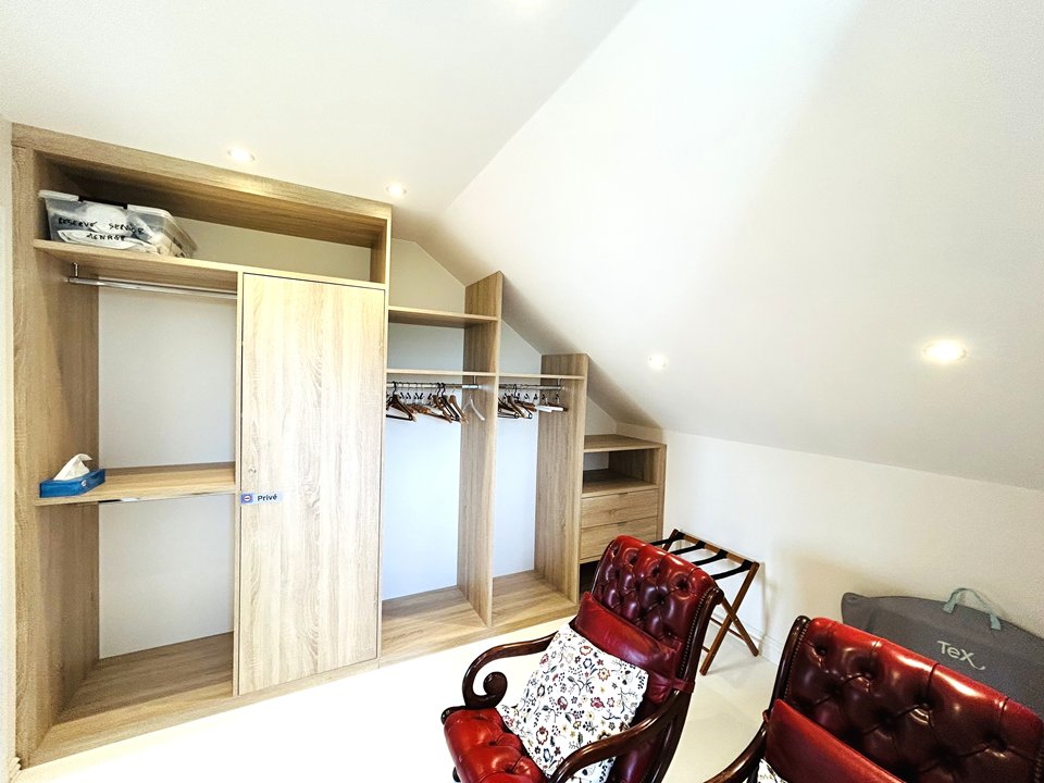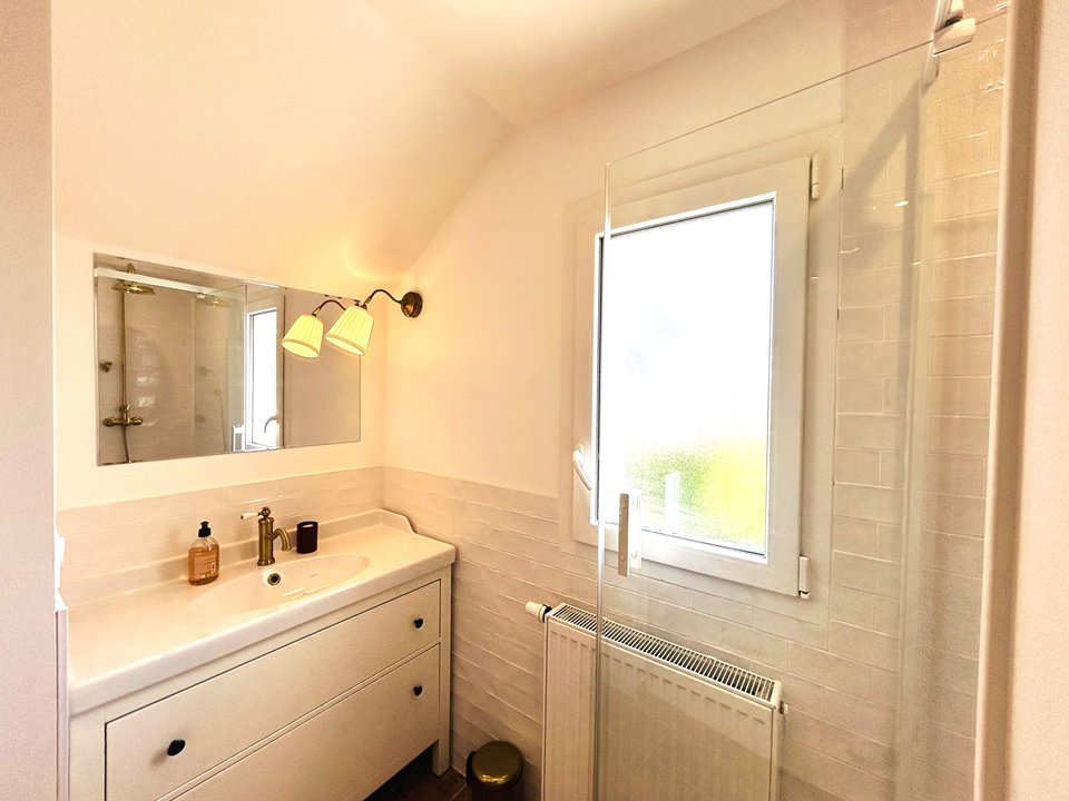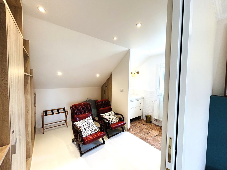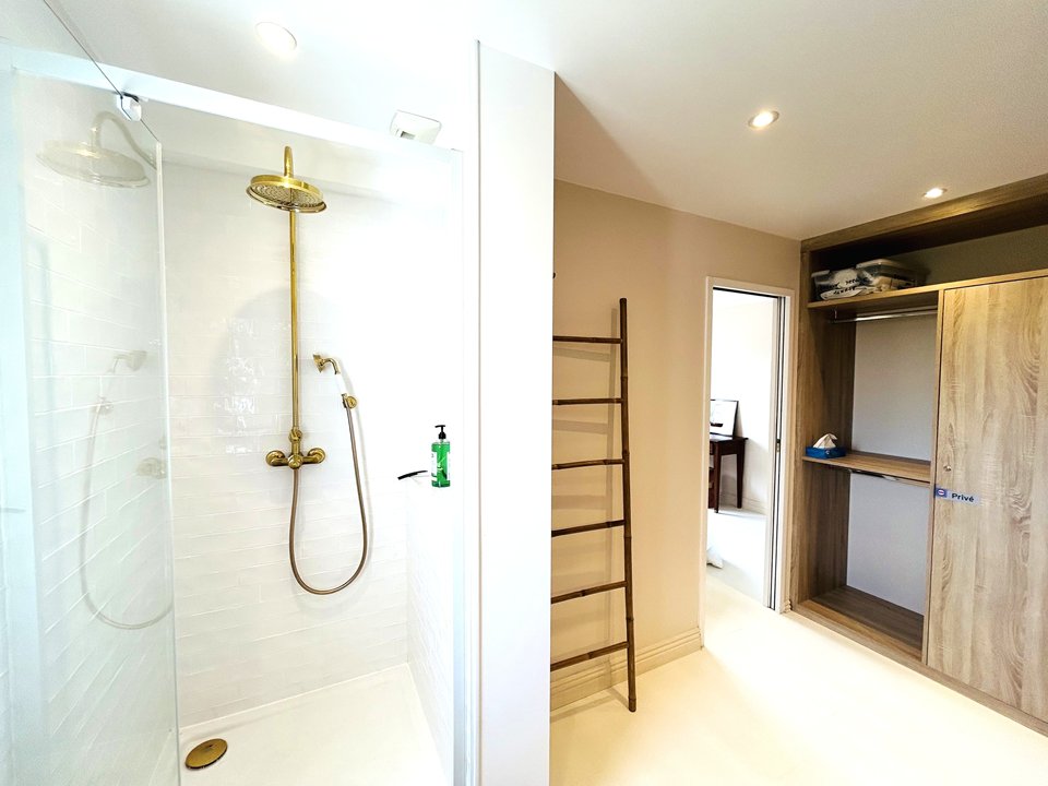 - A 1st bedroom with 1 double bed 160 cm, dressing room and private bathroom (shower, sink)
