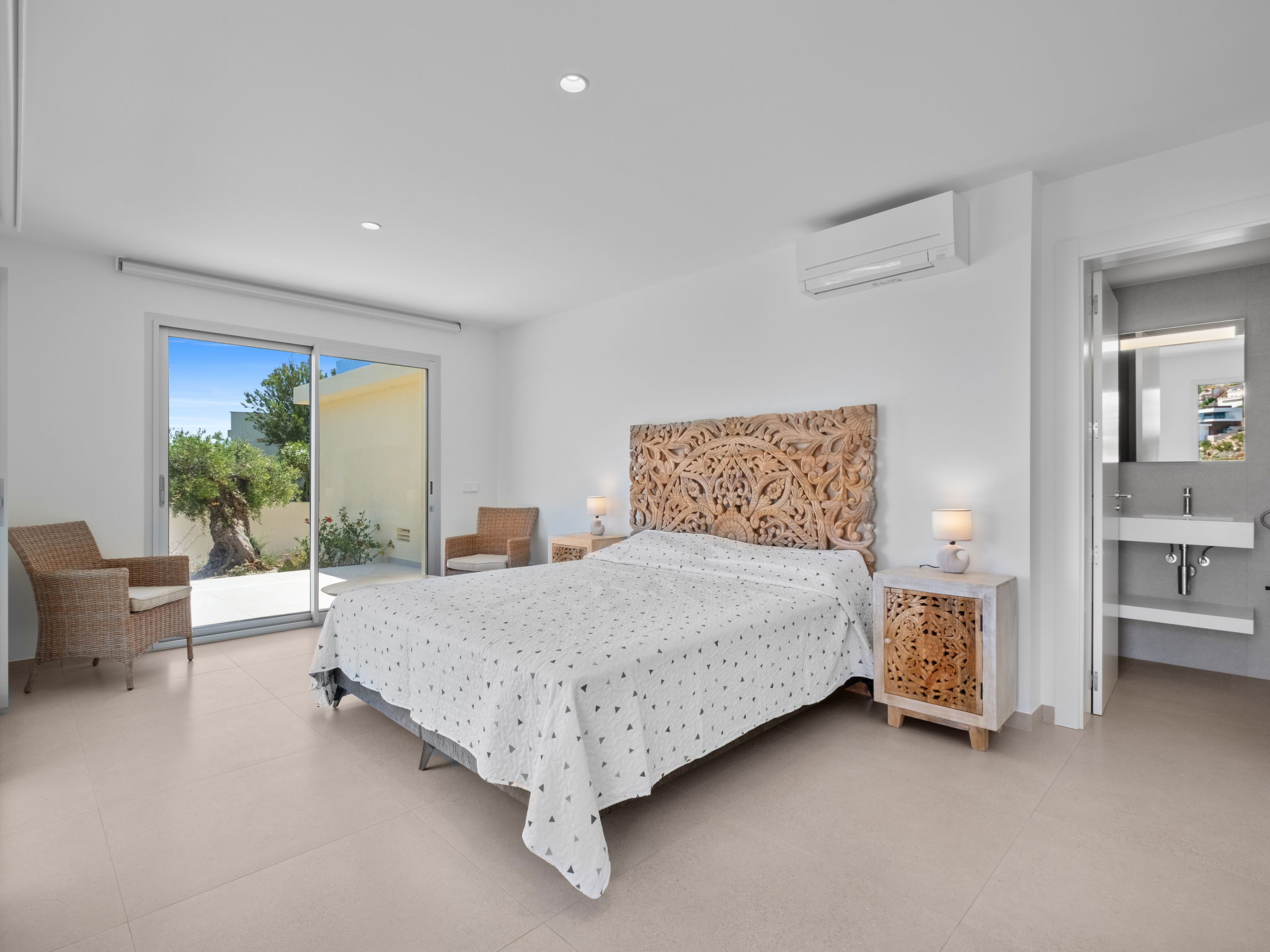 "Iris", 5-room villa 229 m2 on 2 levels. Spacious and bright, very comfortable and beautiful furnishings: open living/dining room with panoramic window with digital TV, air conditioning and forced-air heating. Exit to the terrace, to the swimming pool. 1 room with 1 french bed (1 x 180 cm, length 200 cm), shower/WC, double hand-basin, air conditioning and forced-air heating. 1 room with 1 french bed (1 x 150 cm, length 200 cm), air conditioning and forced-air heating. 1 room with 2 beds (90 cm, length 200 cm), air conditioning and forced-air heating. Open kitchen (oven, dishwasher, 3 induction hot plates, toaster, kettle, microwave, electric coffee machine). Shower/WC, double hand-basin. Solar power. On the lower ground floor: (exterior staircase), 1 room with 1 french bed (1 x 180 cm, length 200 cm), shower/WC, air conditioning and forced-air heating. Exit to the terrace. Large terrace. Terrace furniture, barbecue, deck chairs, sitting area. Very beautiful view of the sea and the resort. Facilities: washing machine, iron, children's high chair, baby cot for up to 2 year olds, hair dryer. Internet (WiFi, free). Parking. Please note: non-smoking house. CV-VUT0517425-A // Reg. Nr.: ESFCTU0000030380009838770000000000000CV-VUT0517425-A5