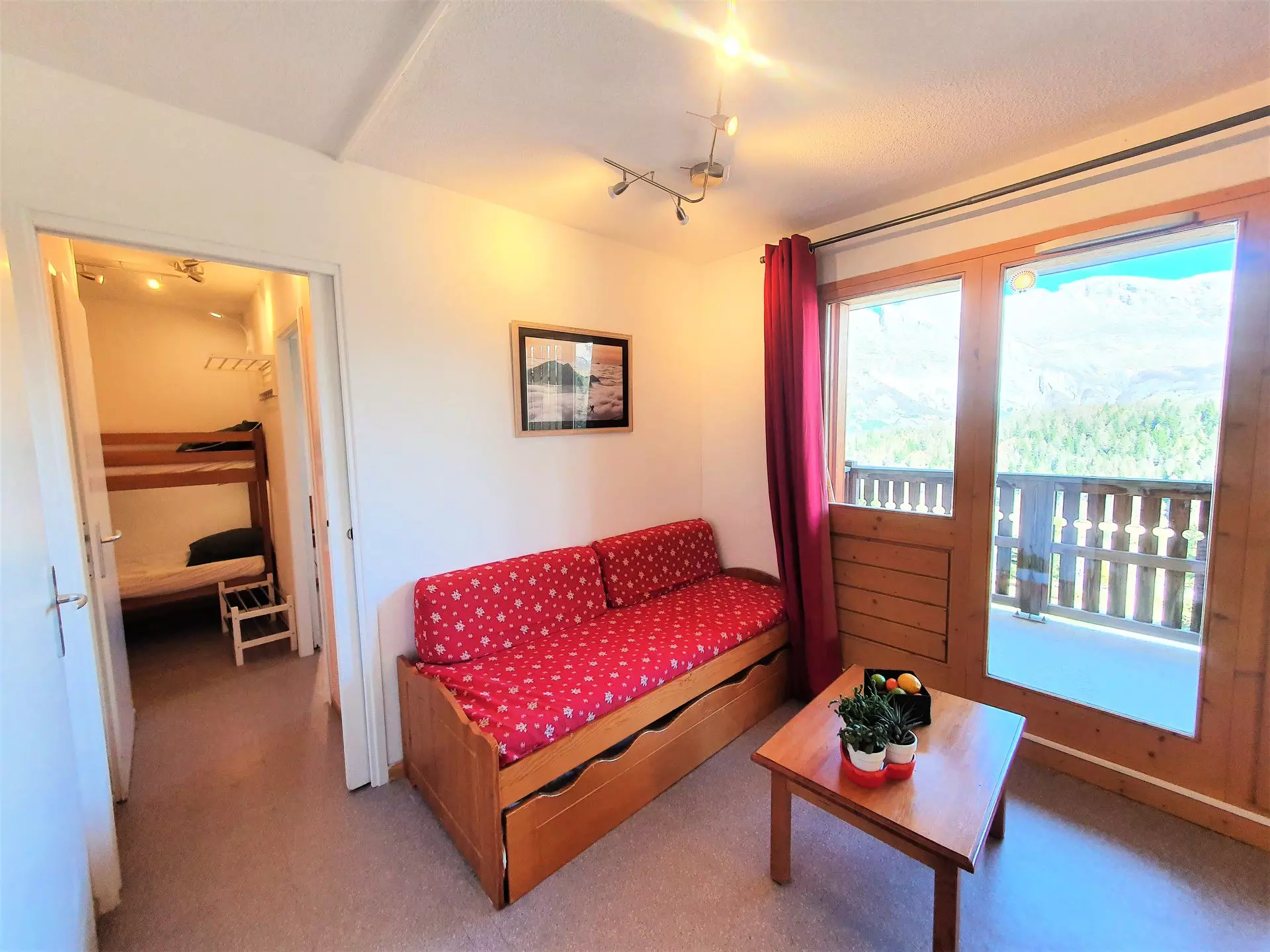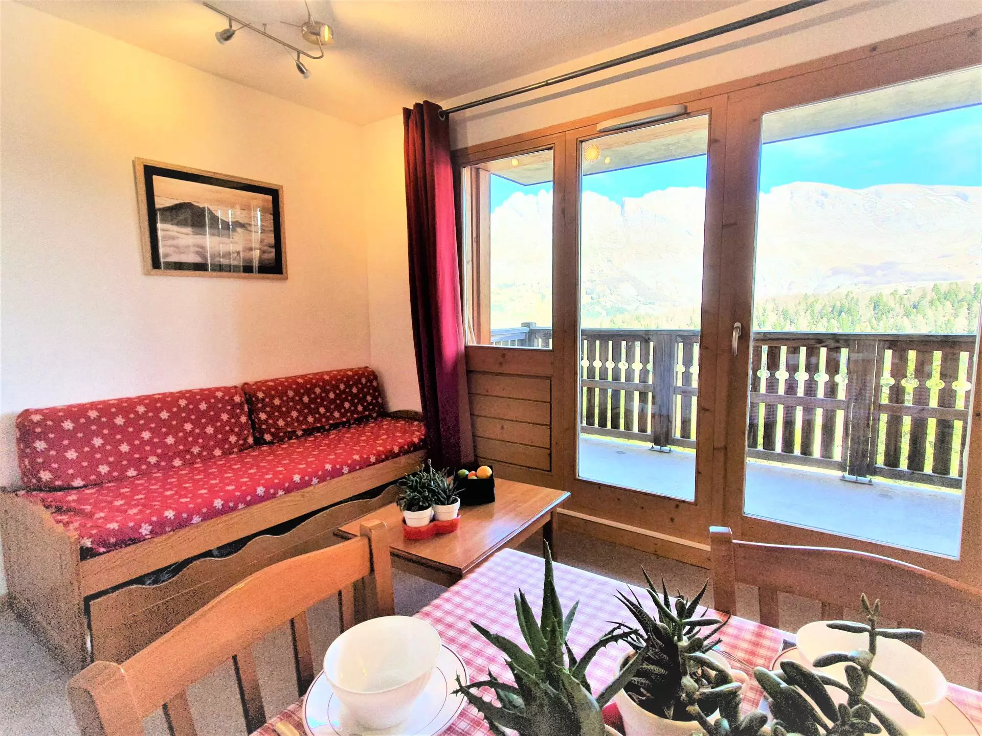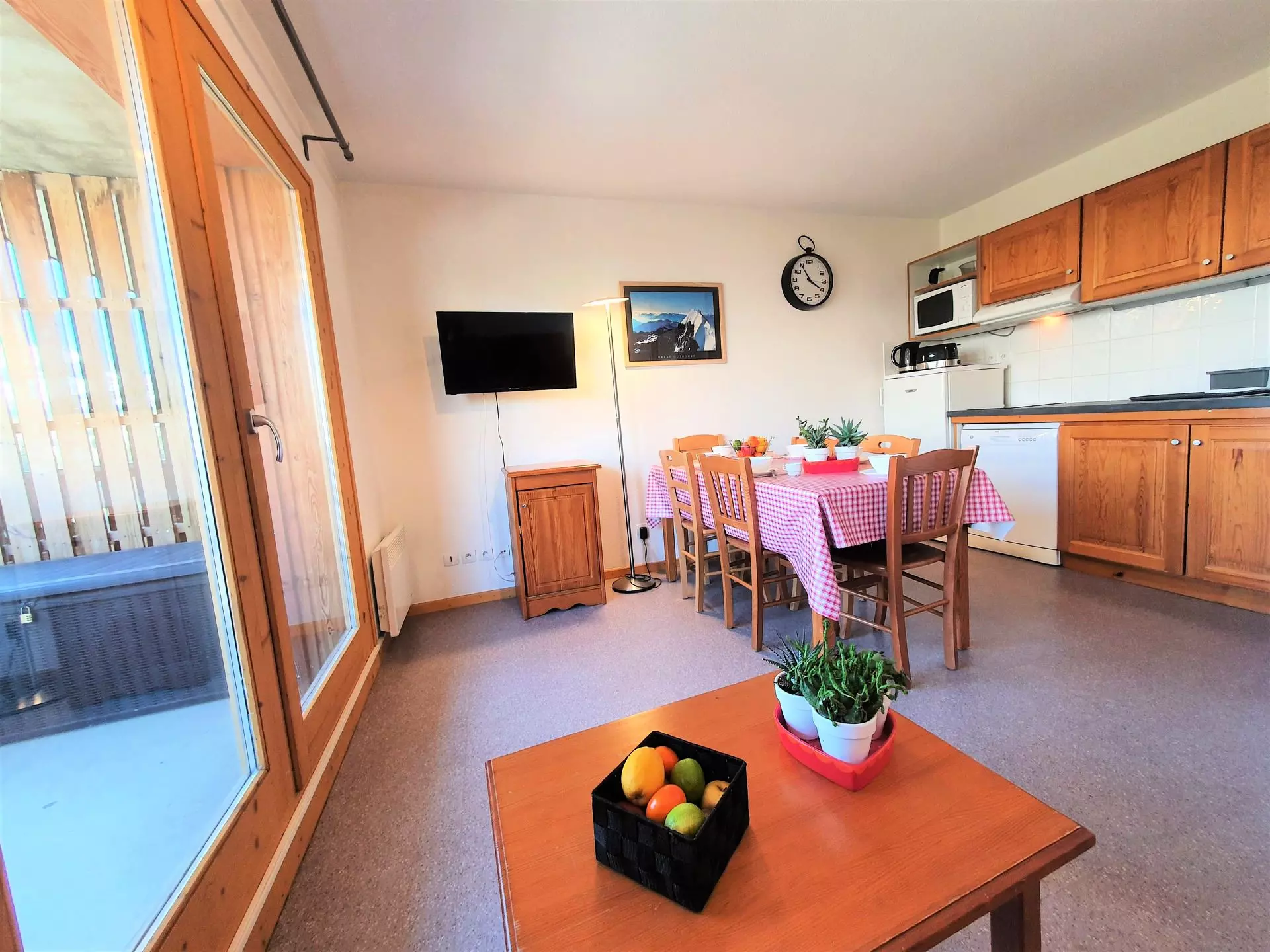 Departure from the slopes 100 m away - direct link via footbridge to the Tourist Office and slopes.