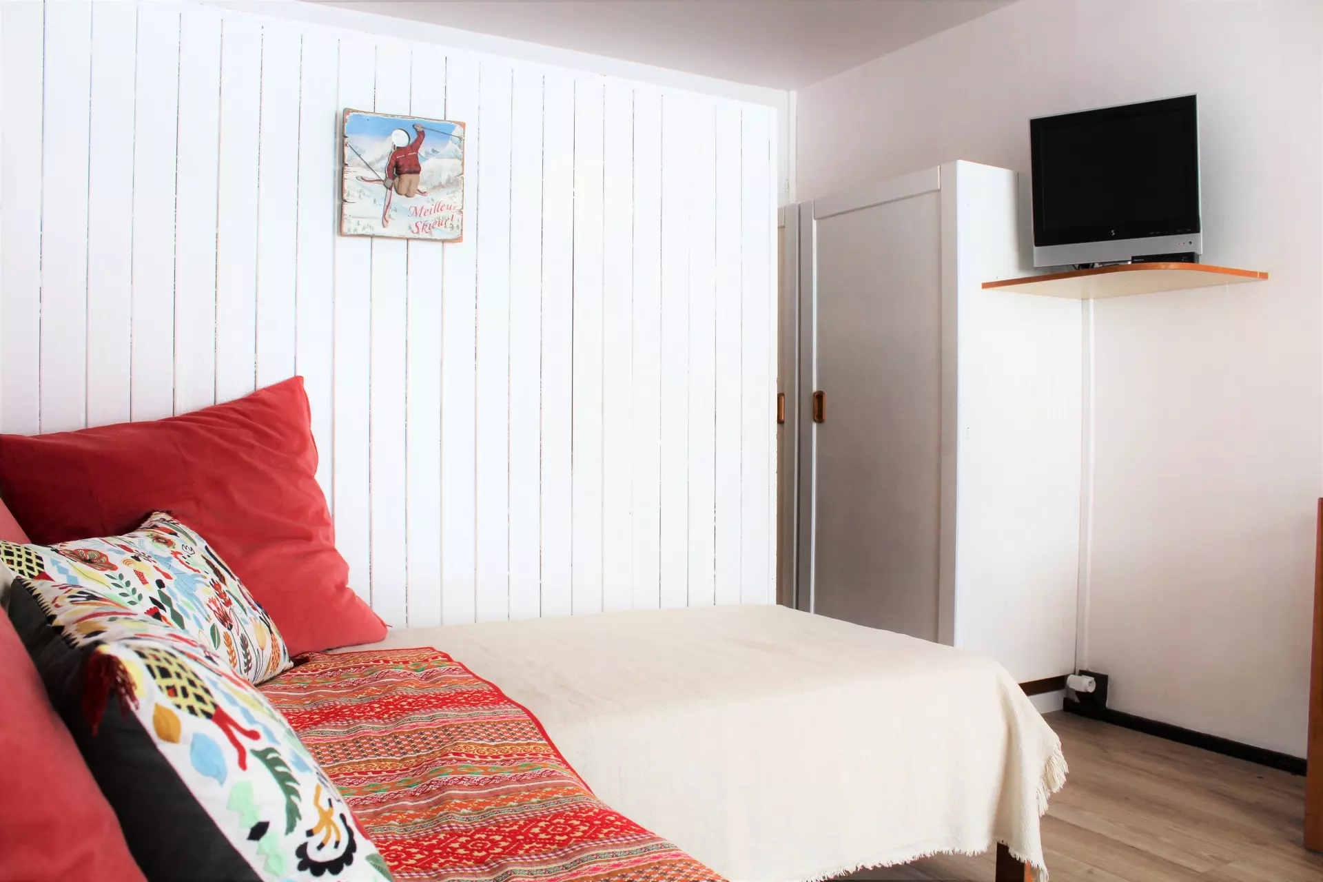 Renovated 4-person studio located south side with balcony, facing the slopes and magnificent view of the Pic de Bure.