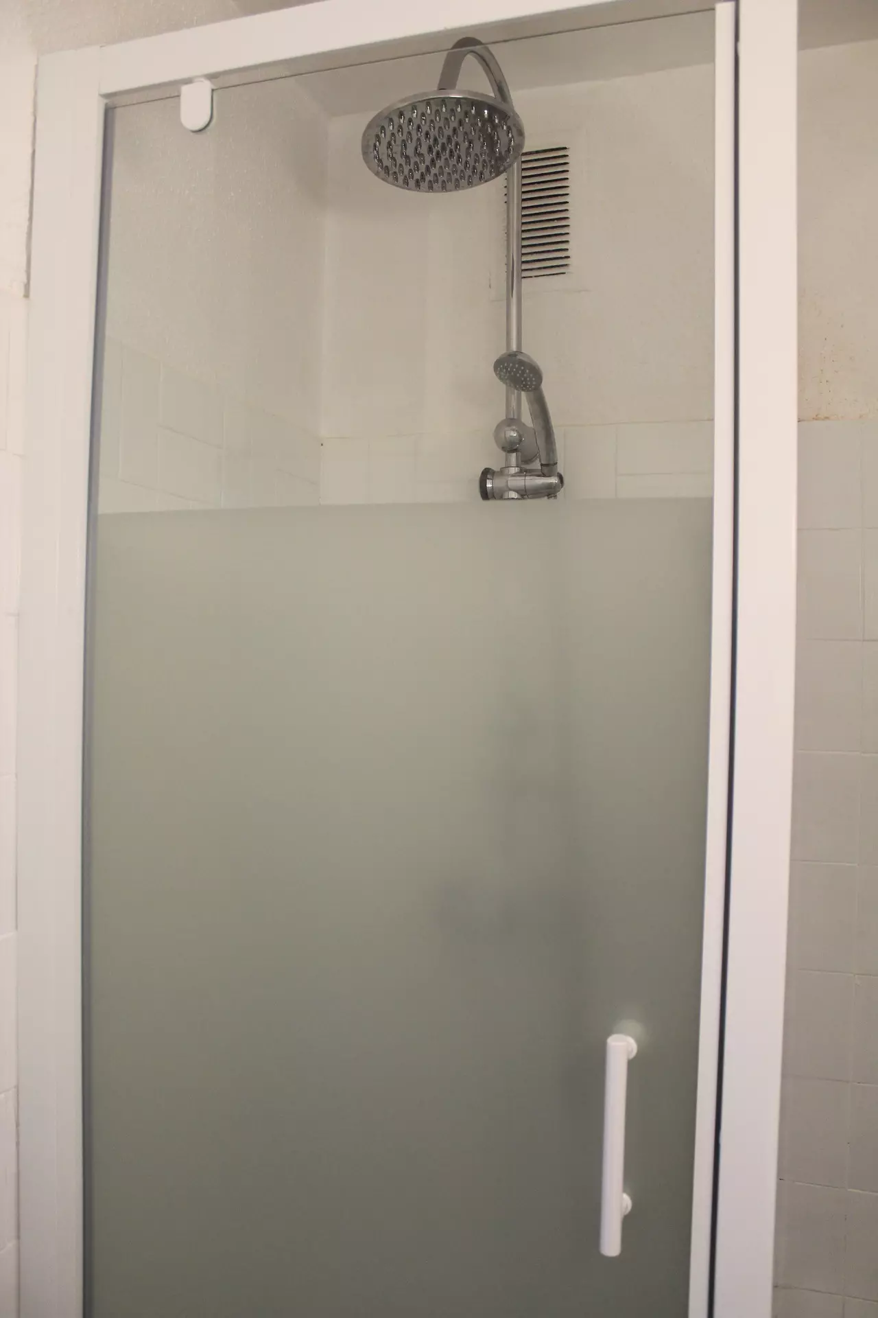 Shower room with shower, sink and toilet.