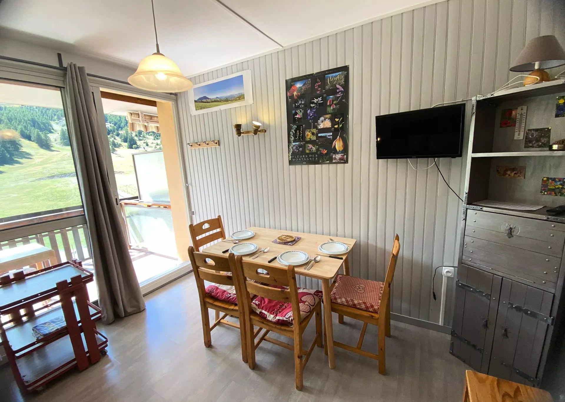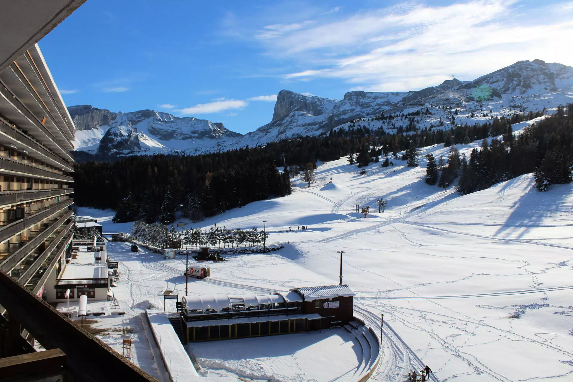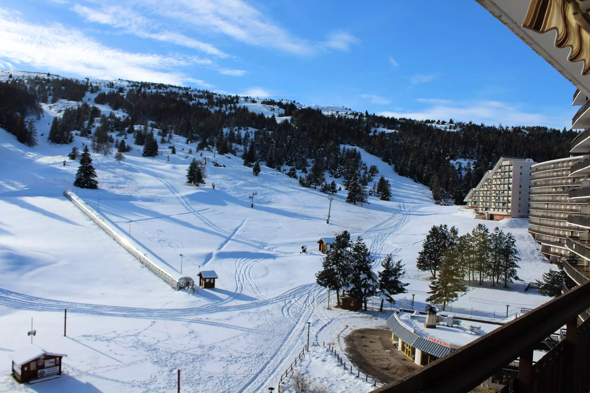 Balcony with magnificent views of the ski area and the Pic de Bure. South-facing. Studio at the foot of the slopes. Shops and services are located on the ground floor of the residence.