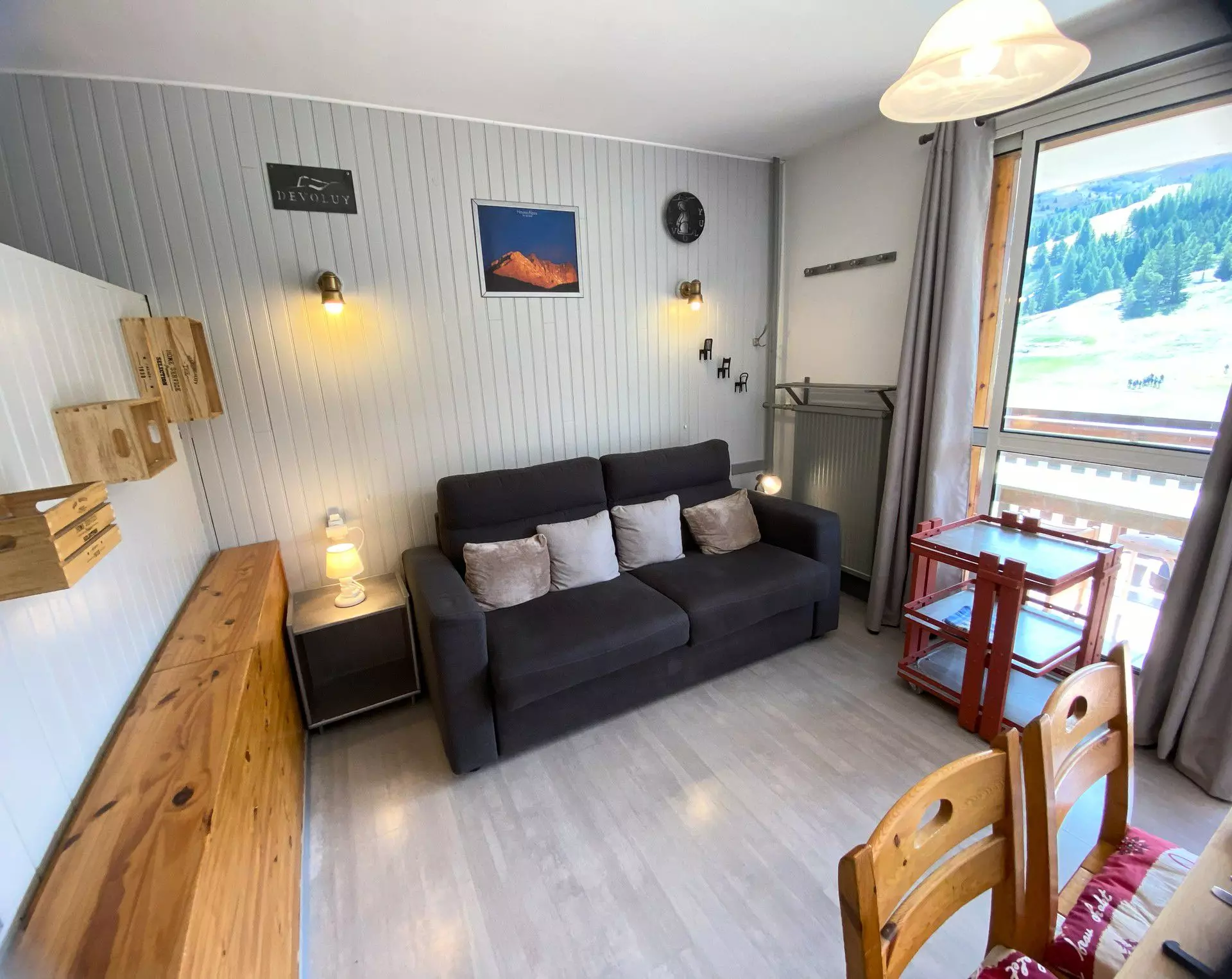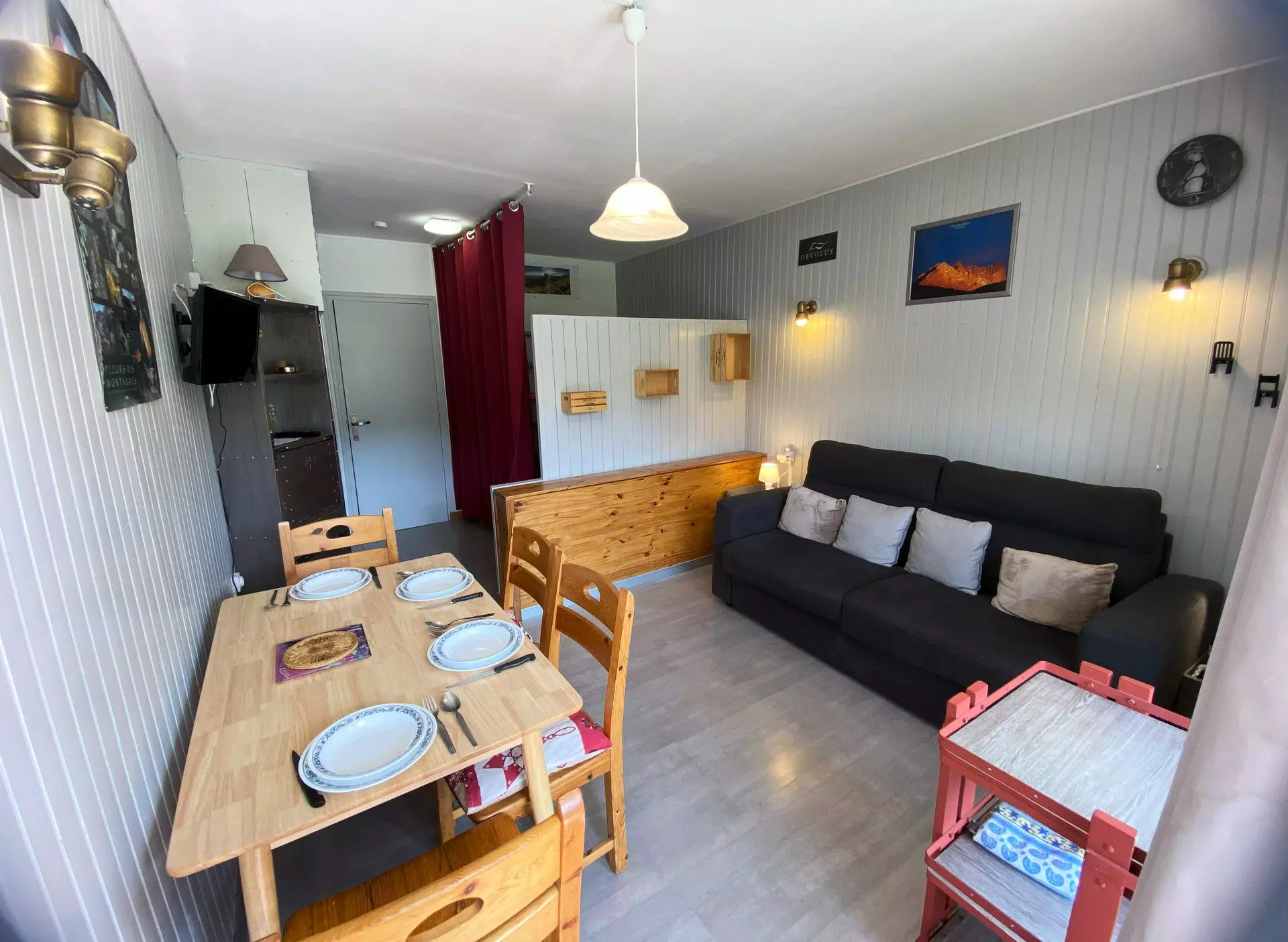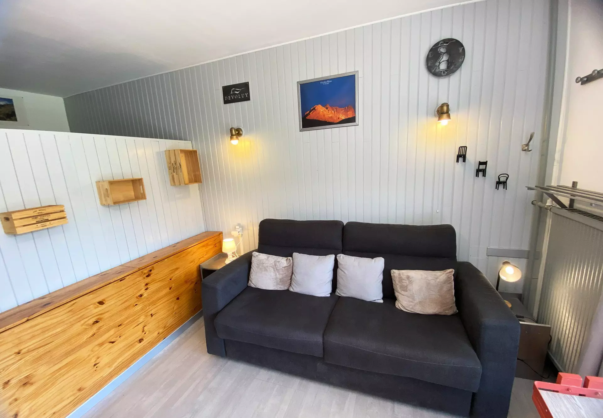 Balcony with magnificent views of the ski area and the Pic de Bure. South-facing. Studio at the foot of the slopes. Shops and services are located on the ground floor of the residence.