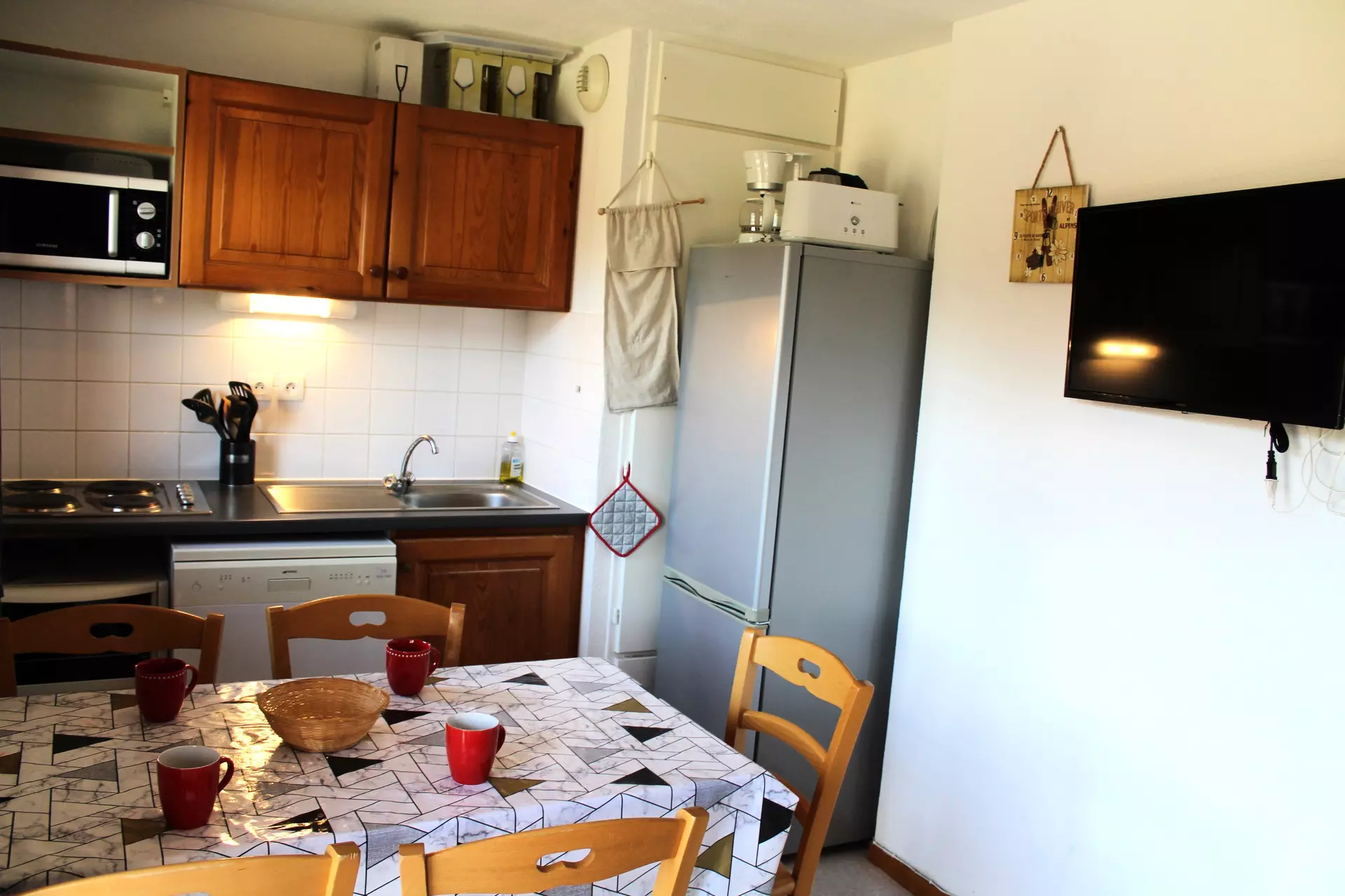 Fully equipped kitchenette. Dishwasher, microwave, oven, filter coffee maker, toaster, electric kettle, raclette and fondue set. Large refrigerator with freezer compartment.