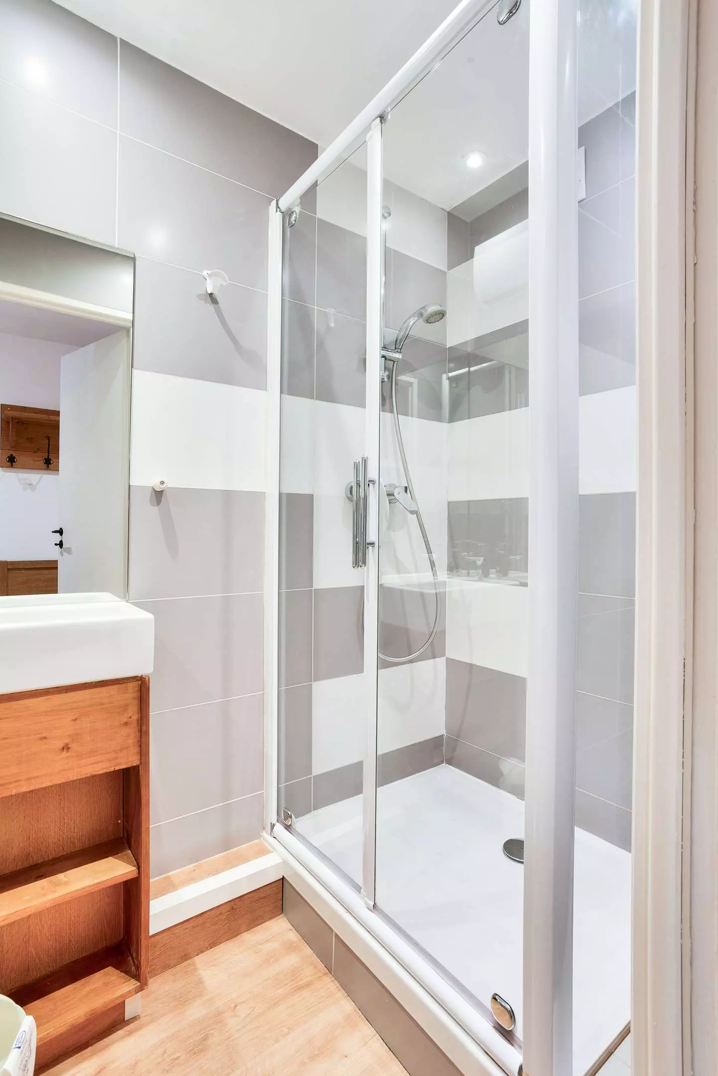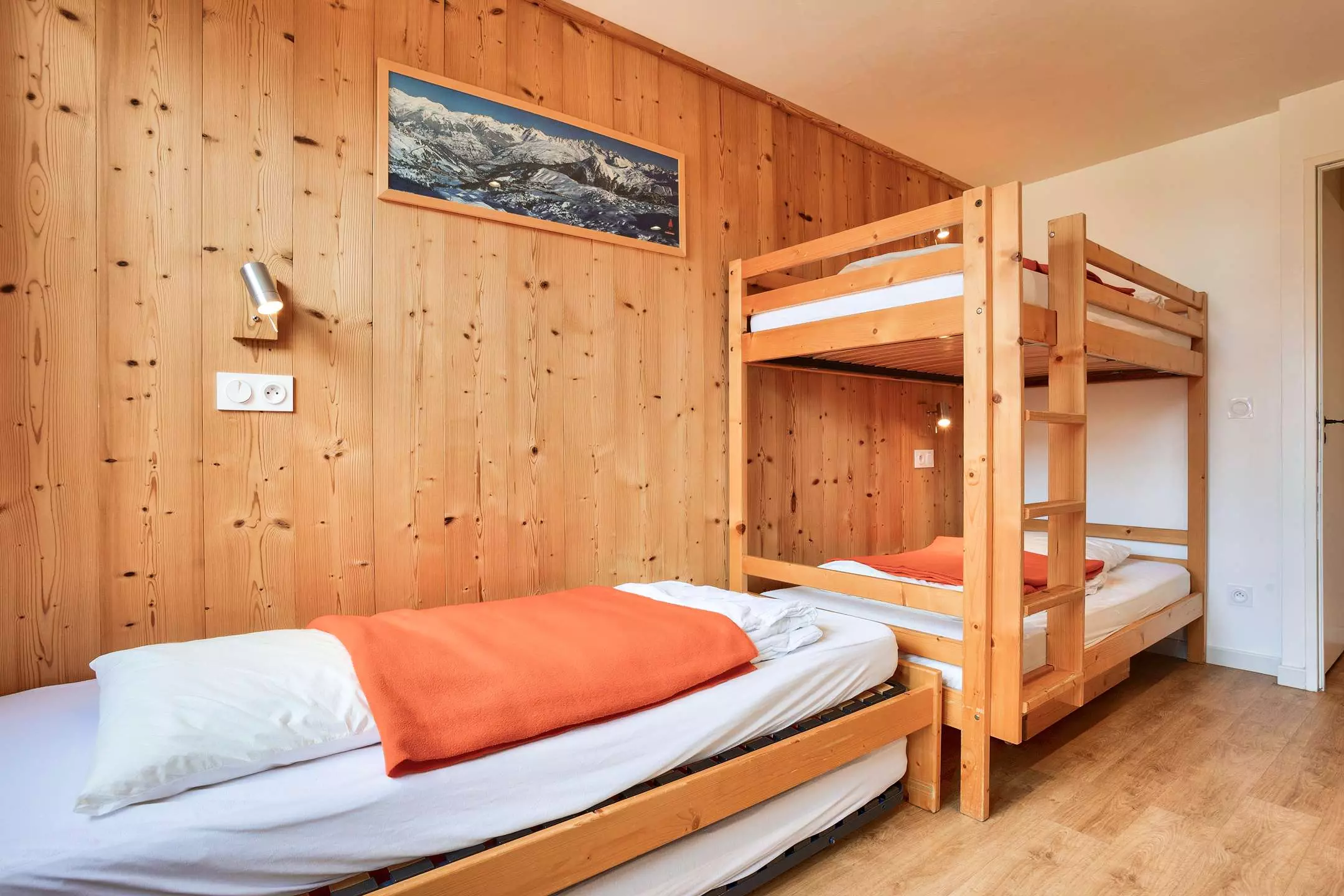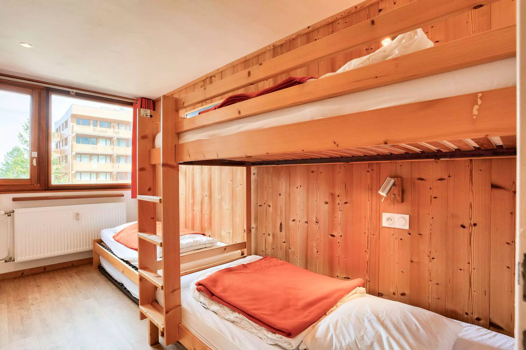 3-room apartment for 6/7 people, 60 m2 facing south, balcony, view of the slopes, located on the snow front, on the 3rd floor without elevator, Kitchen: 4 ceramic hobs, traditional oven, microwave, fridge freezer, dishwasher - Living room: dining area, 2 single sofa beds, TV, DVD player. - Bedroom 1: 2 bunk beds + 1 single bed. - Bedroom 2: 2 single beds next to each other - Bathroom: bathtub, 2 separate toilets - Shower room - Bedding: duvets - Floors: plastic - Bedding: 8 single duvets - Very well located apartment, facing south, with direct access to the slopes at the foot of the residence PETS NOT ALLOWED - NO SMOKING - Ski locker No. 36 at the exit level of the slopes - 3 cupboards on the landing of the apartment to store shoes or other items. LE MAKALU: Residence composed of 3 floors with direct access to the slopes at the foot of the residence. The residence is connected to the shops by the indoor shopping mall, accessed by stairs.