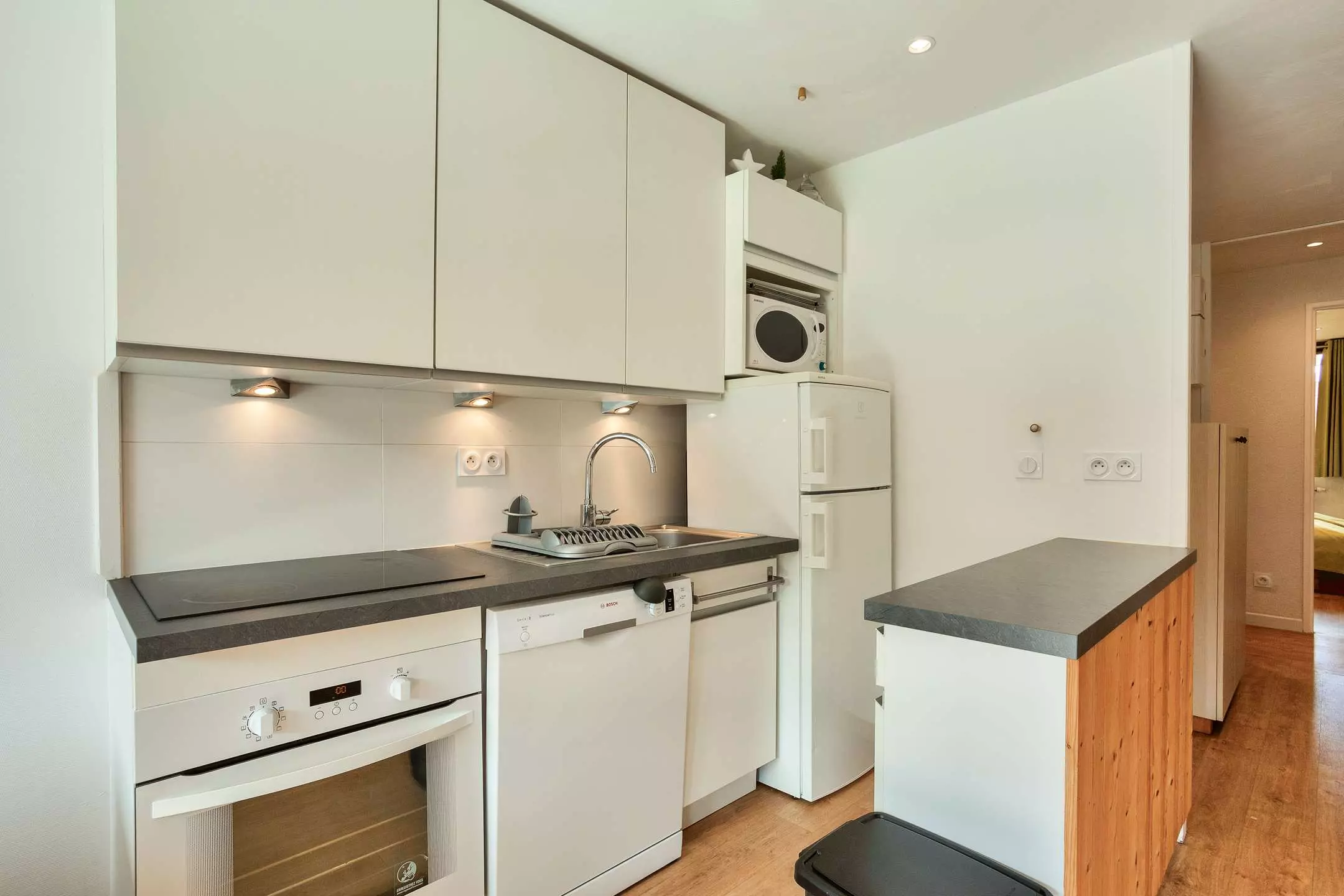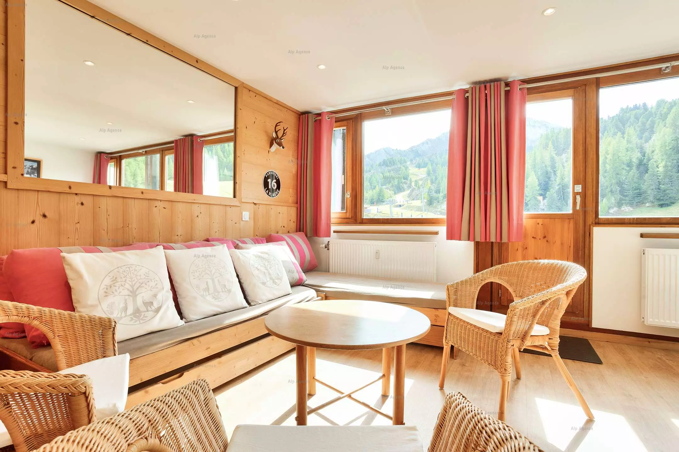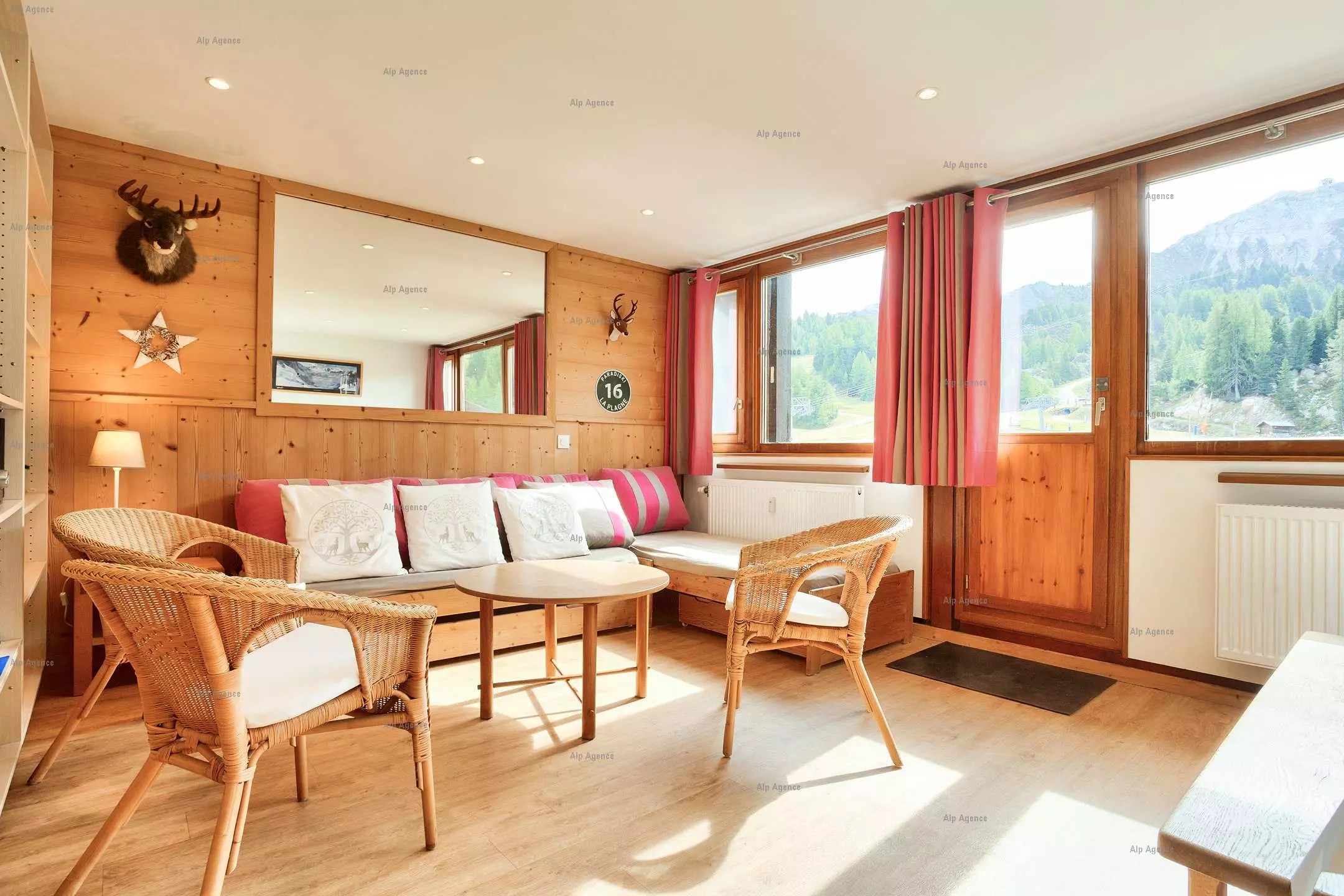 3-room apartment for 6/7 people, 60 m2 facing south, balcony, view of the slopes, located on the snow front, on the 3rd floor without elevator, Kitchen: 4 ceramic hobs, traditional oven, microwave, fridge freezer, dishwasher - Living room: dining area, 2 single sofa beds, TV, DVD player. - Bedroom 1: 2 bunk beds + 1 single bed. - Bedroom 2: 2 single beds next to each other - Bathroom: bathtub, 2 separate toilets - Shower room - Bedding: duvets - Floors: plastic - Bedding: 8 single duvets - Very well located apartment, facing south, with direct access to the slopes at the foot of the residence PETS NOT ALLOWED - NO SMOKING - Ski locker No. 36 at the exit level of the slopes - 3 cupboards on the landing of the apartment to store shoes or other items. LE MAKALU: Residence composed of 3 floors with direct access to the slopes at the foot of the residence. The residence is connected to the shops by the indoor shopping mall, accessed by stairs.