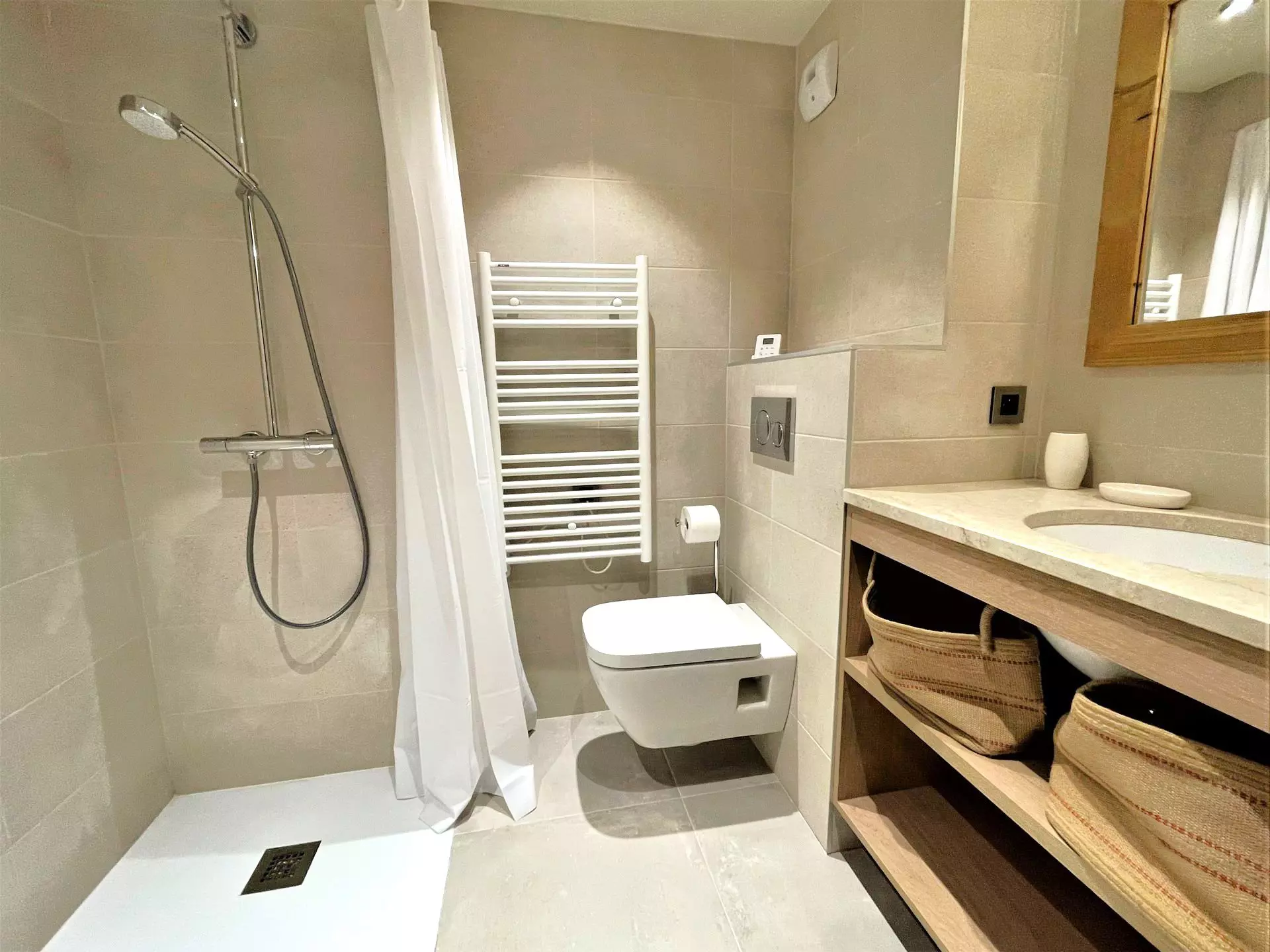 Bedroom 1: 1 double bed (140x200cm), dressing room, adjoining bathroom (sink, shower, towel dryer, hair dryer, toilet),