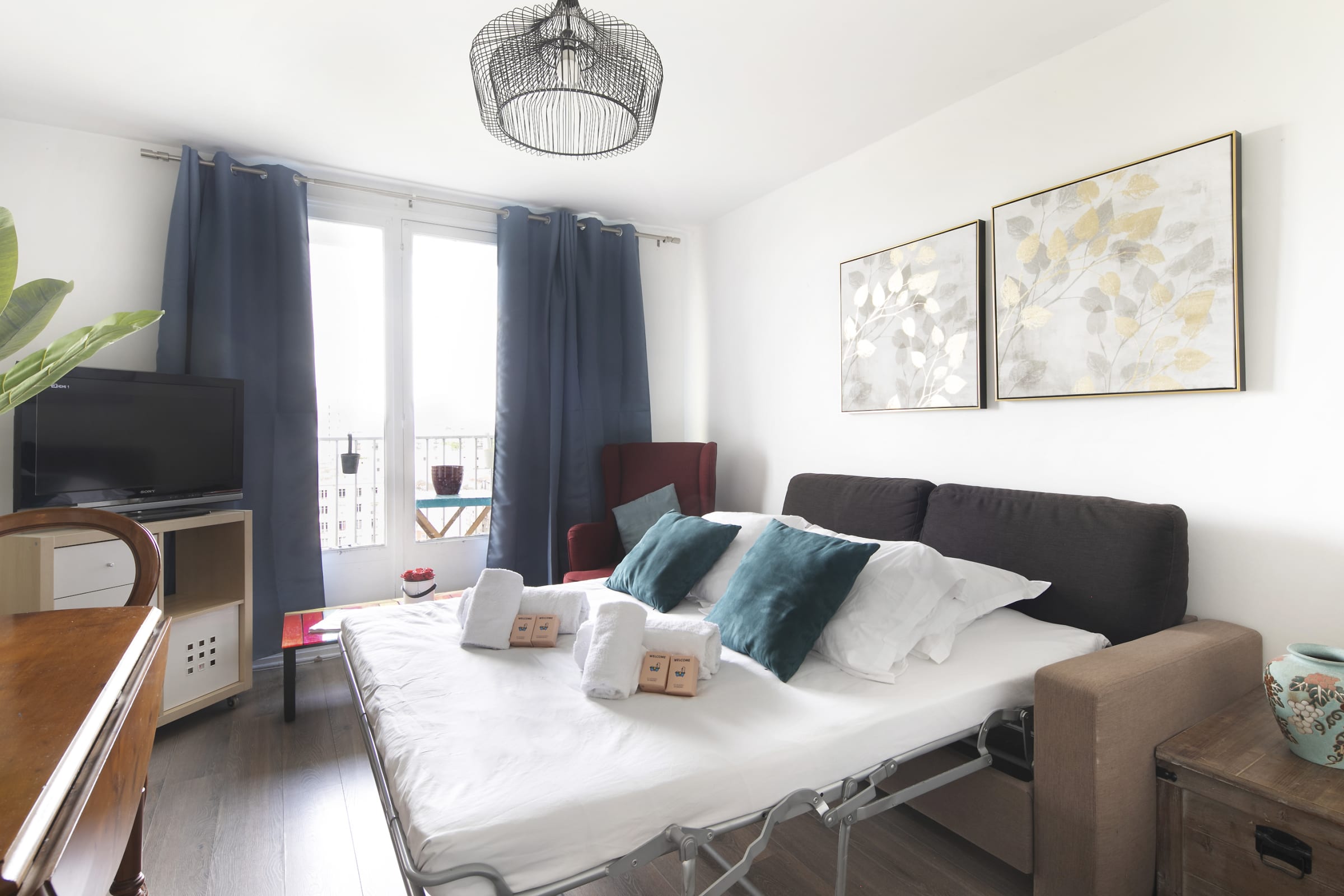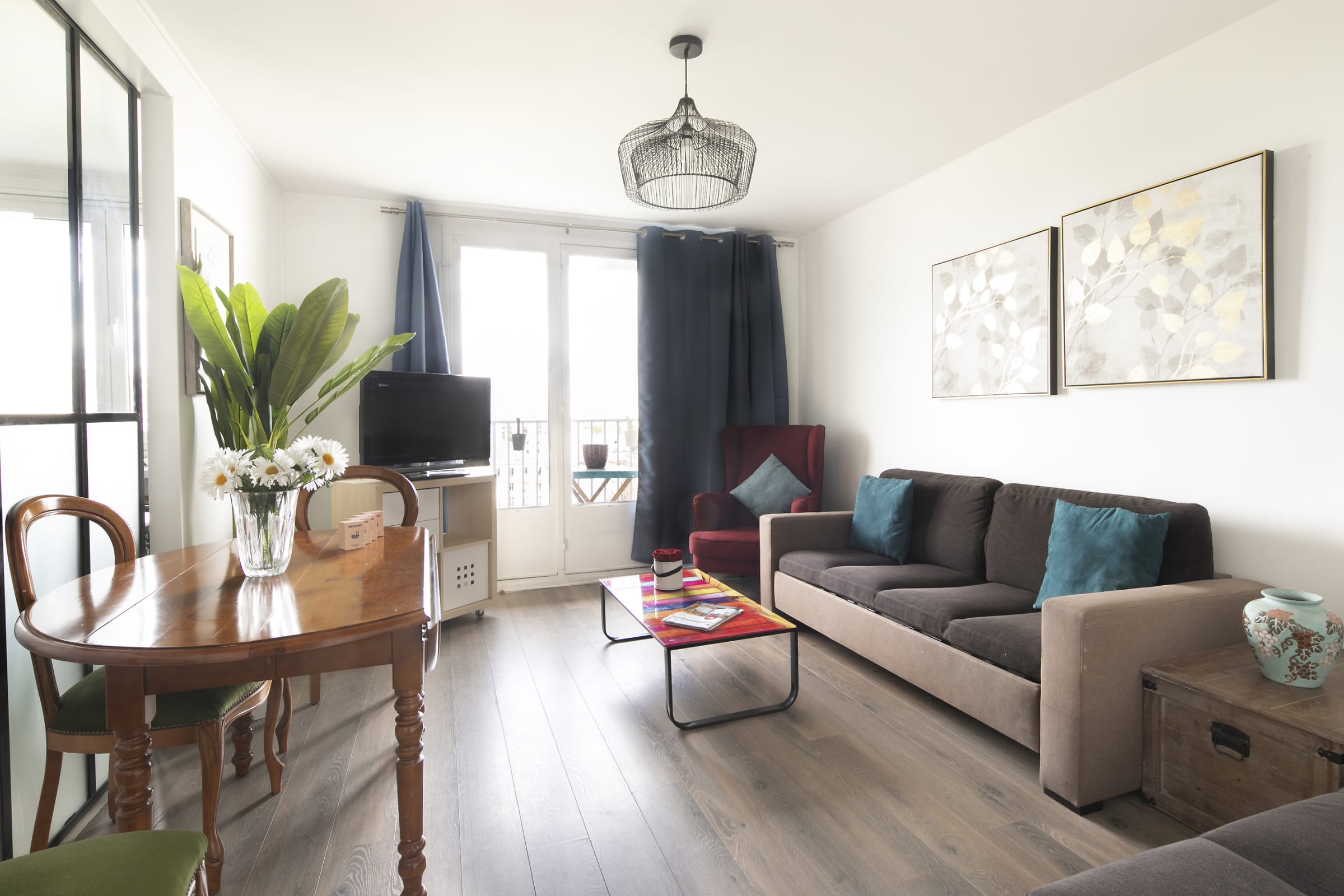 Welcome to our elegant 65 m² apartment, located in a chic residential neighborhood just a few minutes’ walk from the metro, and close to a variety of restaurants, supermarkets, and charming local shops. Situated on the 9th floor of a modern, secure building with an elevator, this bright and well-insulated apartment offers everything you need for a peaceful and comfortable stay near Paris.