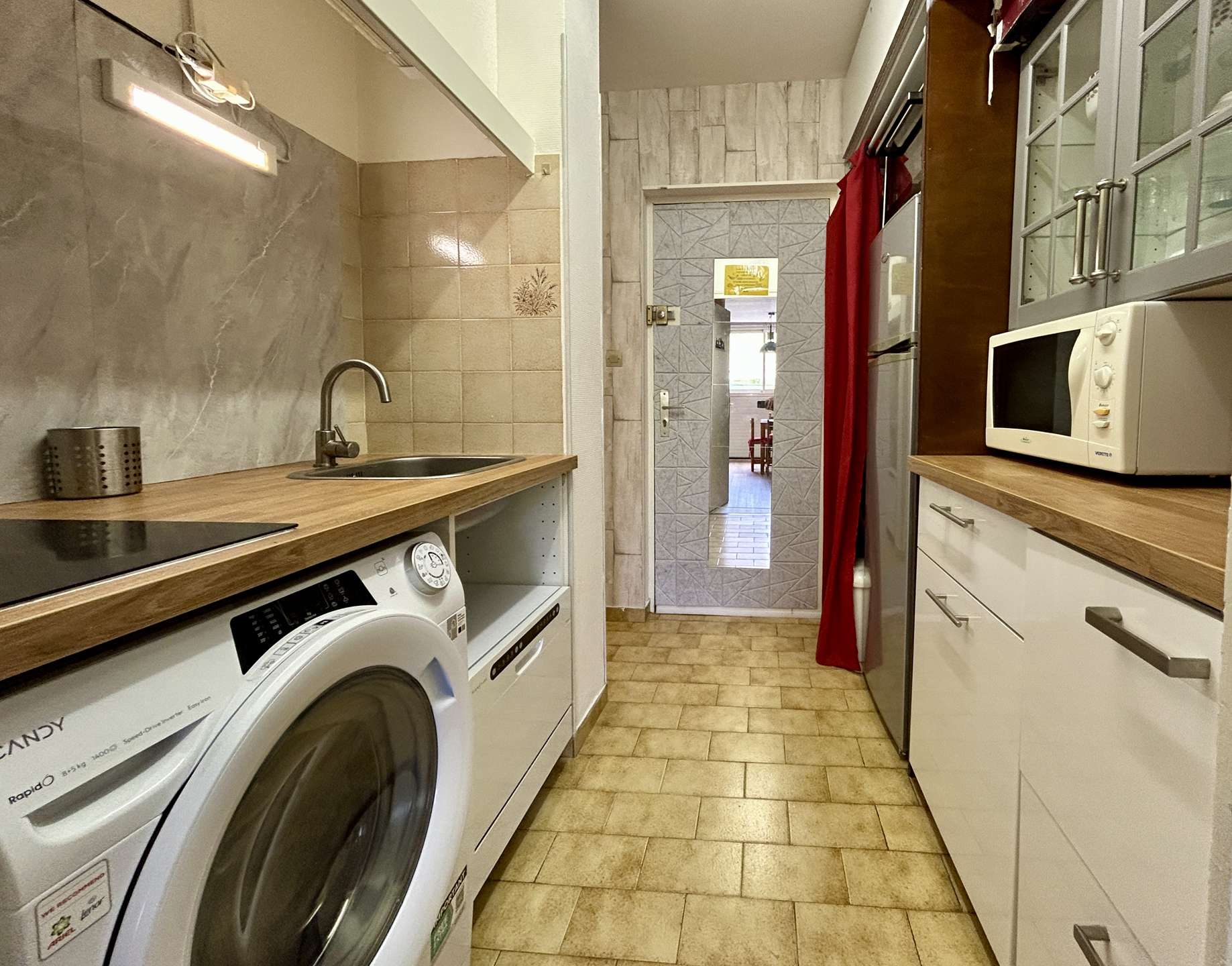 It includes an entrance leading to the shower room with WC, a separate kitchen equipped with a microwave, 2 electric hotplates, an electric coffee maker and a pod coffee maker, a crepe maker... The living room includes the sleeping area with bunk beds 80x190 and a BZ sofa bed 140x190 with TV.