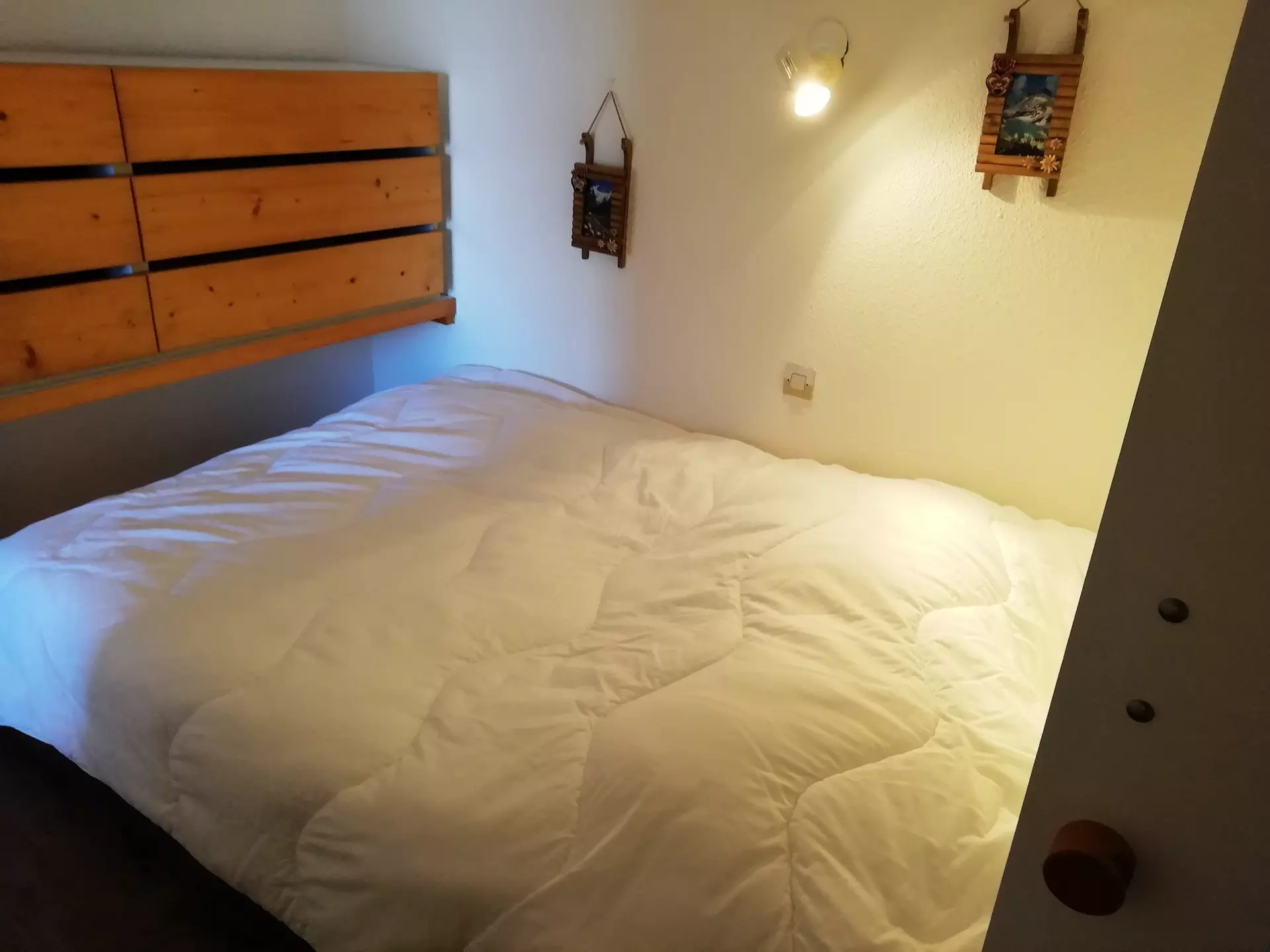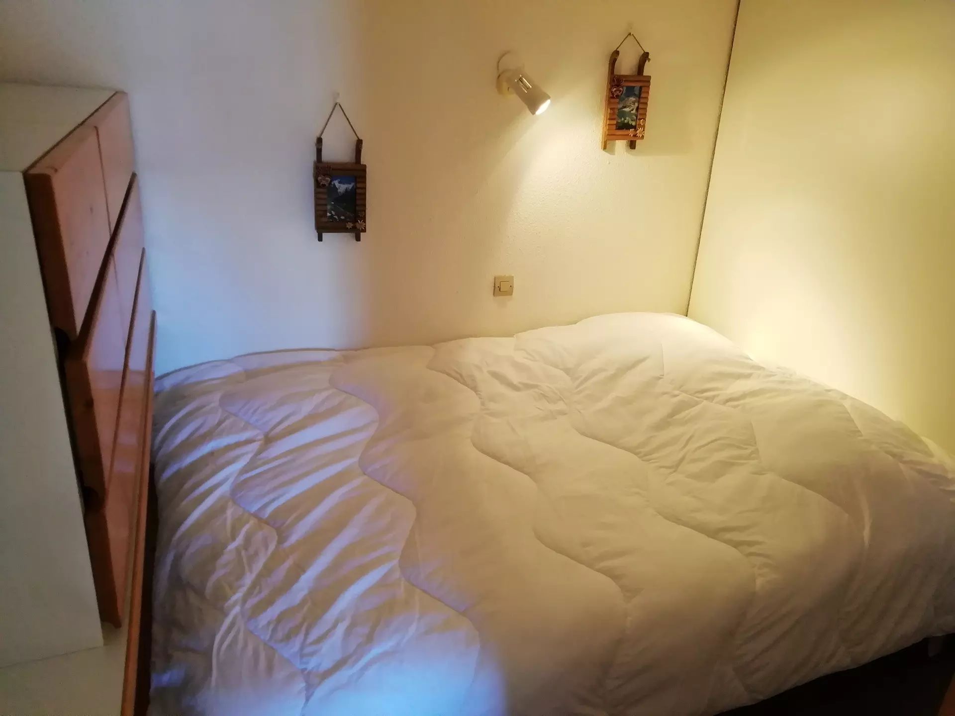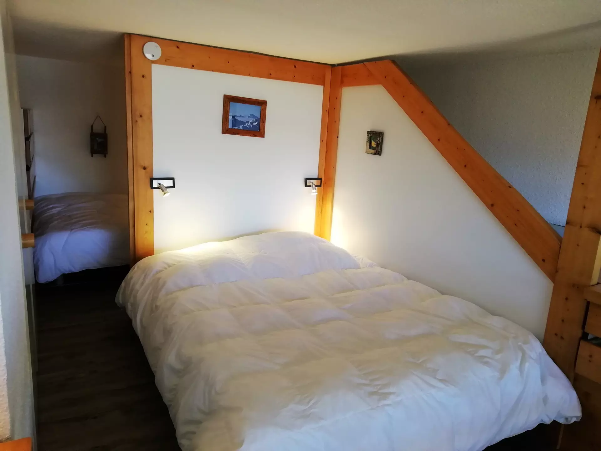 On the mezzanine open to the living room, you will find a 140cm double bed and a mountain corner with a second 140cm double bed.