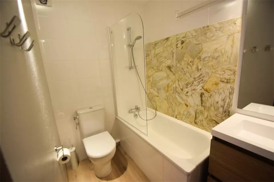 Kitchenette: in entrance/corridor: 2 ceramic hobs, combination oven, refrigerator, dishwasher - Living room: dining area, 2 single sofa beds 80 cm, TV. Bathroom: bathtub, WC included. Floors: carpet - Bedding: duvets