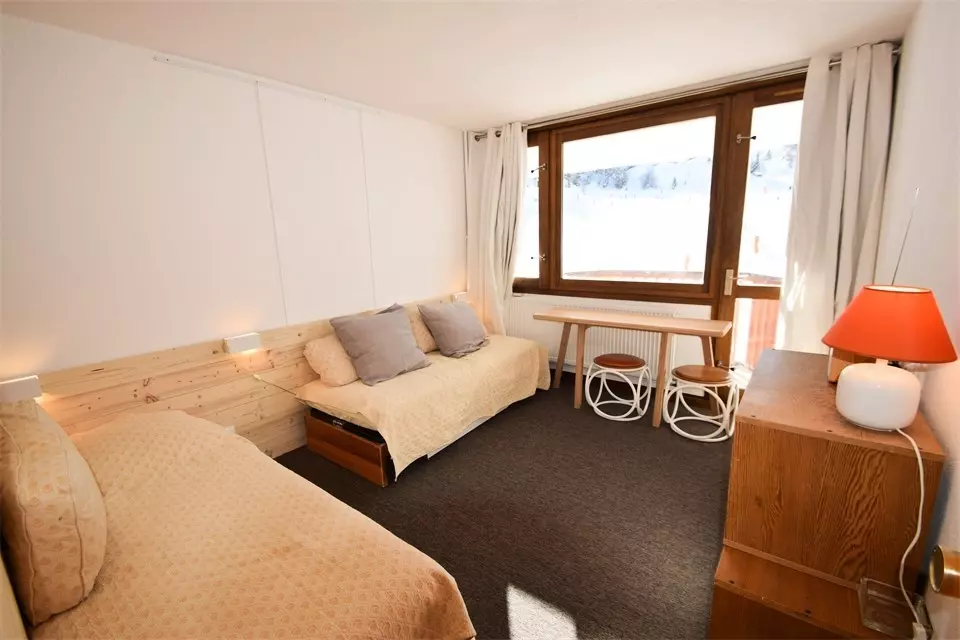 Studio for 2 people, approx. 18m2, south-facing with balcony, beautiful unobstructed view of the slopes, on the 2nd floor with elevator (entrance on the right side (UCPA) of the building)