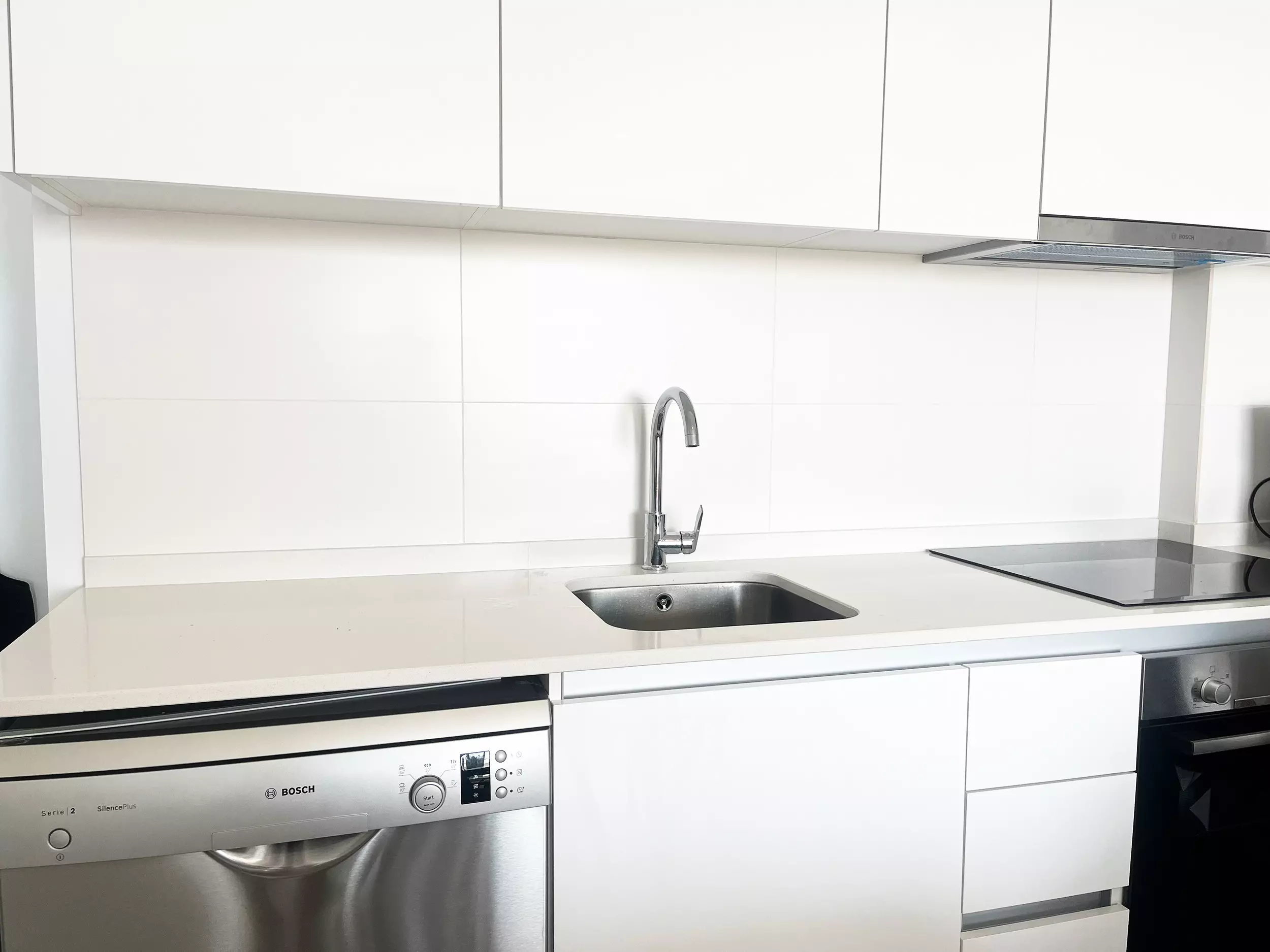 The American kitchen, with induction hob, is equipped with a refrigerator, microwave, oven, freezer, dishwasher, dishes/cutlery, kitchen utensils, coffee maker, toaster and juicer.