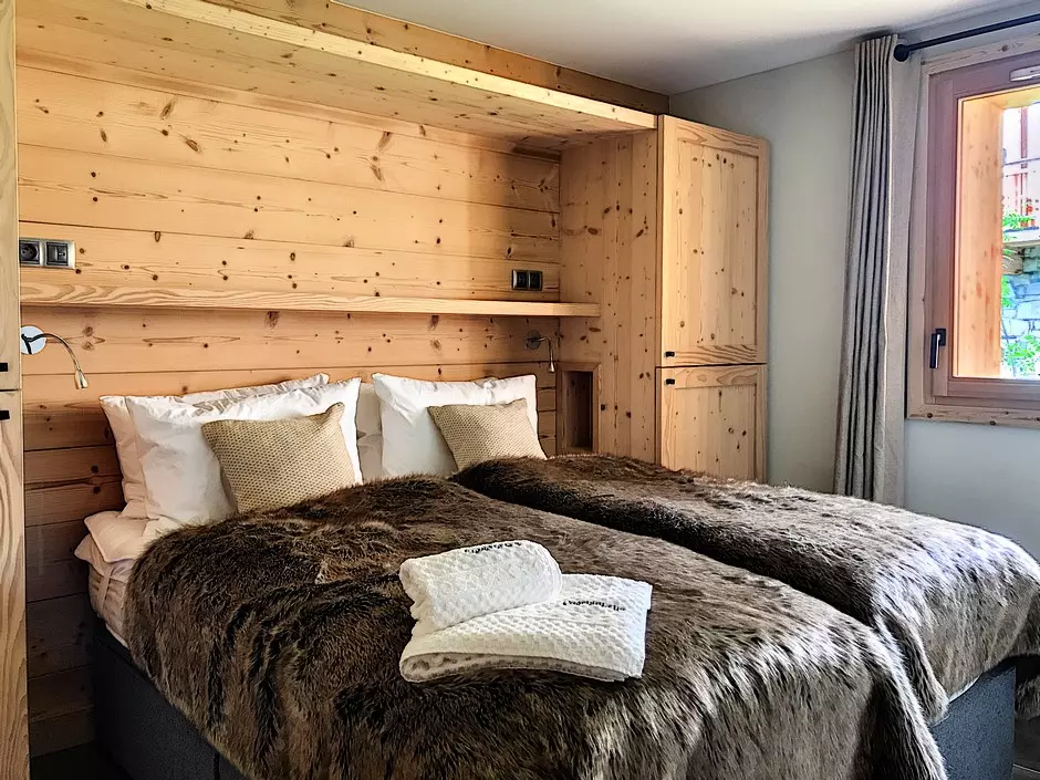 Chalet CARCOSA transports you to a world of comfort. Spread over three levels, this 80m² chalet, with its large terrace and connecting en-suite bedrooms, accommodates six people. Direct access to the slopes from the ski room, a private sauna, and a cozy lounge around the wood-burning stove—what will be your reason to return?