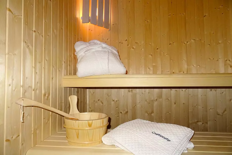 Sauna. Separate toilet and washbasin.