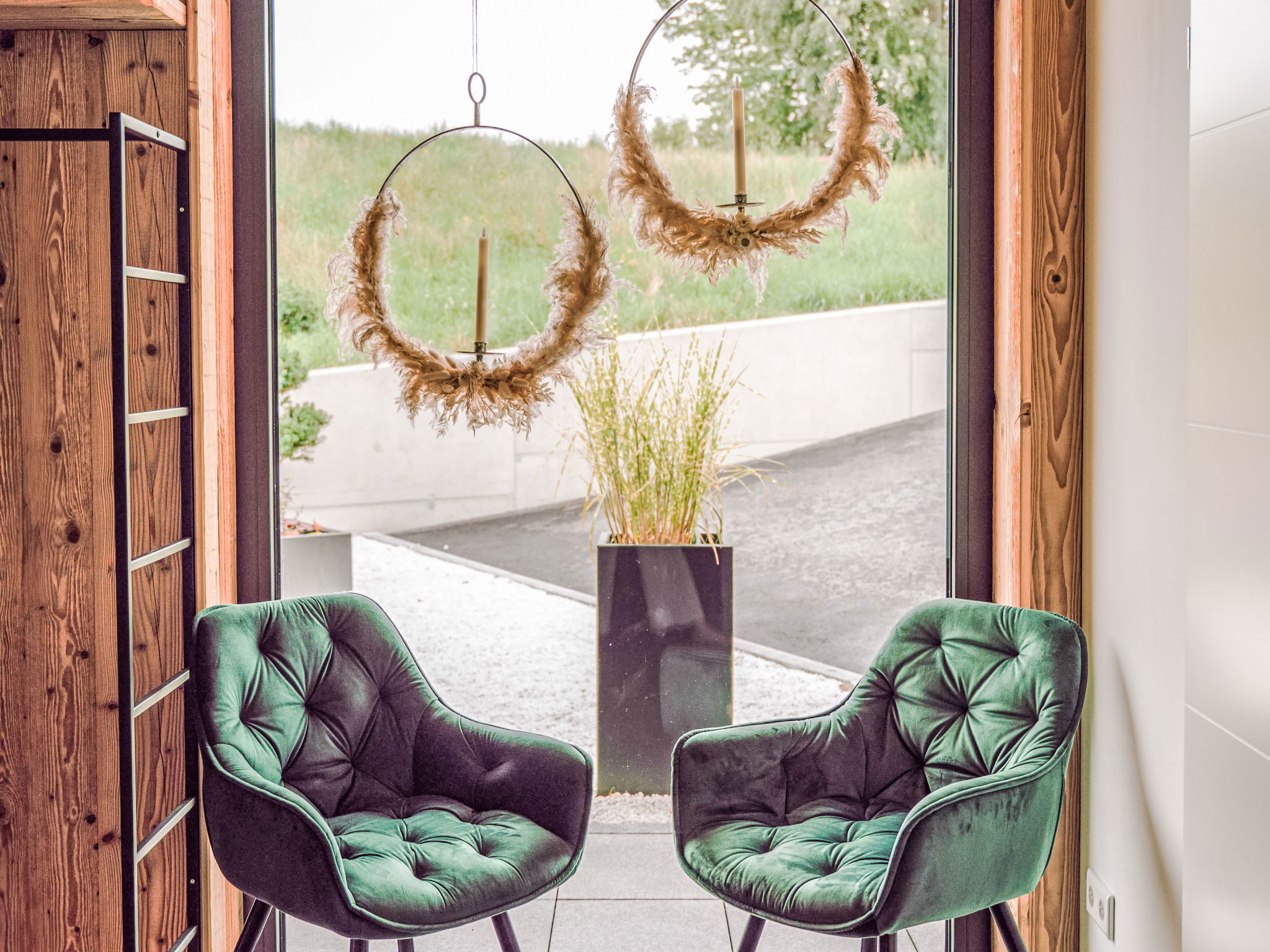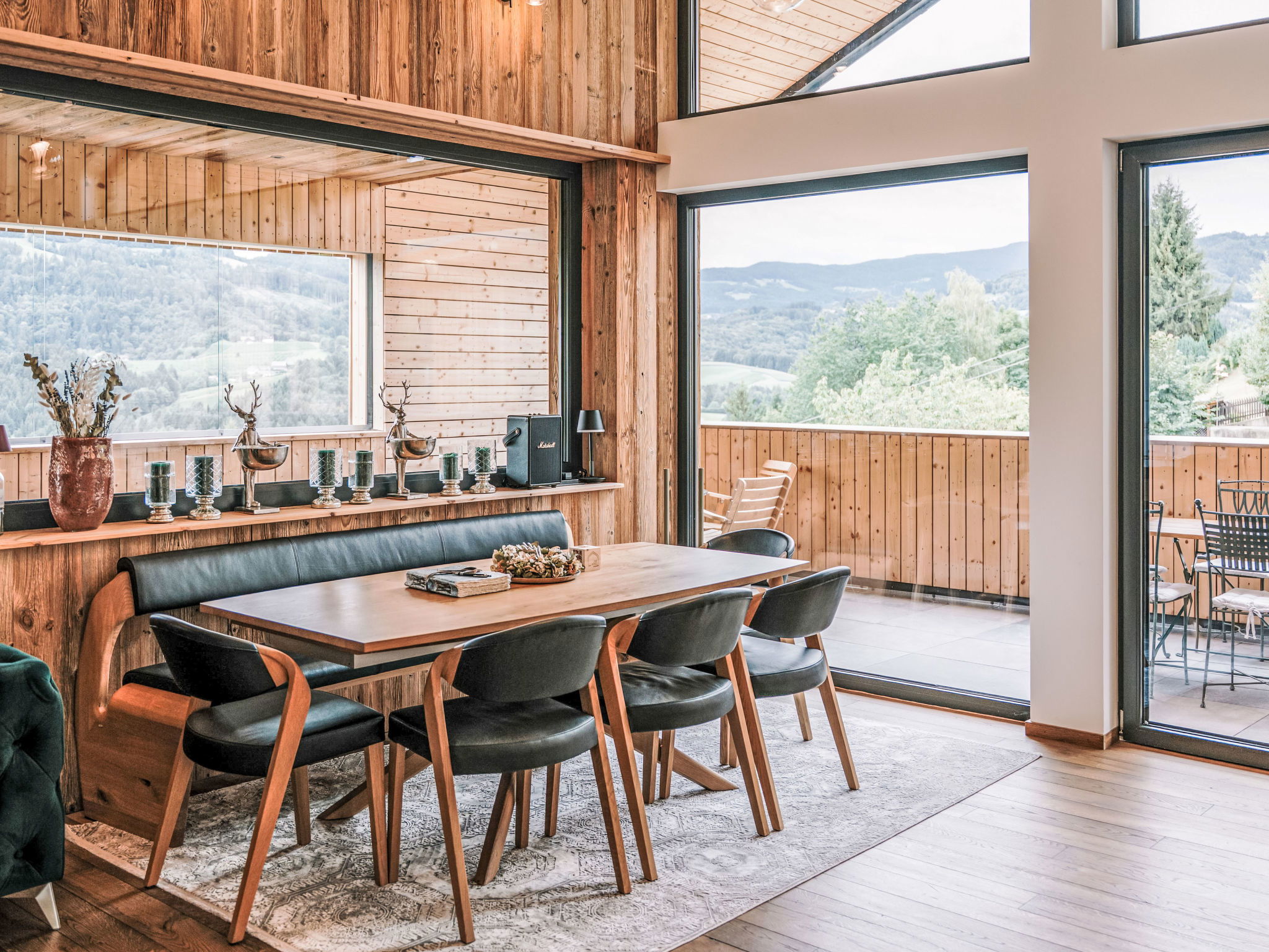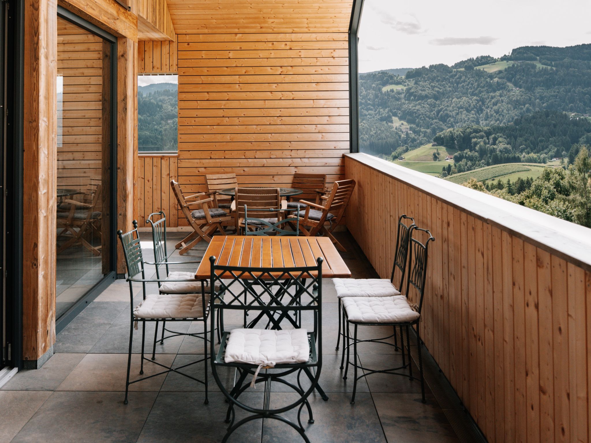 "Haus am Kogl", 6-room cottage 300 m2 on 2 levels. Object suitable for 10 adults + 3 children. Bright, partly with sloping ceilings, comfortable and wooden furniture furnishings: large living/dining room with dining table, satellite TV and international TV channels (flat screen), tiled stove. Exit to the balcony. 1 room with panoramic window with 1 double sofabed (1 x 140 cm, length 200 cm), 1 double bed, shower/WC, satellite TV and international TV channels (flat screen). Gallery with 1 sofabed (90 cm, length 200 cm), 1 double bed, satellite TV and international TV channels (flat screen). Open kitchen (oven, dishwasher, 4 induction hot plates, toaster, kettle, grill, electric coffee machine, raclette grill) with bar. Sep. WC. Underfloor heating. On the lower ground floor: 3 double bedrooms, each room with shower/WC, satellite TV and international TV channels (flat screen). Exit to the terrace. Parquet floors. Terrace. Terrace furniture, barbecue, deck chairs. Very beautiful panoramic view of the countryside. Facilities: washing machine, dryer, iron, children's high chair, baby cot for up to 2 year olds, hair dryer, logs (free). Internet (WiFi, free). E-charging station. Please note: non-smoking house. Smoke alarm, fire extinguisher. The pool mentioned in the description is for private use.