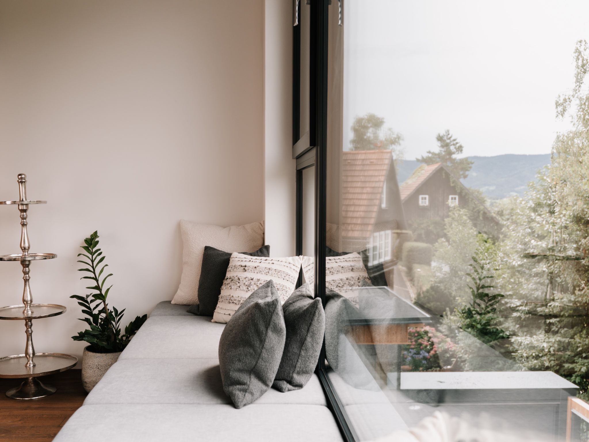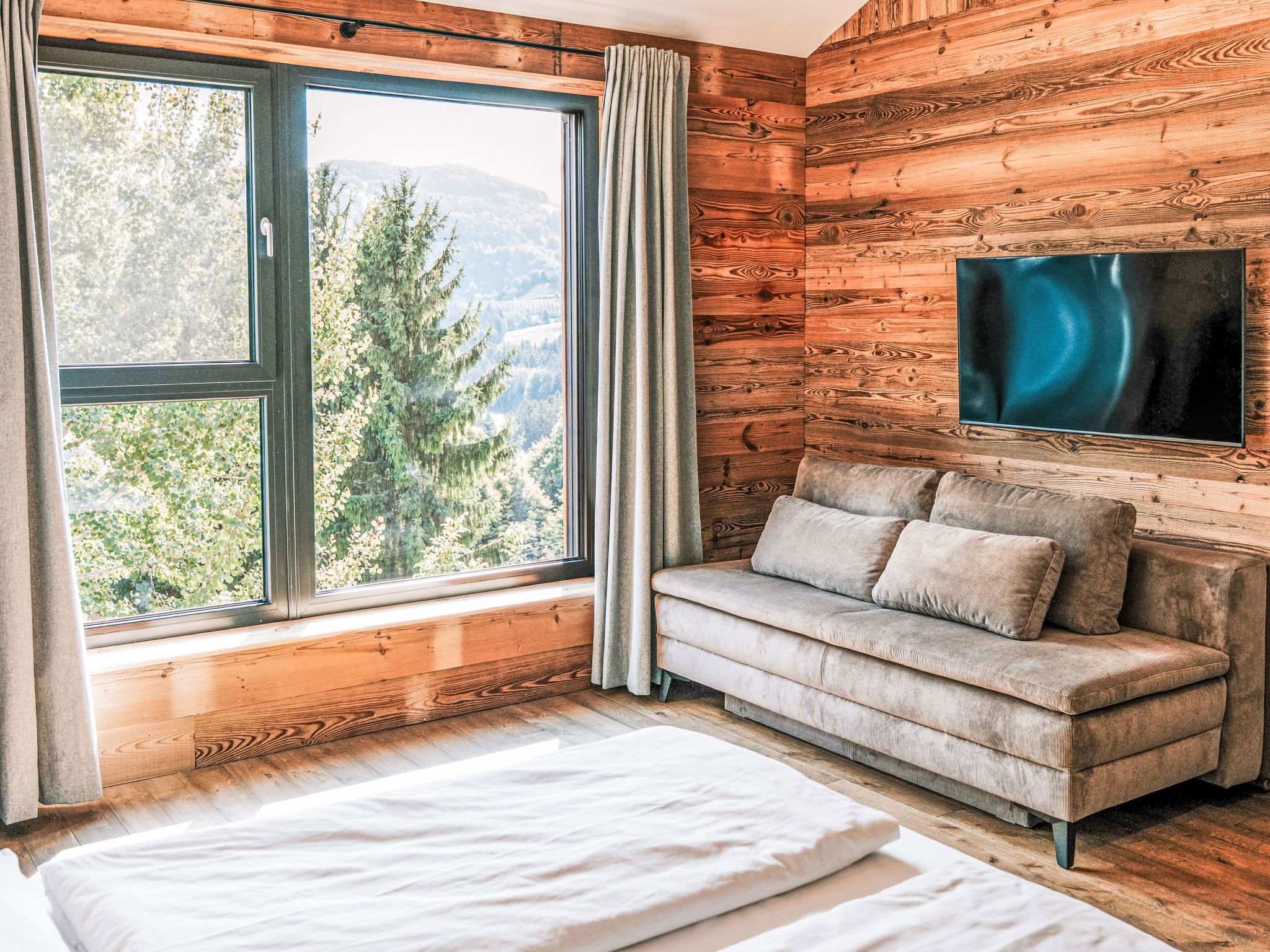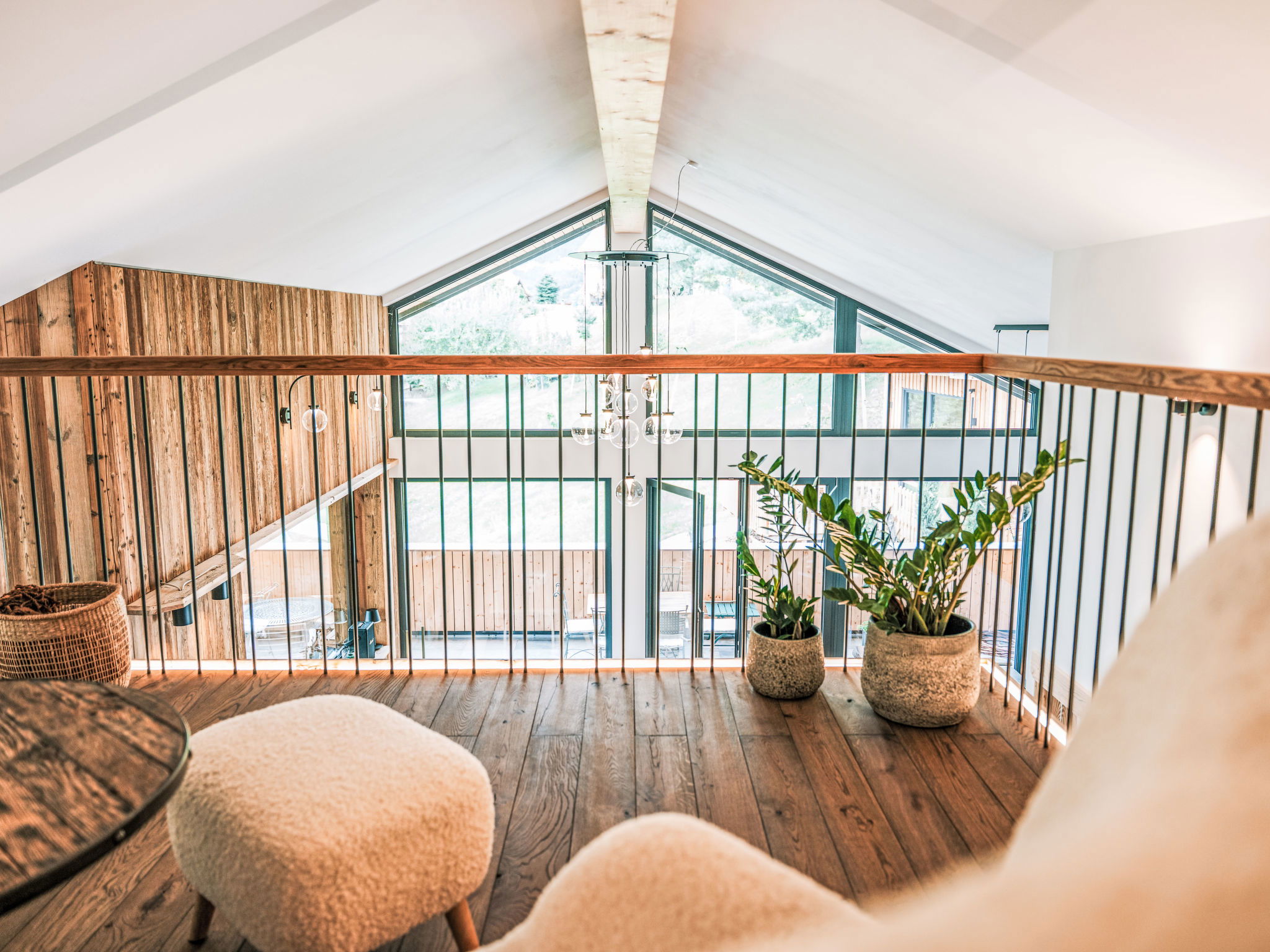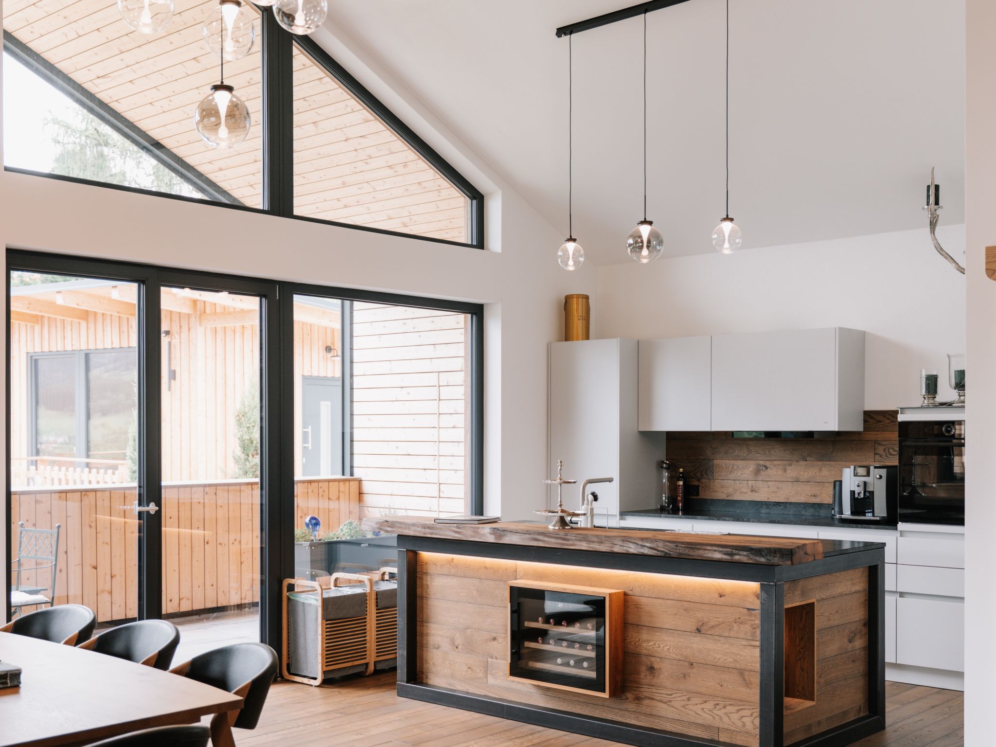 "Haus am Kogl", 6-room cottage 300 m2 on 2 levels. Object suitable for 10 adults + 3 children. Bright, partly with sloping ceilings, comfortable and wooden furniture furnishings: large living/dining room with dining table, satellite TV and international TV channels (flat screen), tiled stove. Exit to the balcony. 1 room with panoramic window with 1 double sofabed (1 x 140 cm, length 200 cm), 1 double bed, shower/WC, satellite TV and international TV channels (flat screen). Gallery with 1 sofabed (90 cm, length 200 cm), 1 double bed, satellite TV and international TV channels (flat screen). Open kitchen (oven, dishwasher, 4 induction hot plates, toaster, kettle, grill, electric coffee machine, raclette grill) with bar. Sep. WC. Underfloor heating. On the lower ground floor: 3 double bedrooms, each room with shower/WC, satellite TV and international TV channels (flat screen). Exit to the terrace. Parquet floors. Terrace. Terrace furniture, barbecue, deck chairs. Very beautiful panoramic view of the countryside. Facilities: washing machine, dryer, iron, children's high chair, baby cot for up to 2 year olds, hair dryer, logs (free). Internet (WiFi, free). E-charging station. Please note: non-smoking house. Smoke alarm, fire extinguisher. The pool mentioned in the description is for private use.