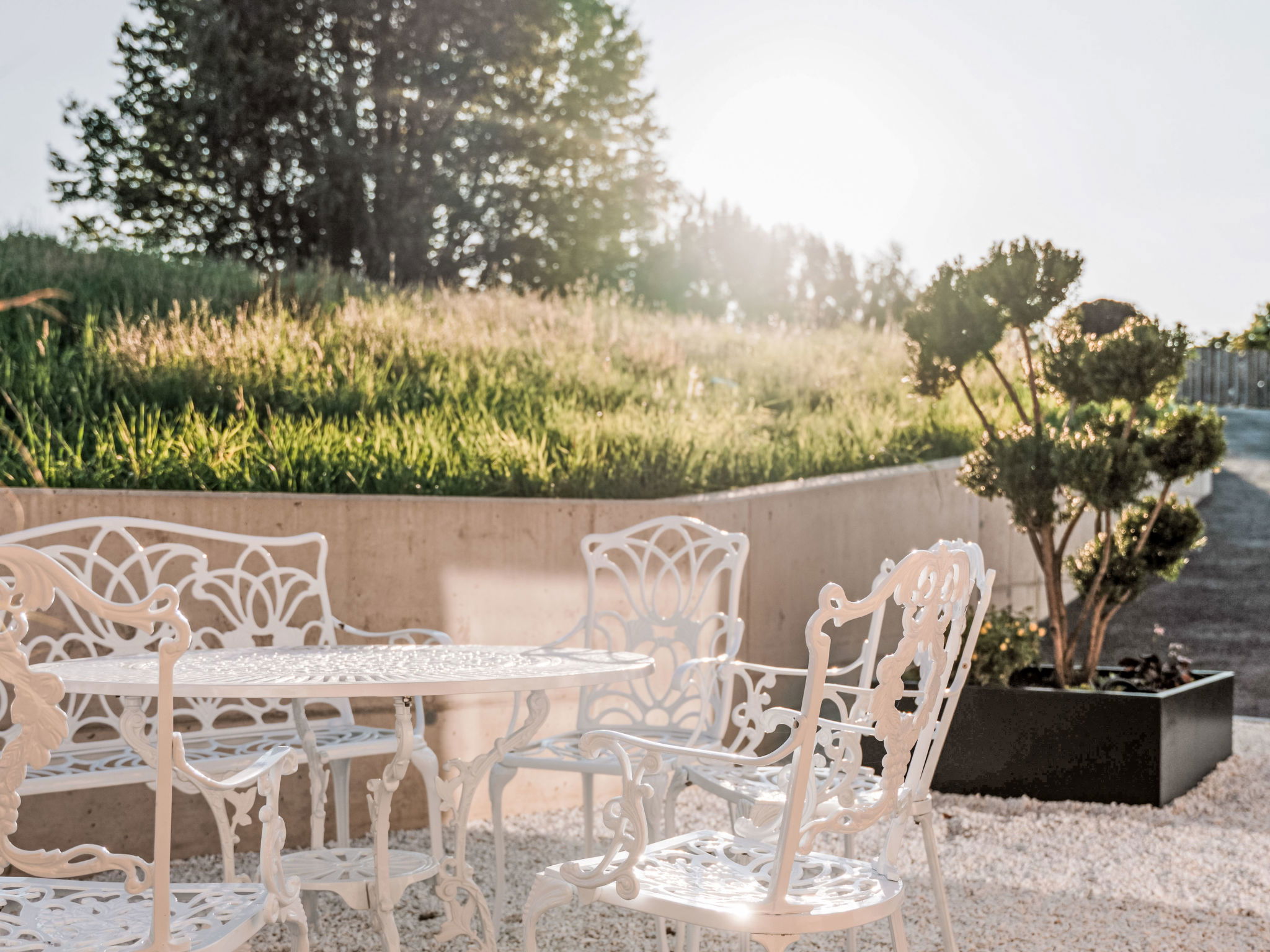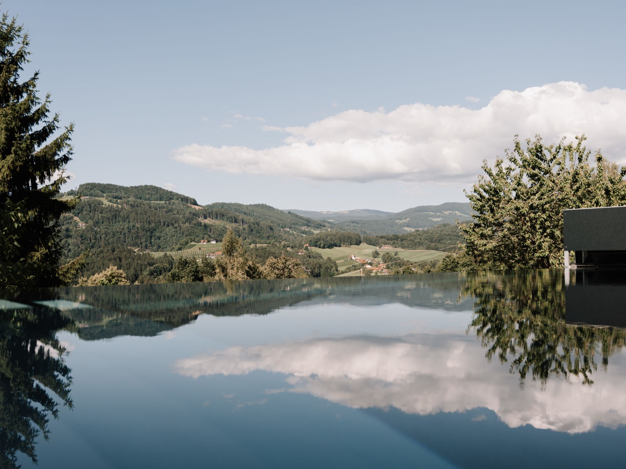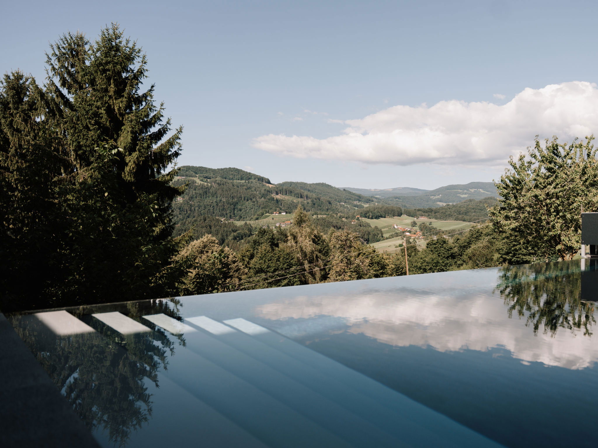 Süd-Weststeiermark 20 km from Deutschlandsberg: Modern cottage "Haus am Kogl", 2 storeys, surrounded by fields and vineyards. In the district of Oberer Kogl 5 km from the centre of Wies, in a quiet, sunny position. Private: property 1'000 m2, beautiful garden to relax, swimming pool (8 x 4 m, 32 m2, seasonal availability: 01.May. - 31.Oct.) with shutter cover. WC in the pool area, outdoor shower, pool house with fridge and cooking stove, patio, garden furniture, barbecue. In the house: WiFi, sauna, storage room for bicycles, central heating system, washing machine, tumble dryer. Cook (extra). Bread roll service and beverage service possible (extra). Storeroom available. Parking (for 5 cars). Carport. E-charging station. Grocery 1.6 km, supermarket 5 km, restaurant 300 m, bus stop "Wernersdorf Ort" 1.5 km, railway station "Wies-Eibiswald" 5 km. Nearby attractions: Wasserfall der weißen Sulm 12 km. Hiking paths: Wasserfall Hadernigg 11 km. Object suitable for 10 adults + 3 children. The owner does not accept any youth groups. 24hr guard. Wellness: Panorama sauna: 15 m² (in the garden, including shower and toilet in the sauna house) and infinity pool (8 x 4 m) with breathtaking views of the vineyards and massage function.