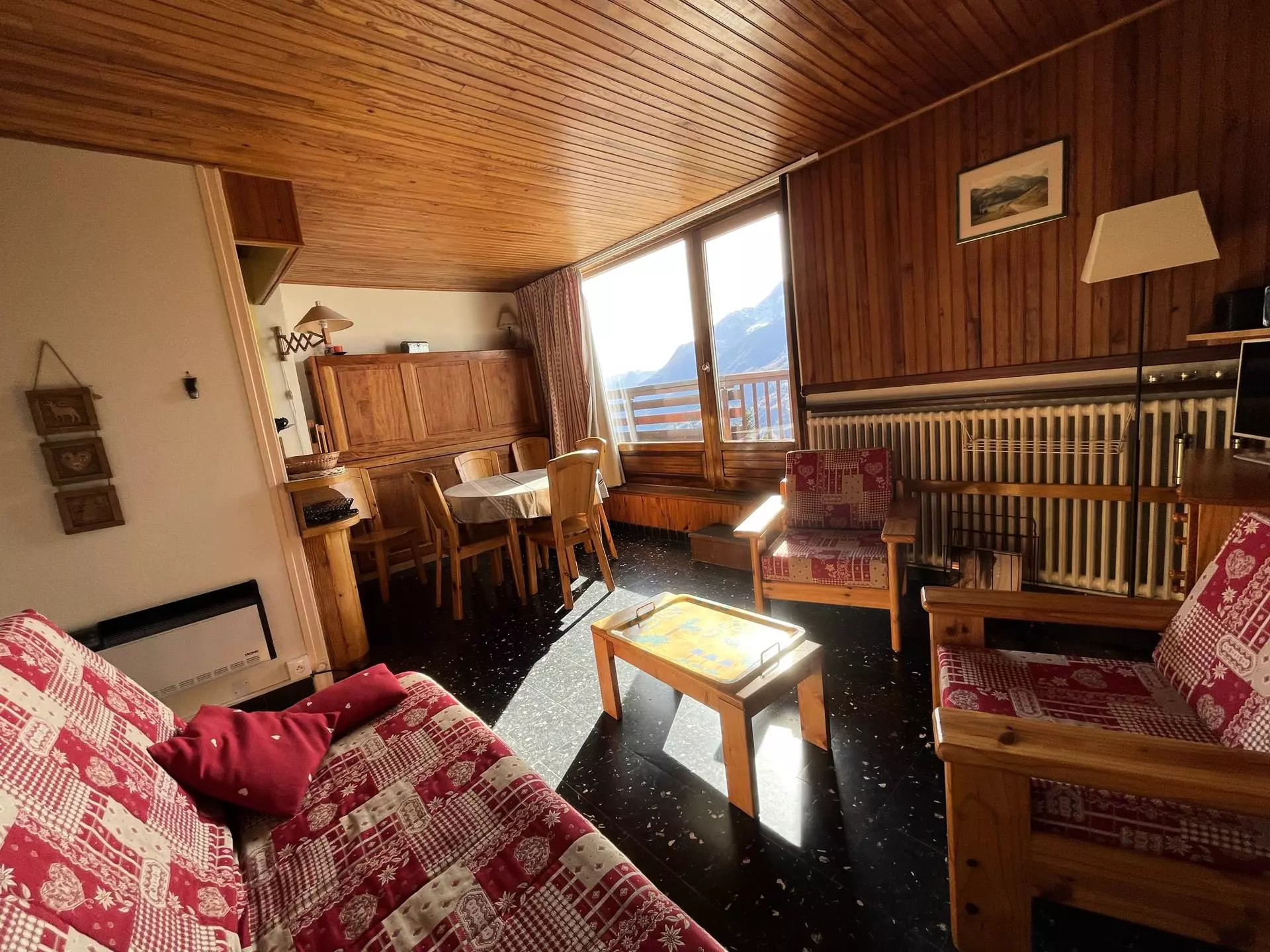 2-room apartment of 43m² for 5/6 people. It is located on the ground floor of the Les Chavonnes residence with a south-facing balcony, overlooking the Tarentaise Valley.
