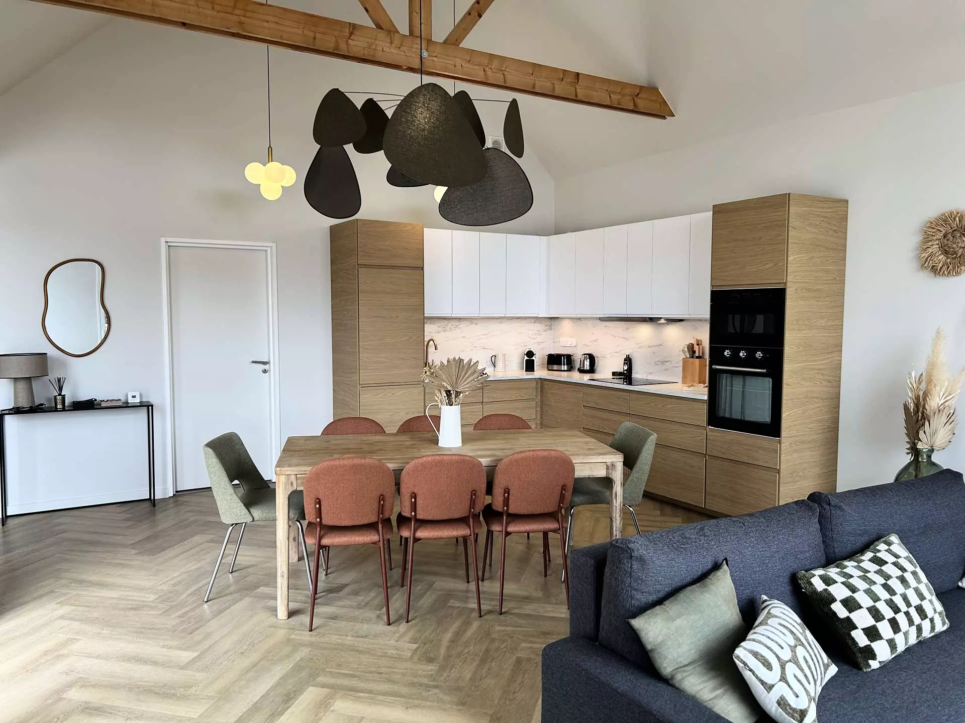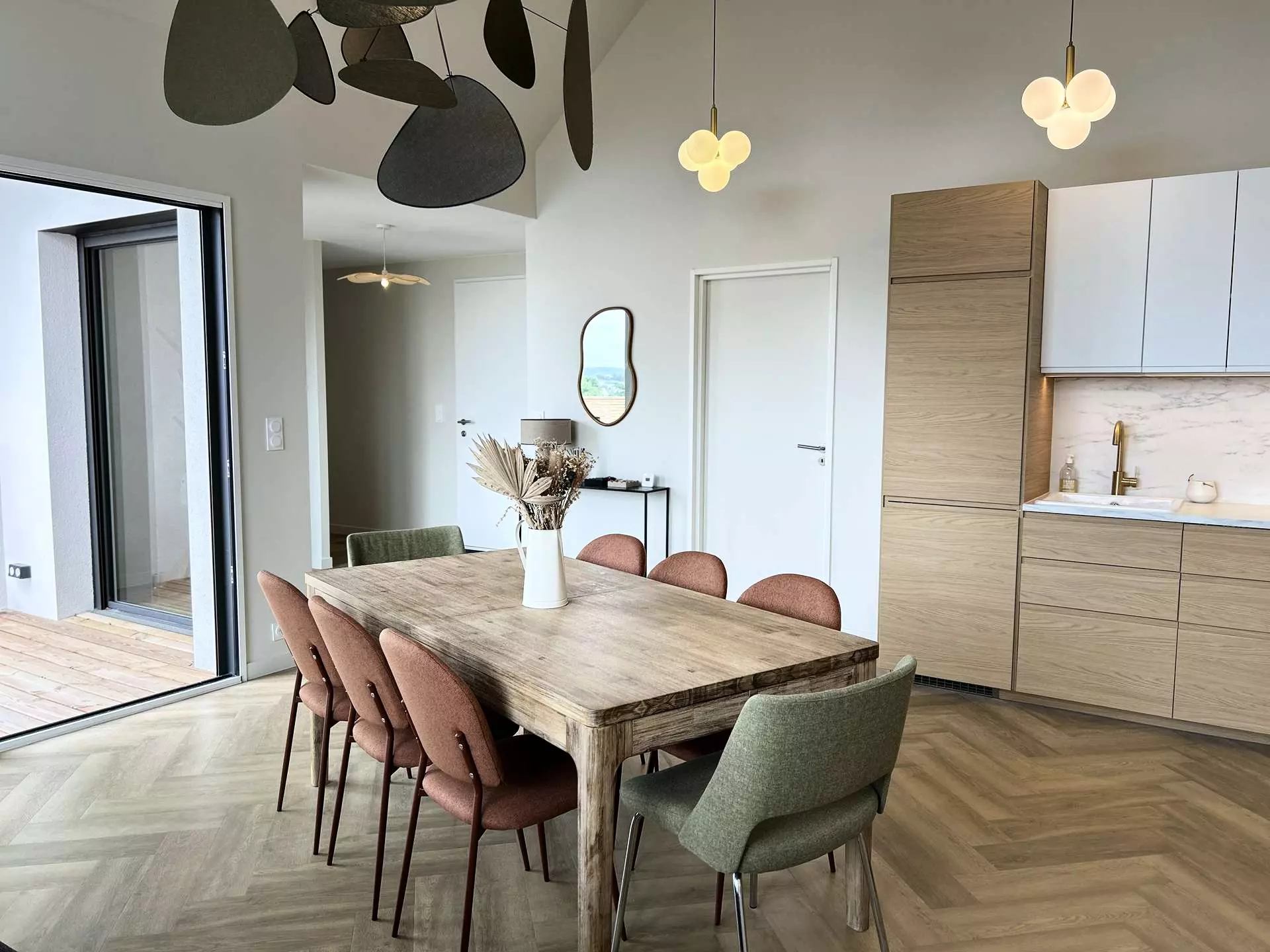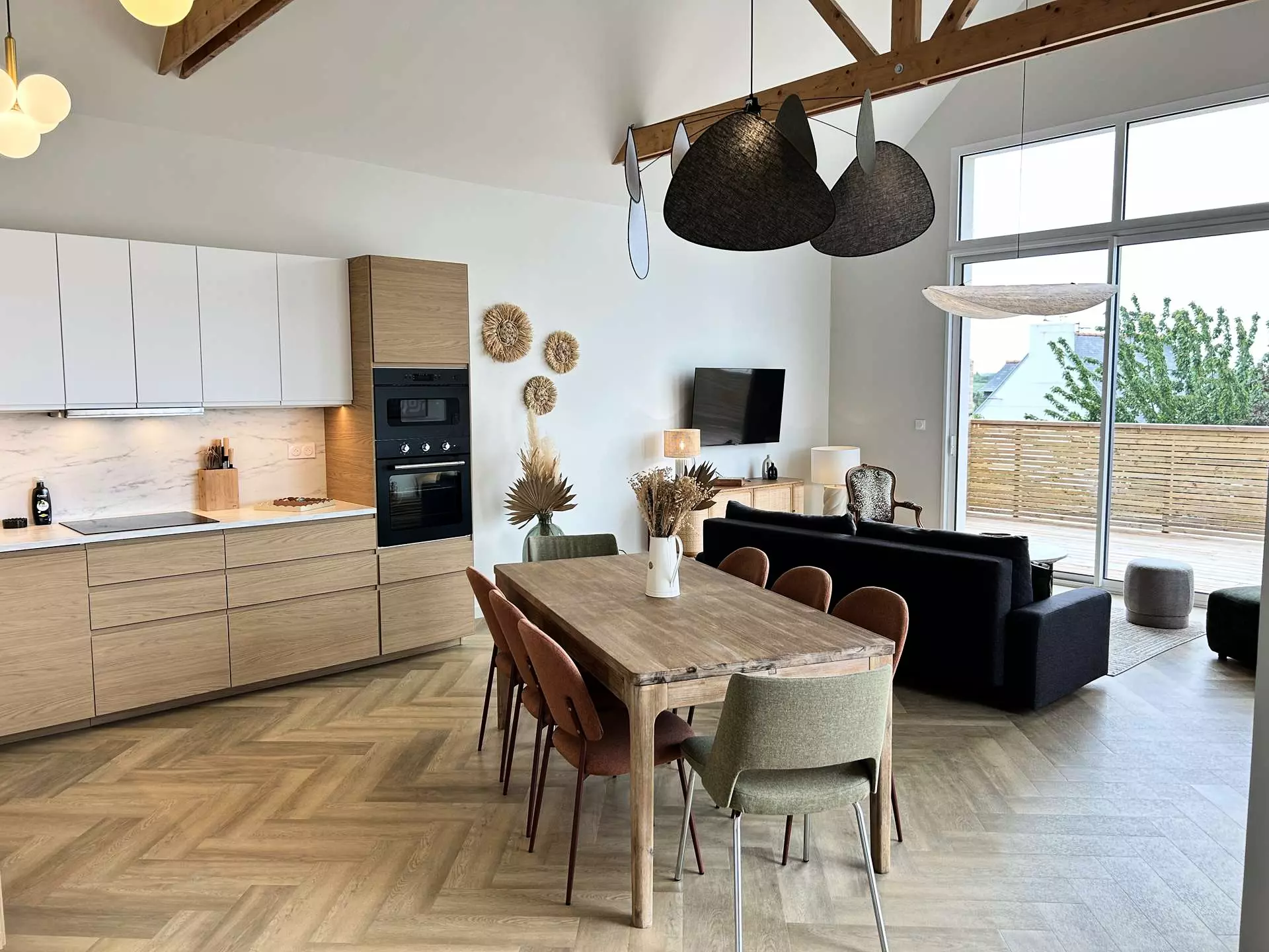 - An open kitchen, fully equipped: sink, induction hob (4 burners), extractor fan, dishwasher, oven, fridge-freezer, microwave, Nespresso Krups coffee machine, citrus press, toaster, kettle, as well as numerous accessories (cutting board, utensils, pans, saucepans, etc.);