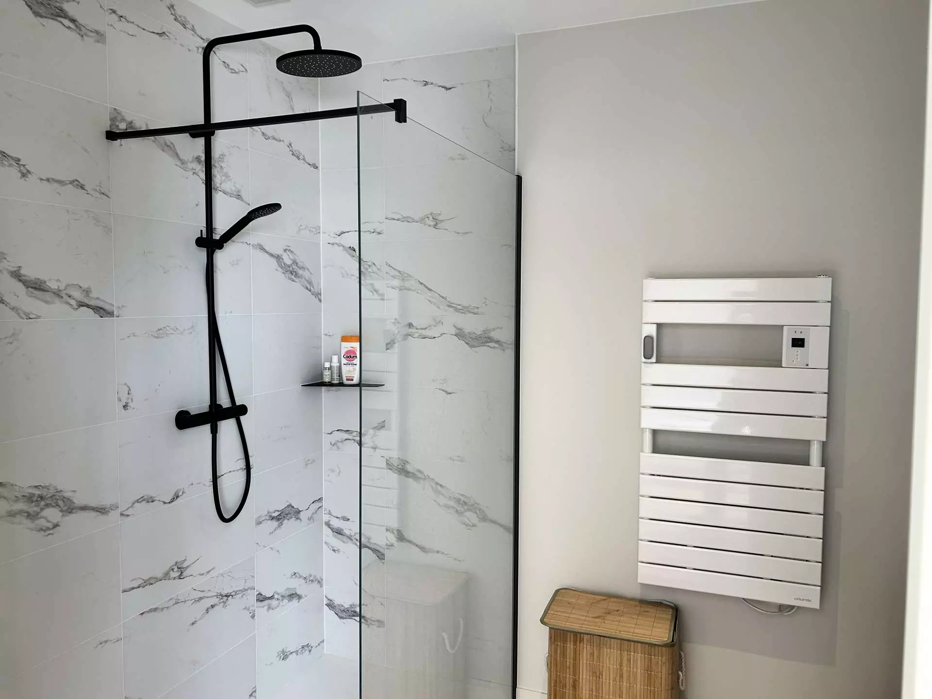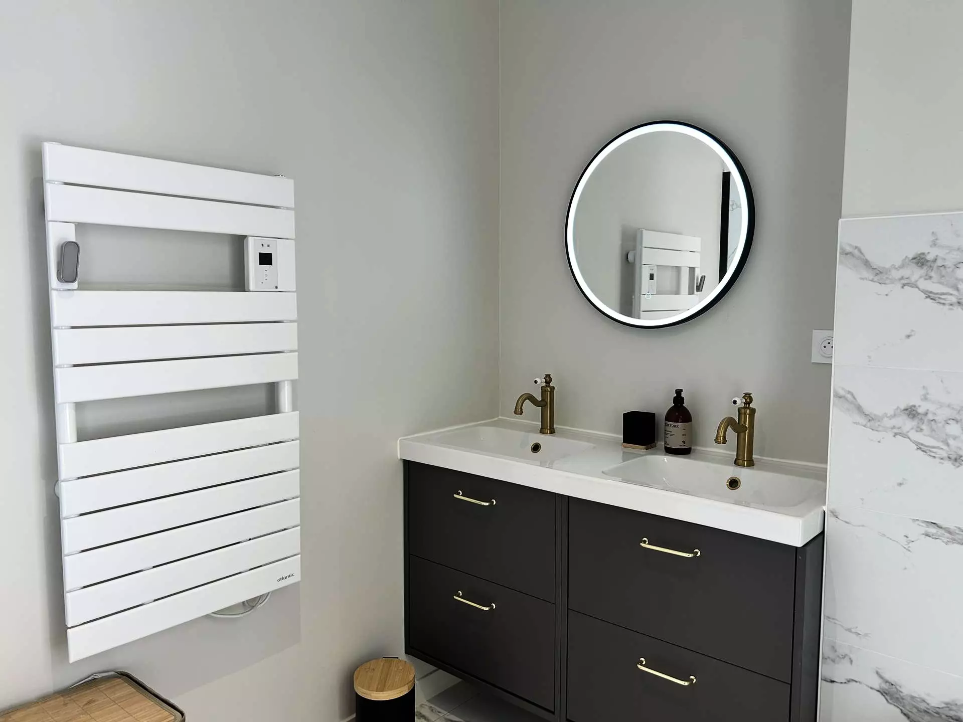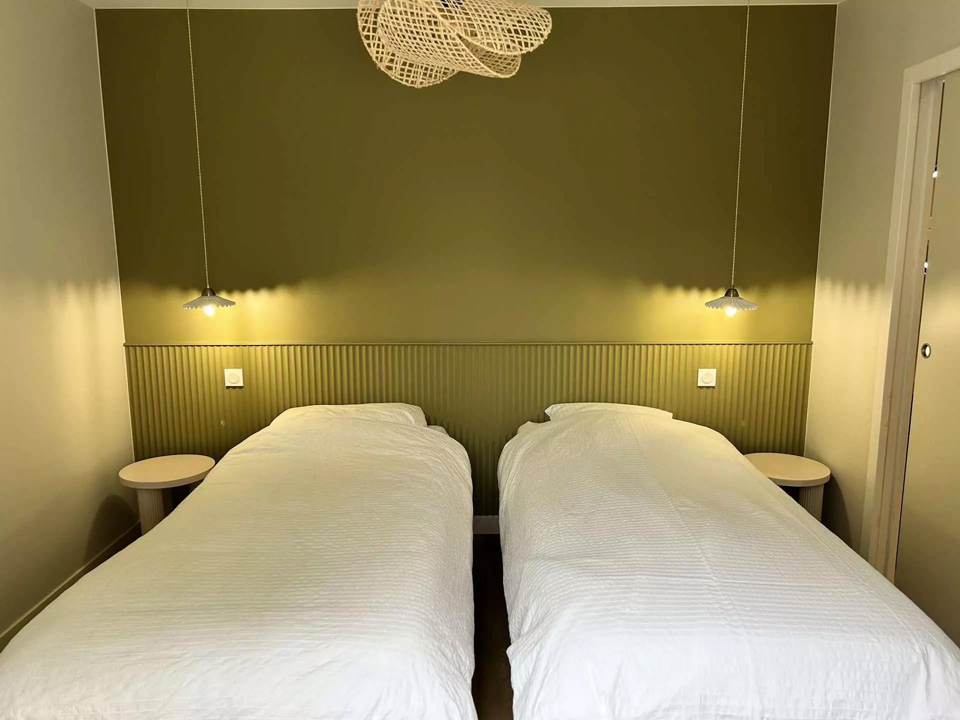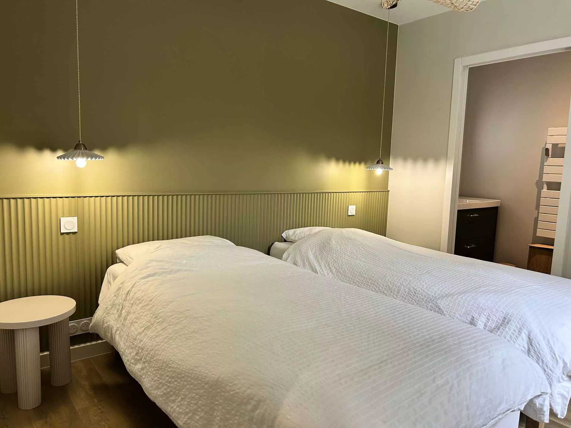 - A final bedroom with two single beds (90x190 cm) and a private bathroom: walk-in shower with sink;