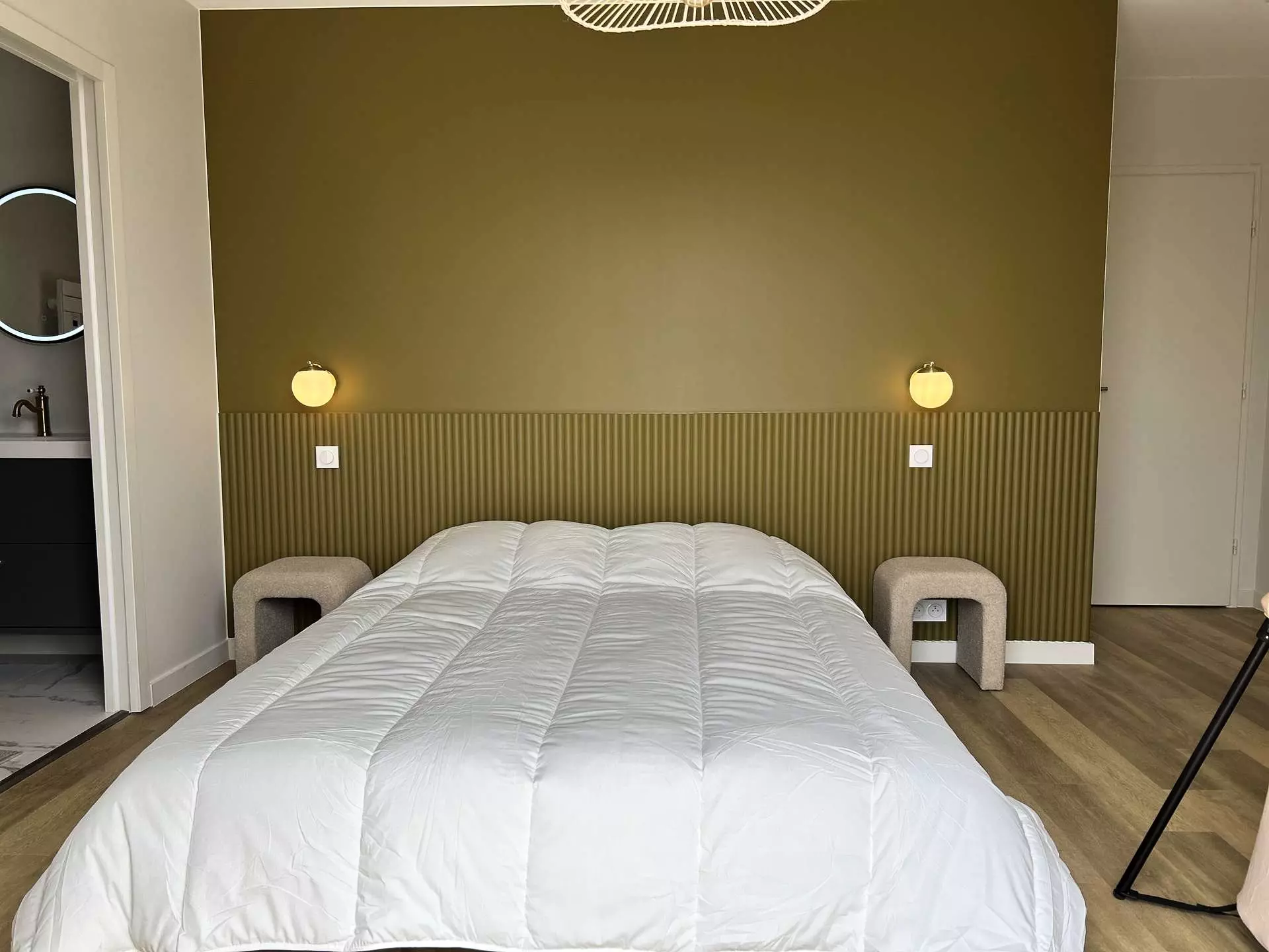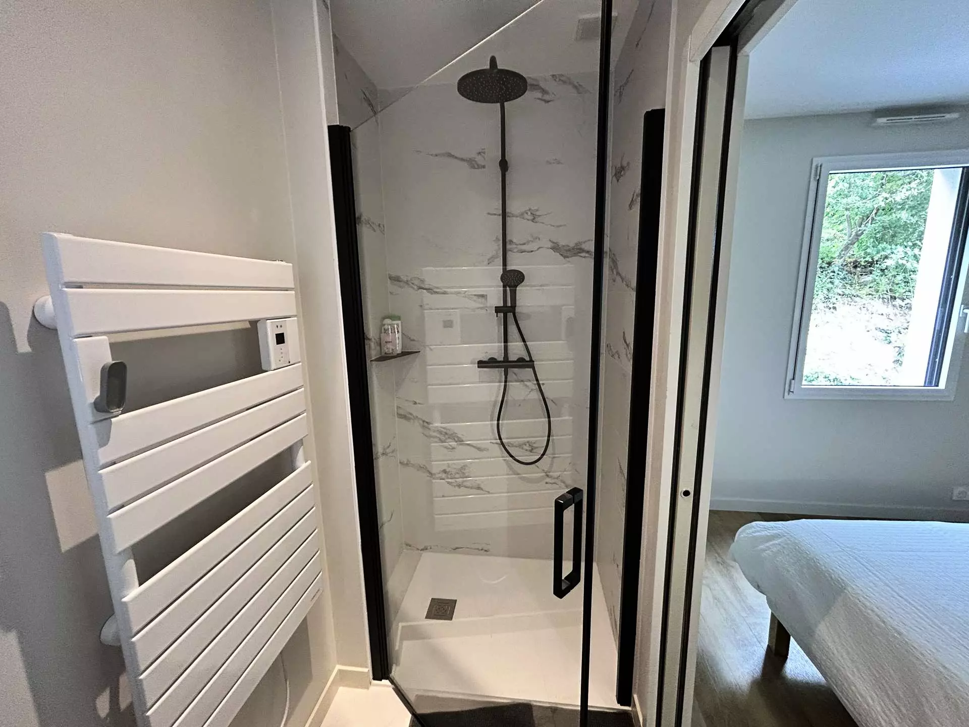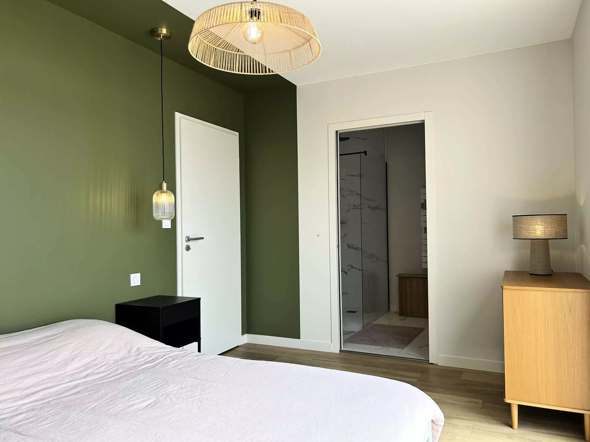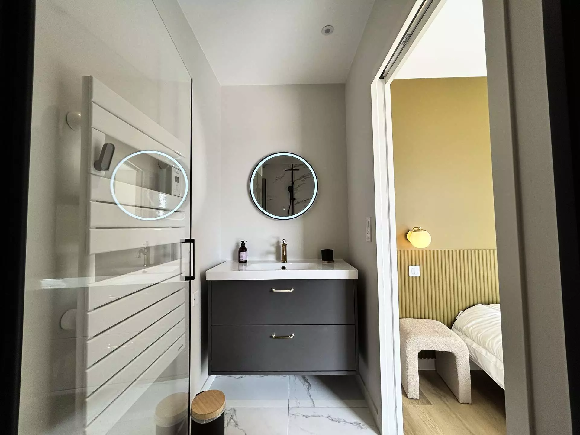 - A bedroom (PMR standard) equipped with a QueenSize bed (160x200 cm) and a private bathroom: walk-in shower, WC and double sink;