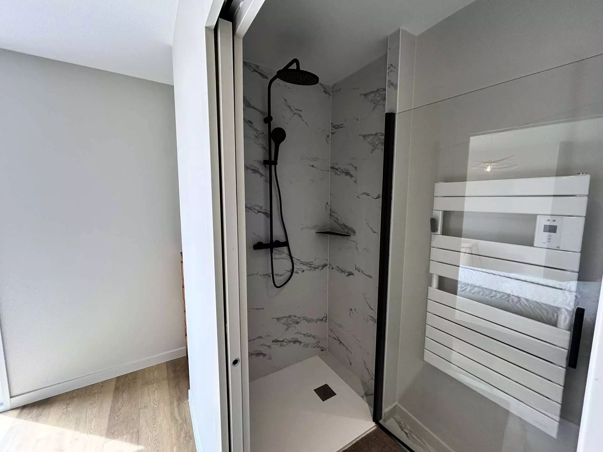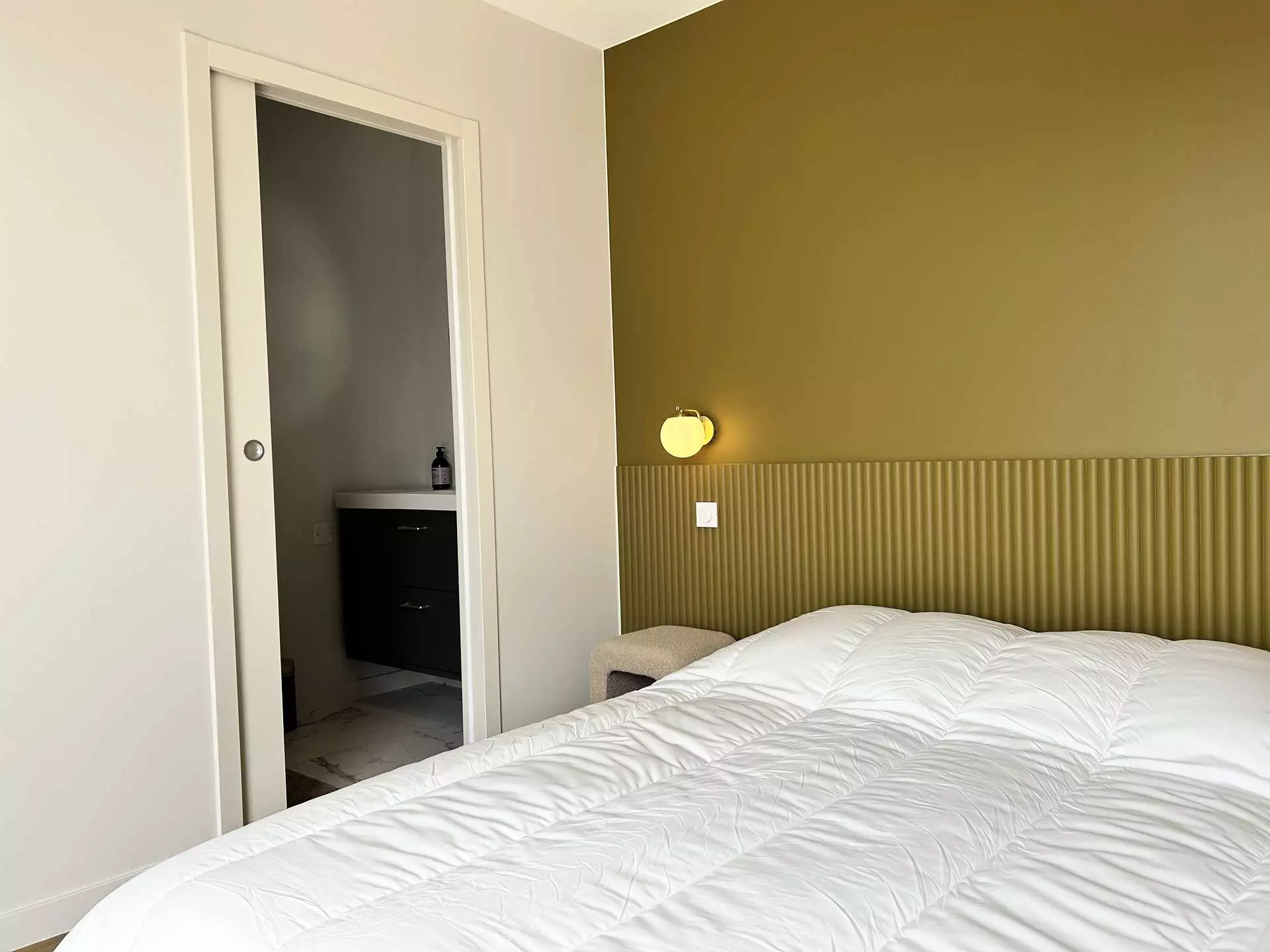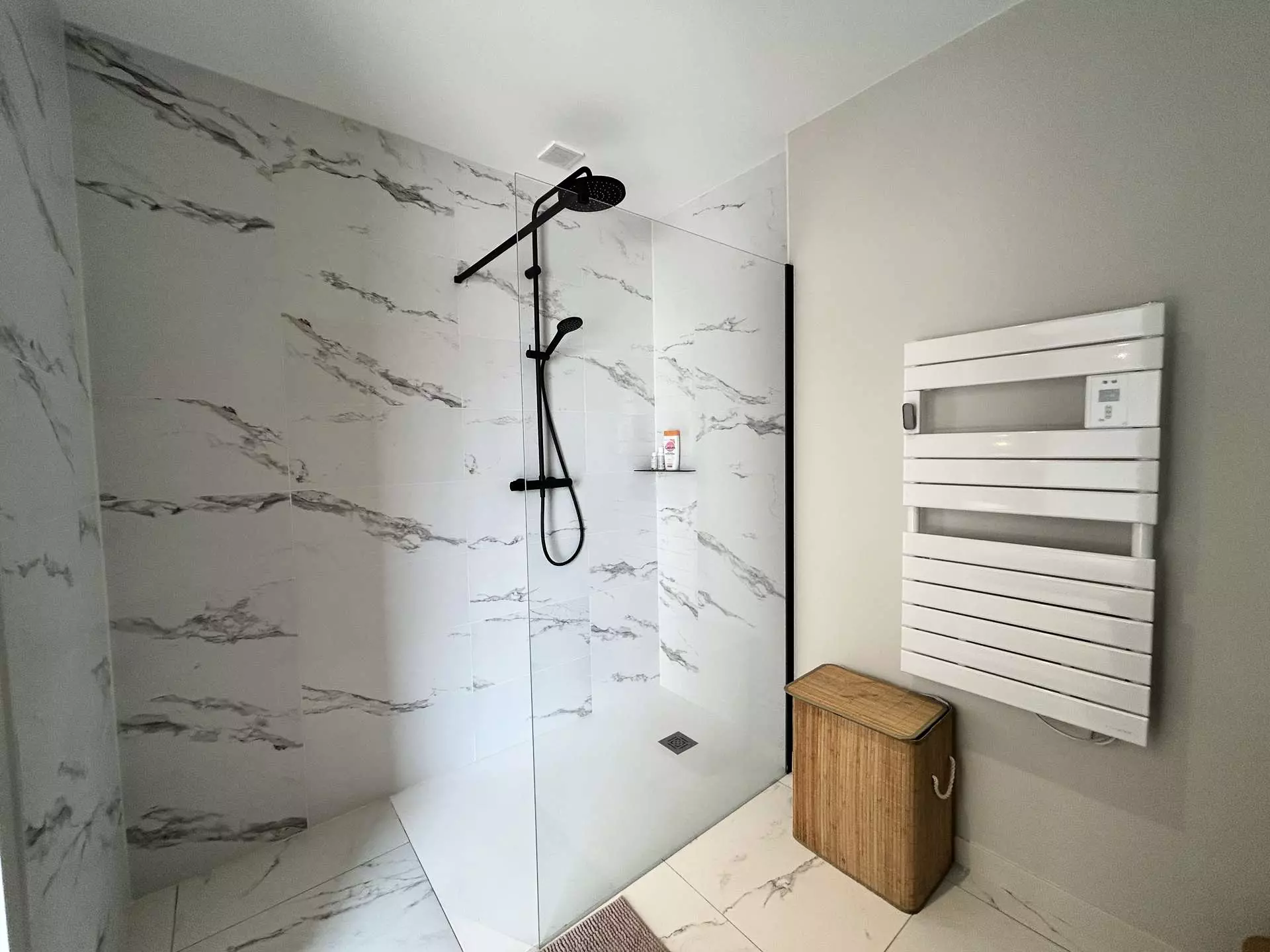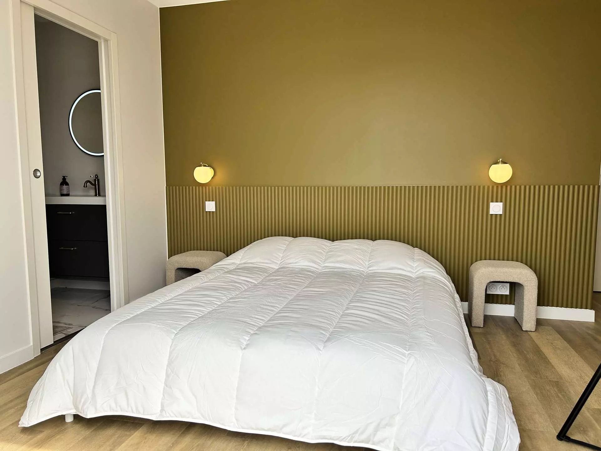 - A bedroom (PMR standard) equipped with a QueenSize bed (160x200 cm) and a private bathroom: walk-in shower, WC and double sink;