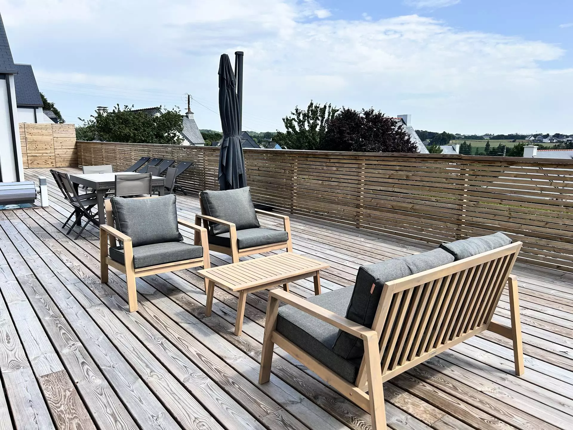 - A fully furnished terrace with a dining table for 6 people, electric barbecue, parasol and deckchairs;