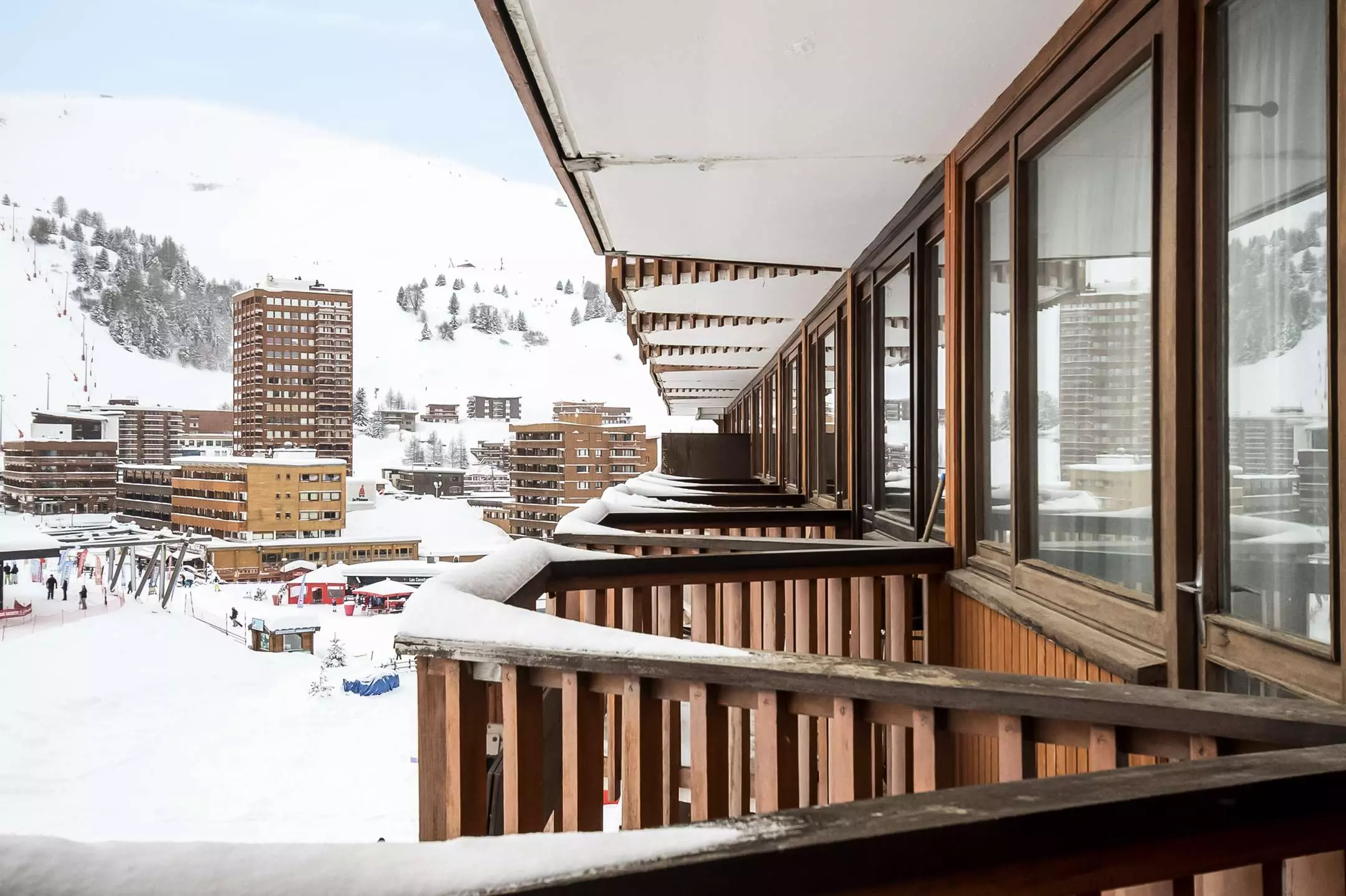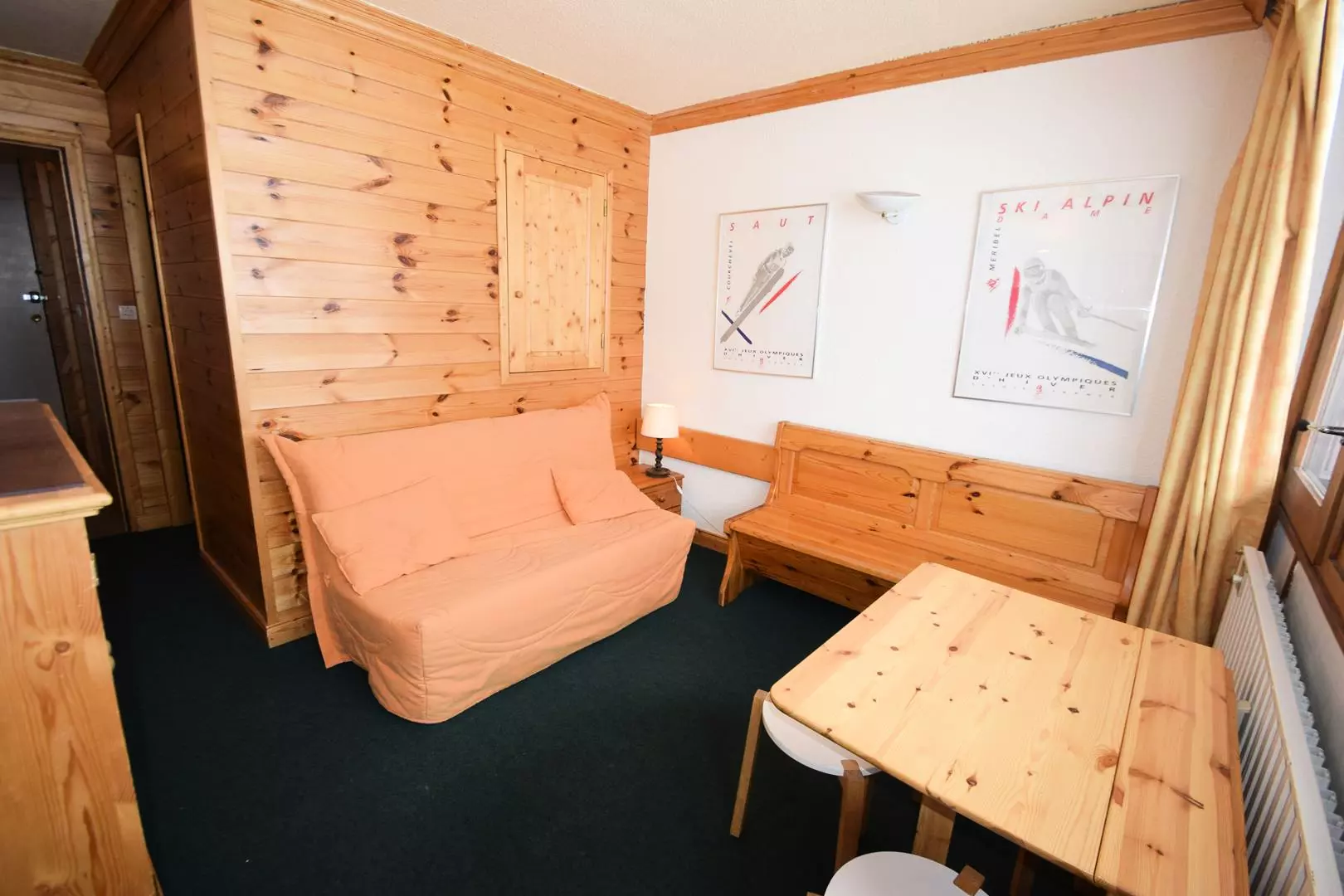 Studio 3/4 pers, 22 m2, facing SOUTH with balcony, view on the slopes, on the 5th floor with elevator - Kitchen in the entrance: 2 electric hotplates, refrigerator, microwave oven, dishwasher. Living room: 1 sofa bed 2 pers (BZ) 140 cm, dining area, television, Cabin area: 2 bunk beds 1 pers (for children) - Bathroom: bathtub, WC included - Bedding: duvets - PETS NOT ALLOWED and NON-SMOKING APPT - End of stay cleaning, sheets, towels and ski passes are optional. Studio with a beautiful view on the slopes and the mountain - Ski locker N°538 on the ground floor UCPA side - Residence - LE FRANCE - located at the foot of the slopes, connected to the shops by gallery