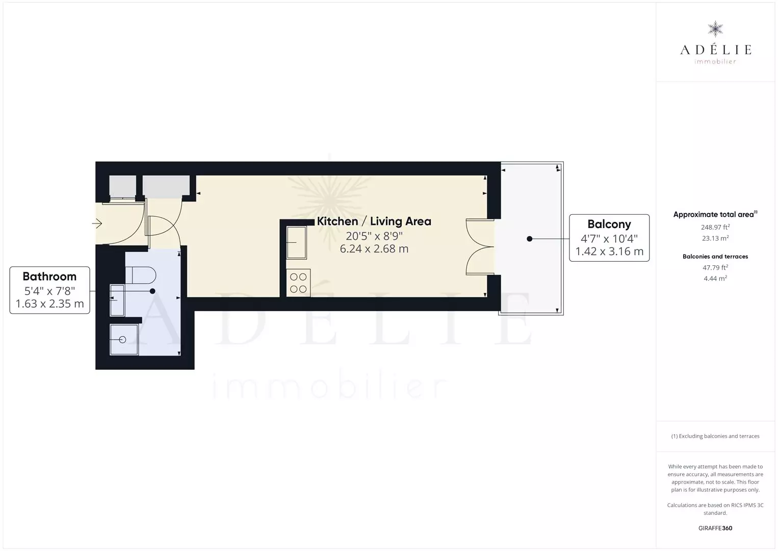 Kitchenette: 2 induction hobs, refrigerator, dishwasher, microwave/grill.