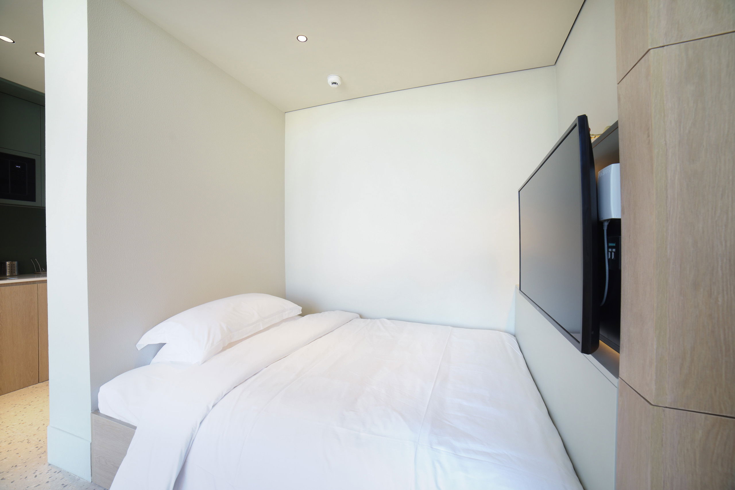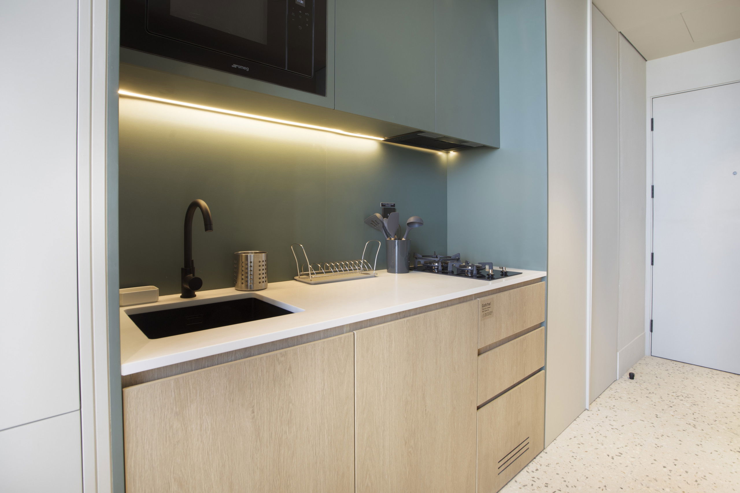 The kitchenette boasts top-of-the-line appliances and is intelligently designed for both convenience and culinary creativity. Whether it's a quick breakfast before a meeting or a leisurely meal prepared at your own pace, the space offers everything needed for a comfortable stay.