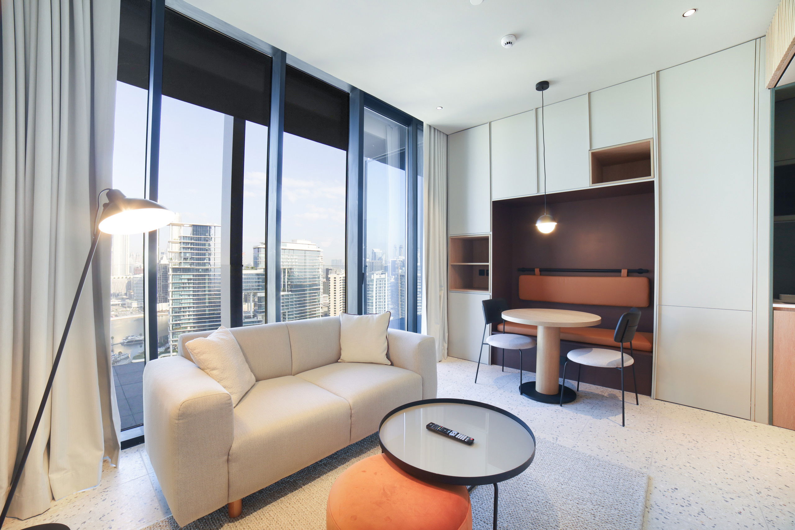 The Upside Living Studio Apartments epitomize modern comfort at its finest, crafted specifically to cater to the discerning needs of business travelers. Nestled in the bustling heart of Business Bay, these studios redefine contemporary living with a blend of sophistication and convenience.