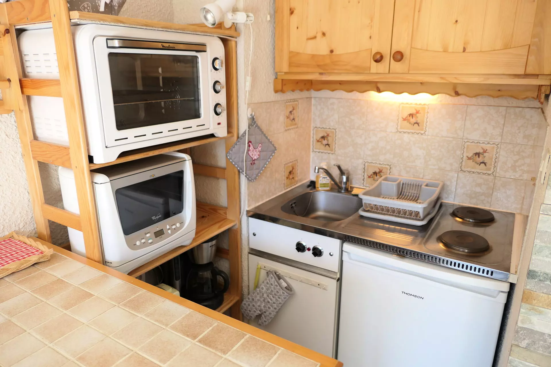 - Kitchenette equipped with 2 electric hotplates, mini-oven, microwave, refrigerator, toaster.