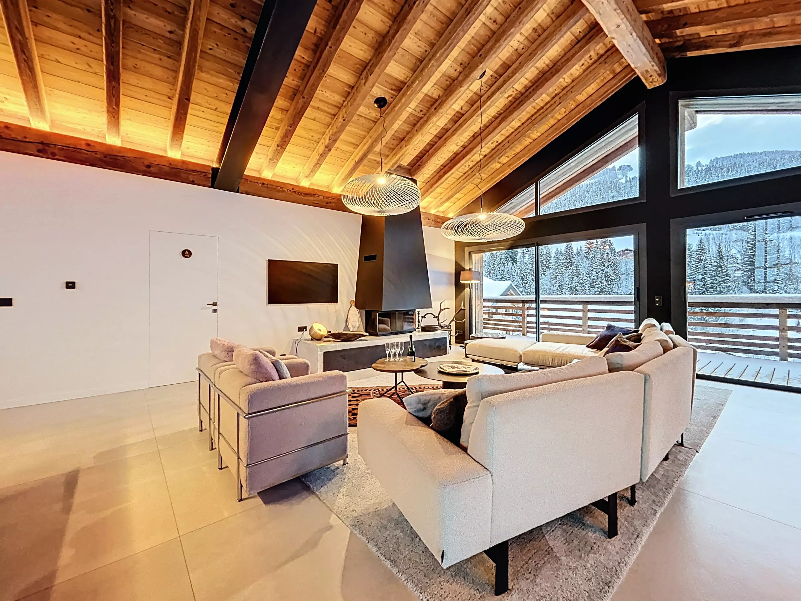 Come and discover this sumptuous new 310 m² chalet located in the heart of Morzine, designed to offer a unique and unforgettable stay experience. Its superb interiors combine authentic materials (old wood, concrete, steel) and warm colors, creating a warm and contemporary atmosphere. The rooms are spacious and bright, and the custom-made furniture provides great comfort and elegance. Particular attention has been paid to leisure and relaxation: a well-equipped sauna and cinema room, table tennis table, the choice of high-end and large-format bedding (180 x 200)