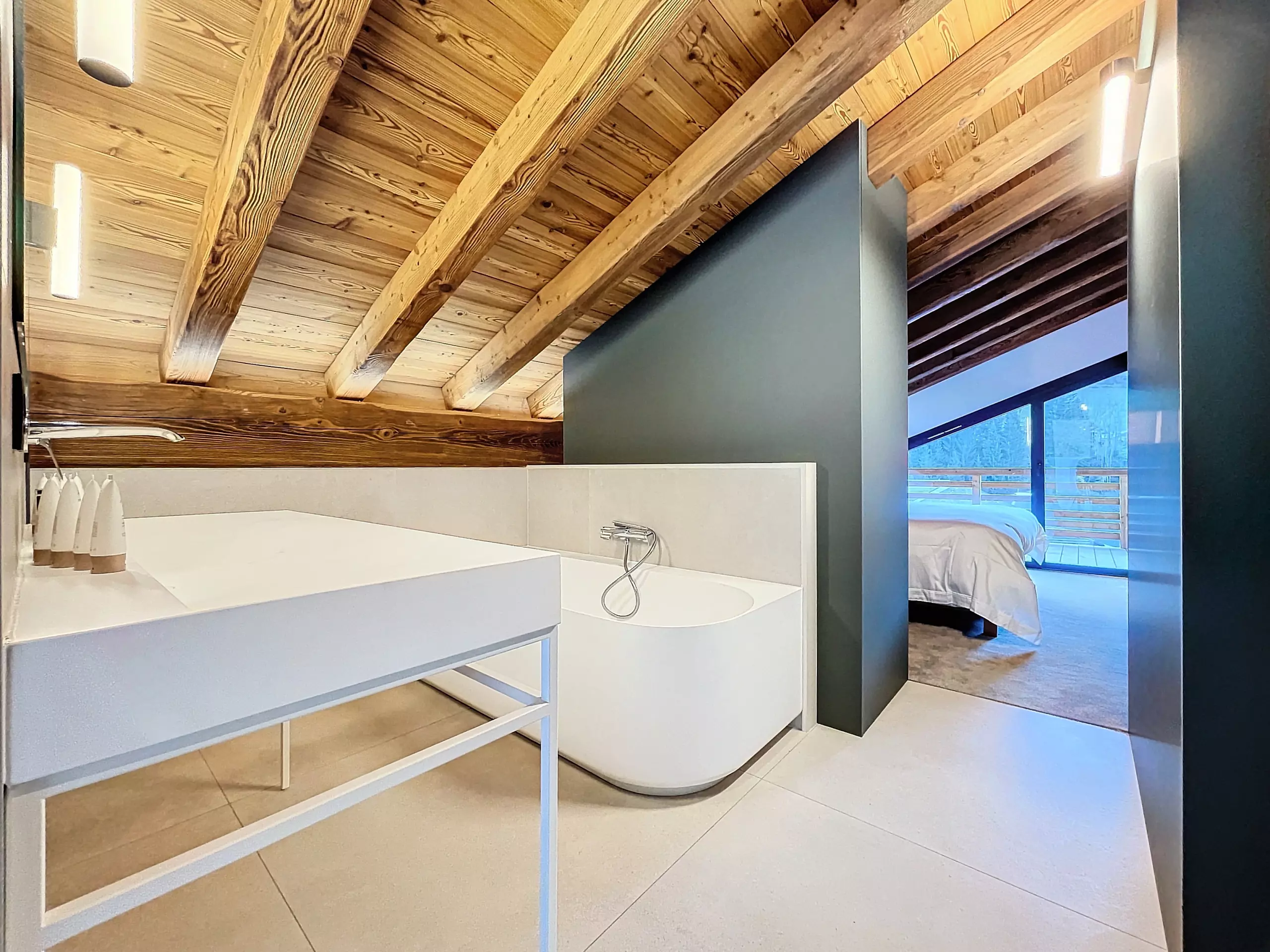 For optimal comfort, enjoy a double garage equipped with an electric vehicle charging station and a ski room to sey store your equipment. Relax in the cinema room with a large screen, ideal for convivial evenings with family or friends, or in the sauna after an active day in the mountains.