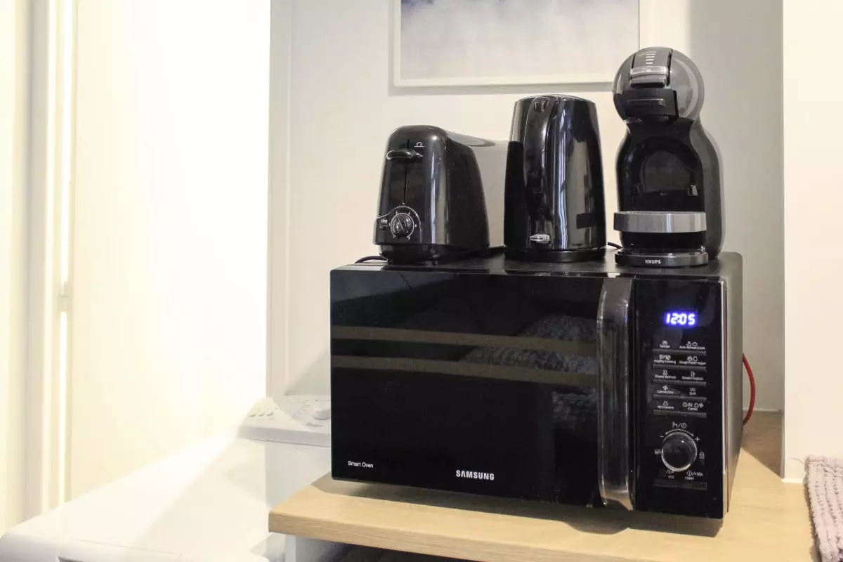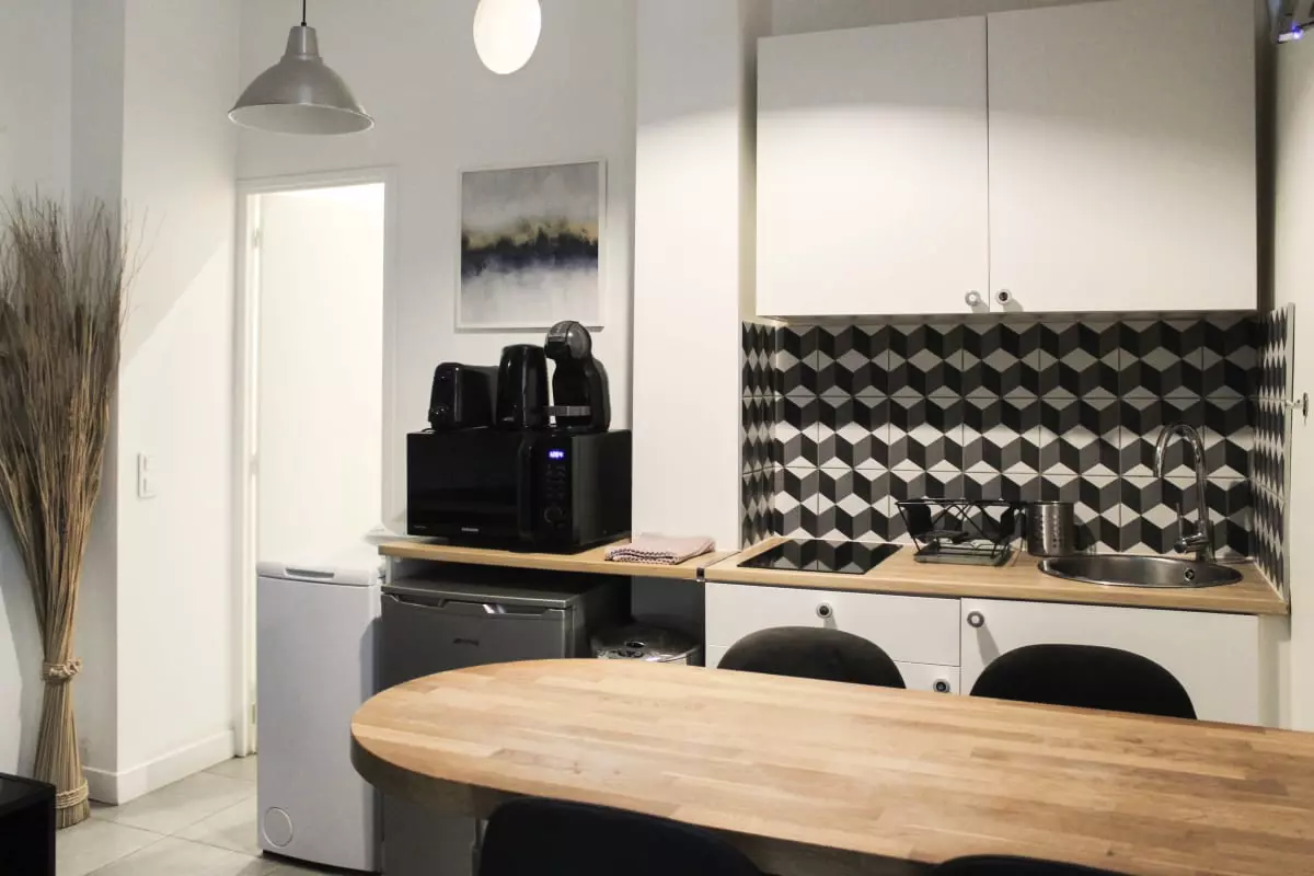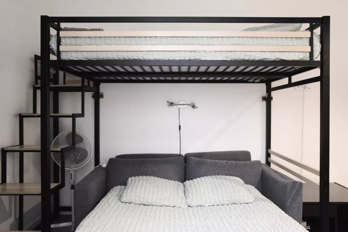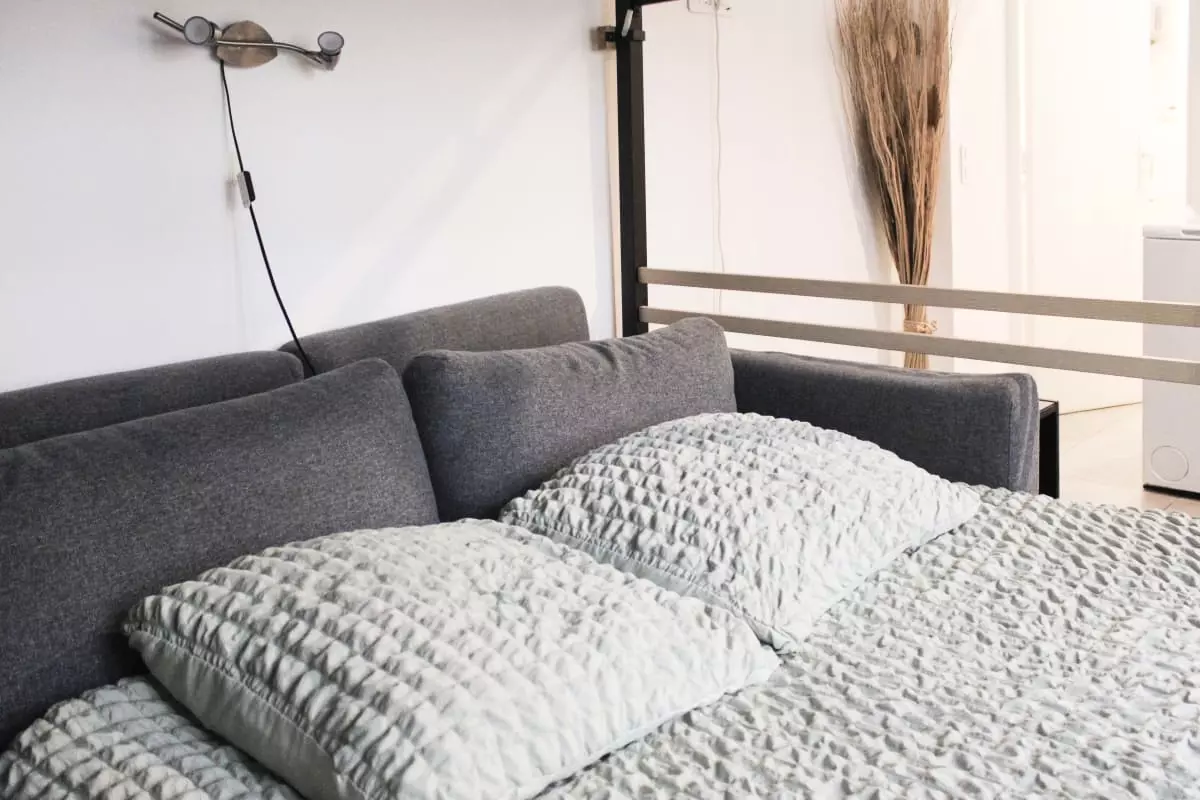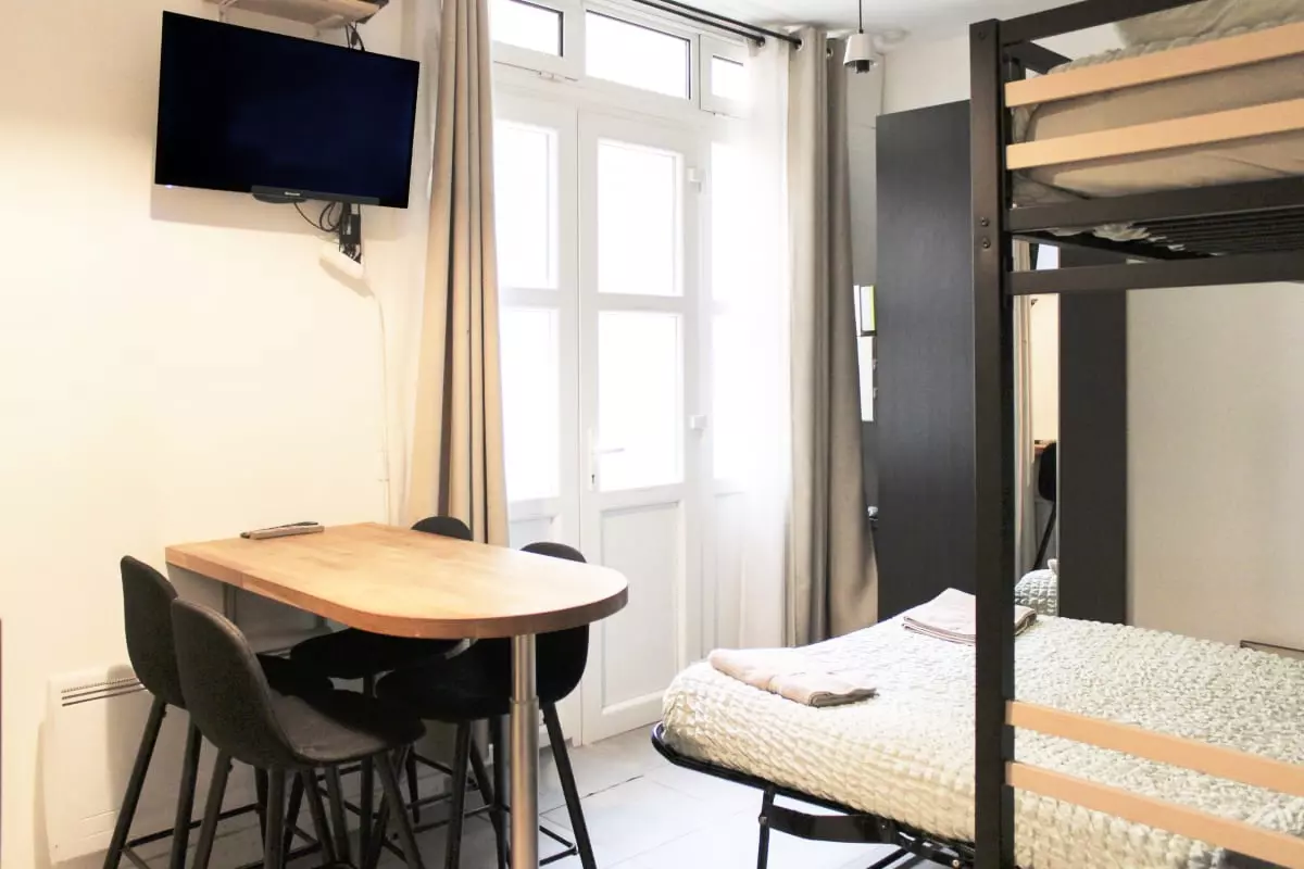 Designed to accommodate up to 4 people, the studio combines comfort and practicality: a sleeping area with a double bed, a lounge area with a convertible sofa, a functional bathroom, and all the equipment necessary for your stay (coffee machine, oven, microwave, washing machine, iron, hair dryer, etc.).