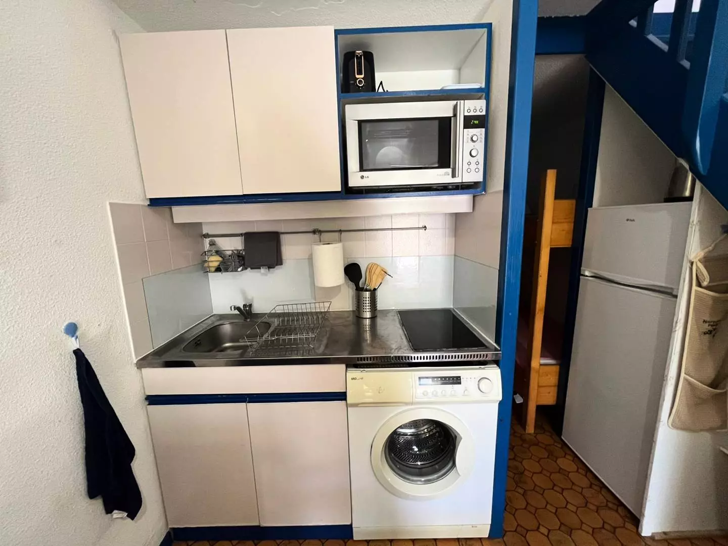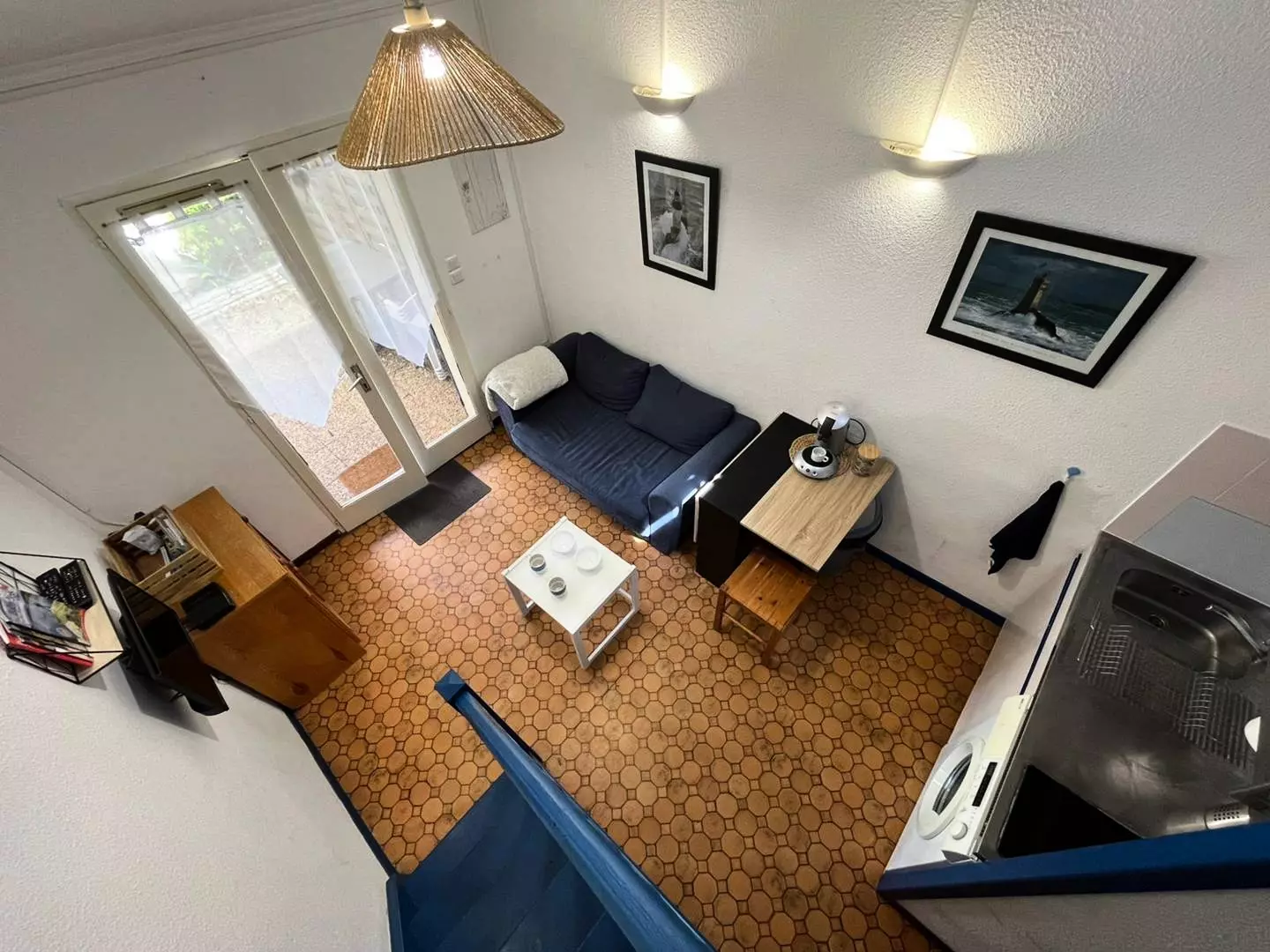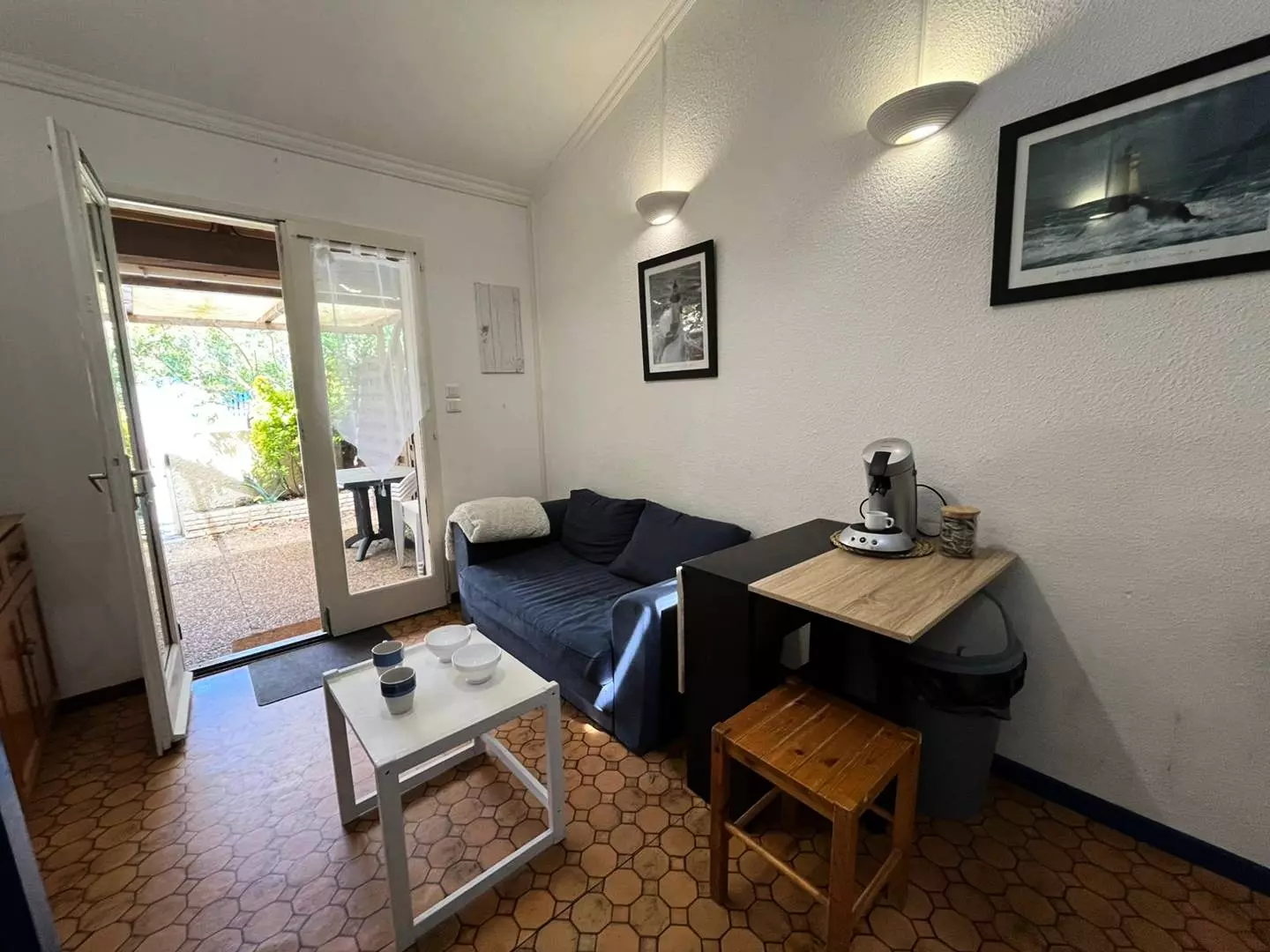 Residence in a quiet green setting and close to shops and the beach, this small pavilion is composed of a main room with sofa, television and equipped kitchen area: hotplates, refrigerator, microwave, coffee maker and kettle.