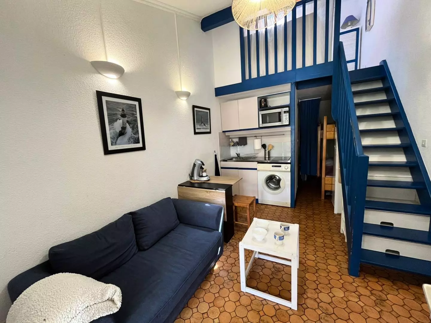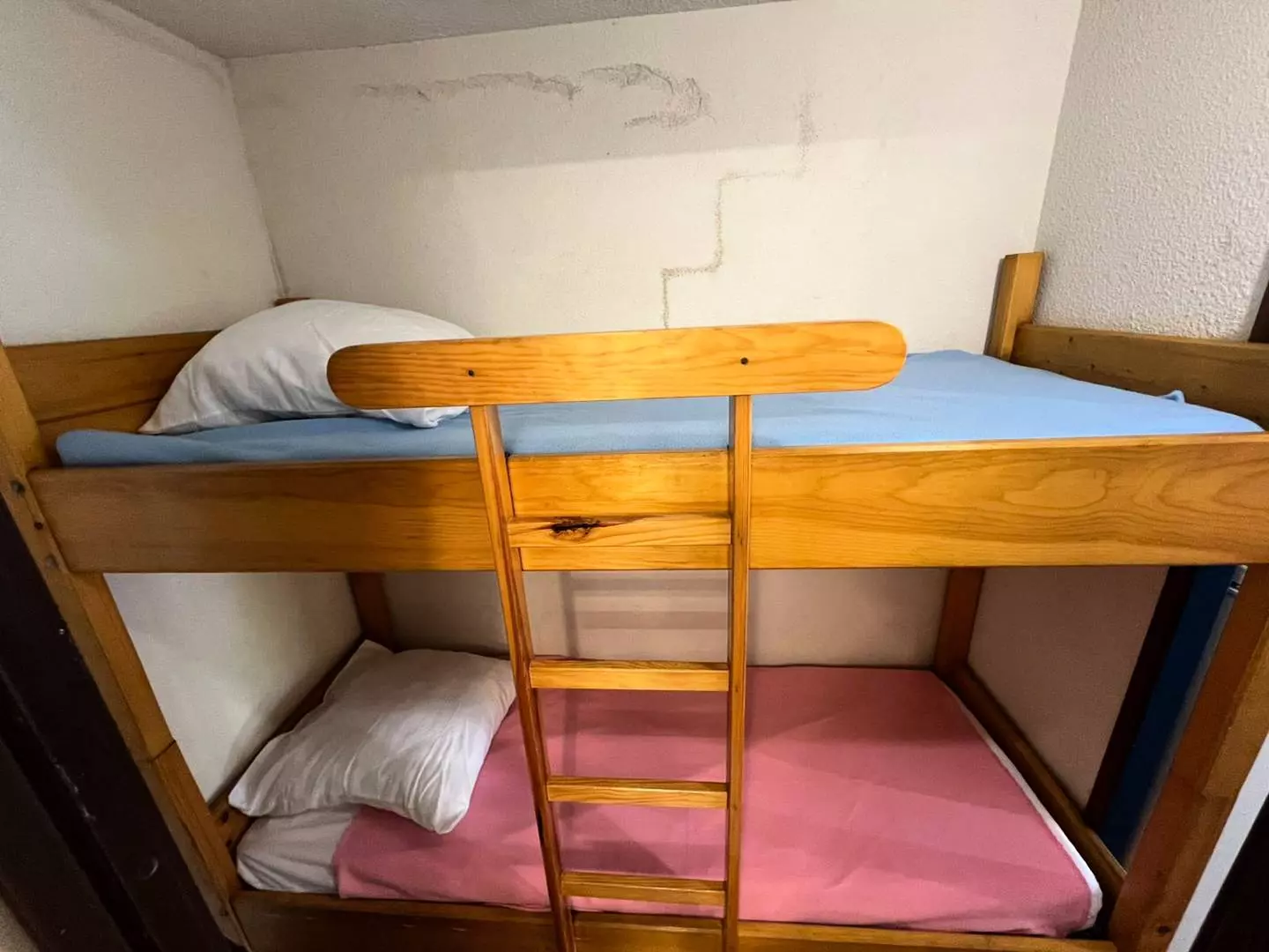 The living room leads to a cabin with 2 bunk beds as well as a mezzanine with a bed for 2 people, skylight and storage.