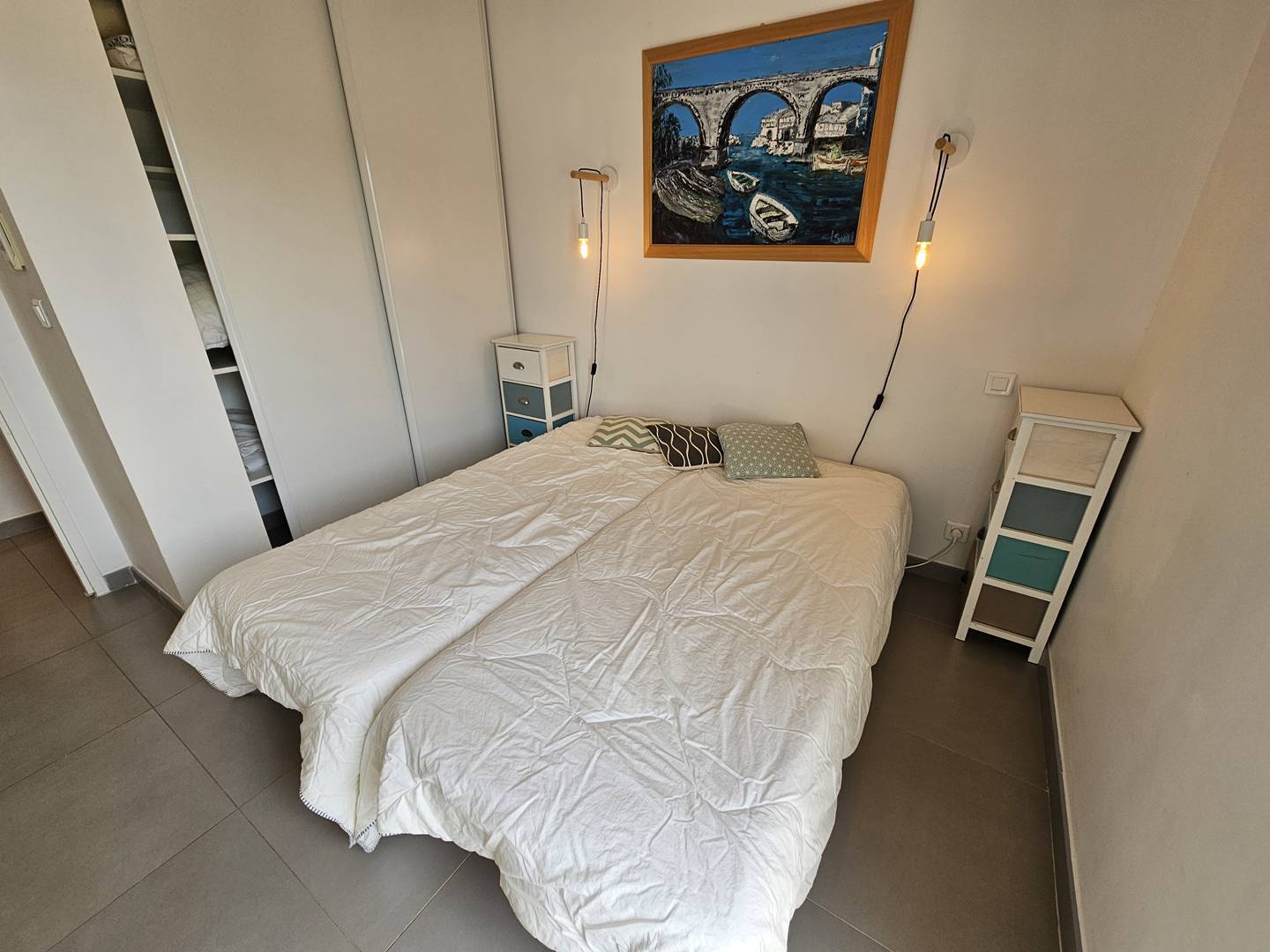 Bedroom 2 - 2 bedrooms with shared balcony (sun) - air conditioning: 1 double bed (1 x 160) - storage - tv.
