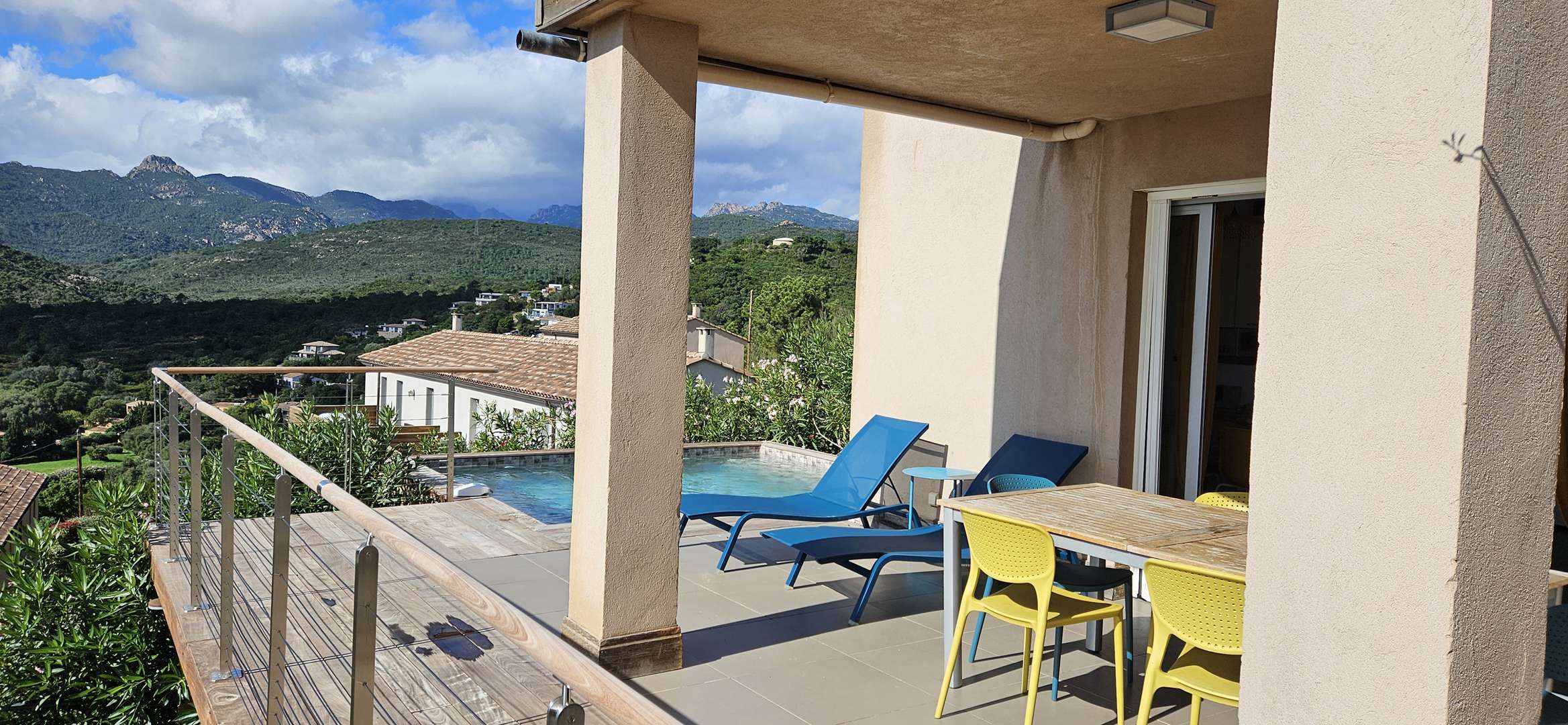 This new villa comfortably equipped and offer a beautiful sea view over the Bay of Tarco and mountains of Bavella.