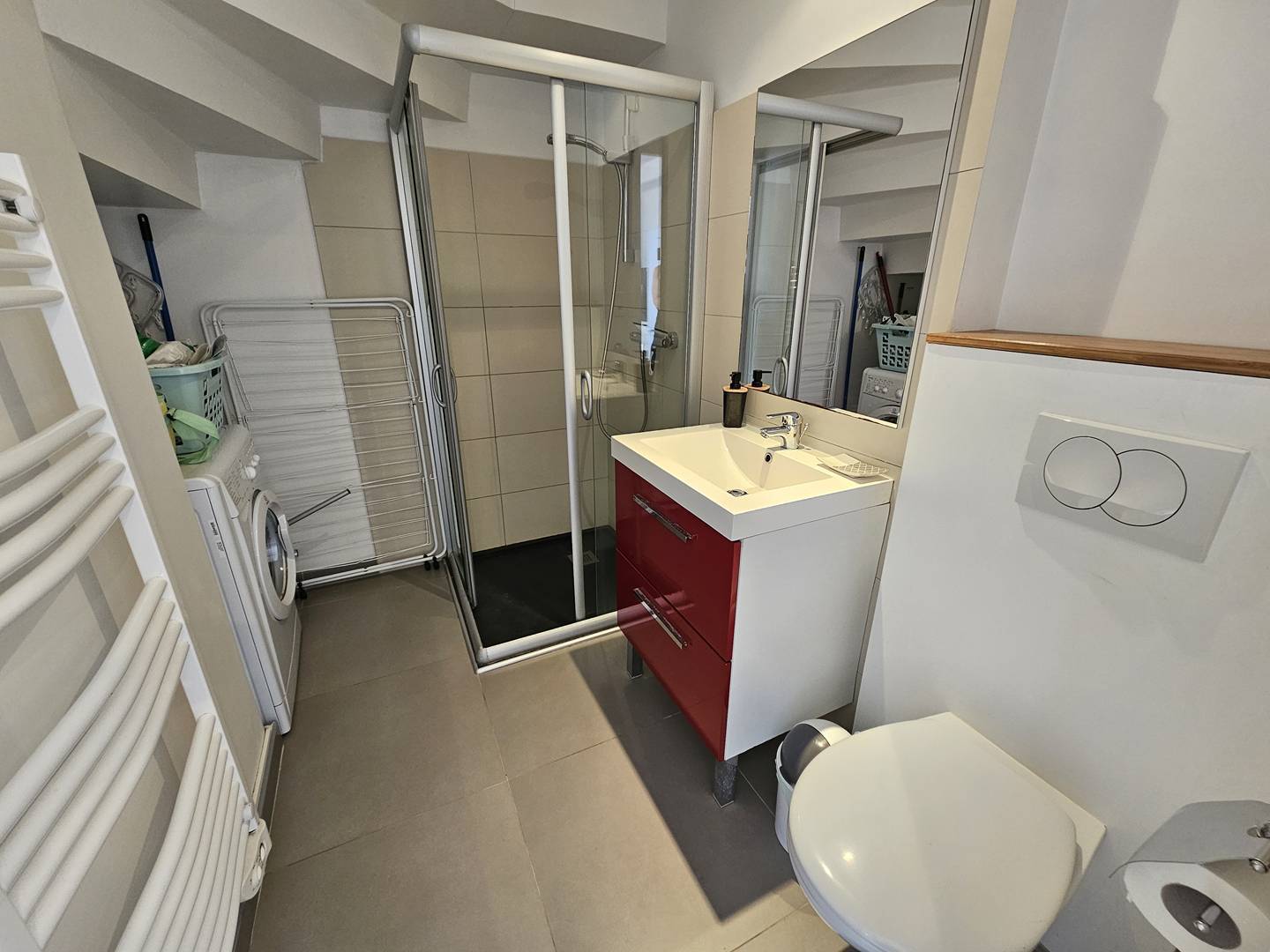 Living room / kitchen - (bay) - electric blind -: hob (induction), oven (electric), extractor hood, fridge freezer, microwave, coffee machine (Nespresso), dishwasher, fitted wardrobe, TV (French, TNT)