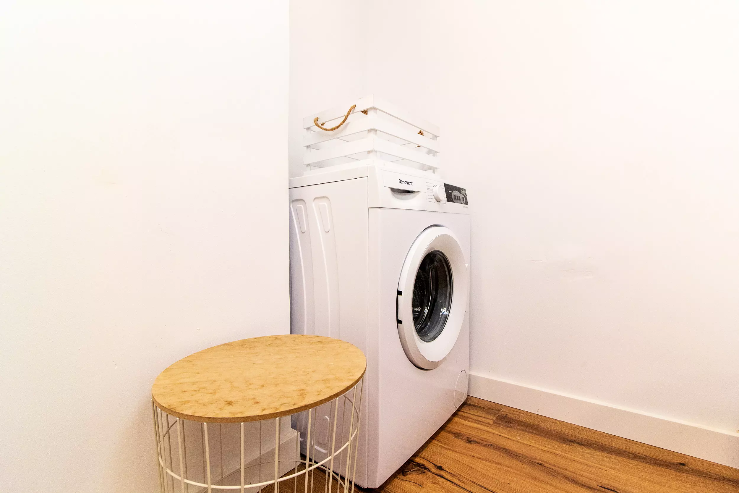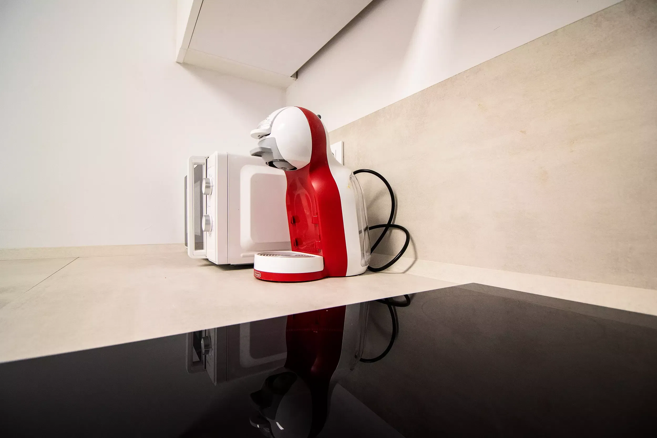 The apartment is fully equipped with central air conditioning and heating to ensure maximum comfort all year round. The separate kitchen is fully equipped with modern appliances such as a washing machine, dishwasher, oven, microwave, toaster, and coffee machine, making it easy to prepare meals during your stay.
