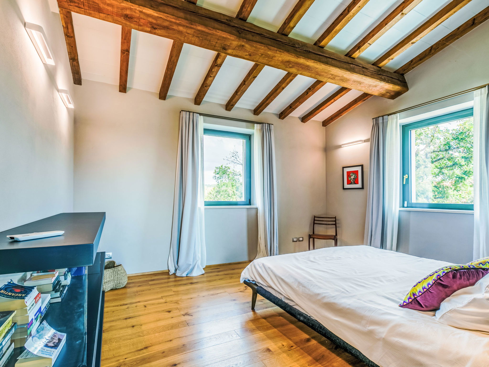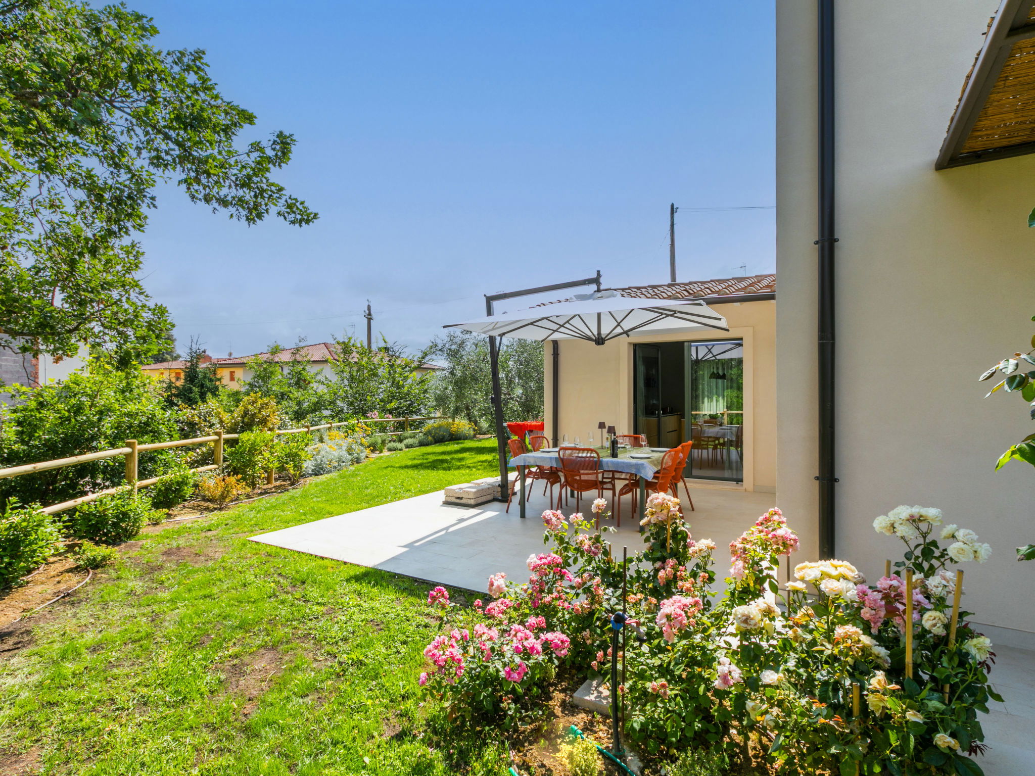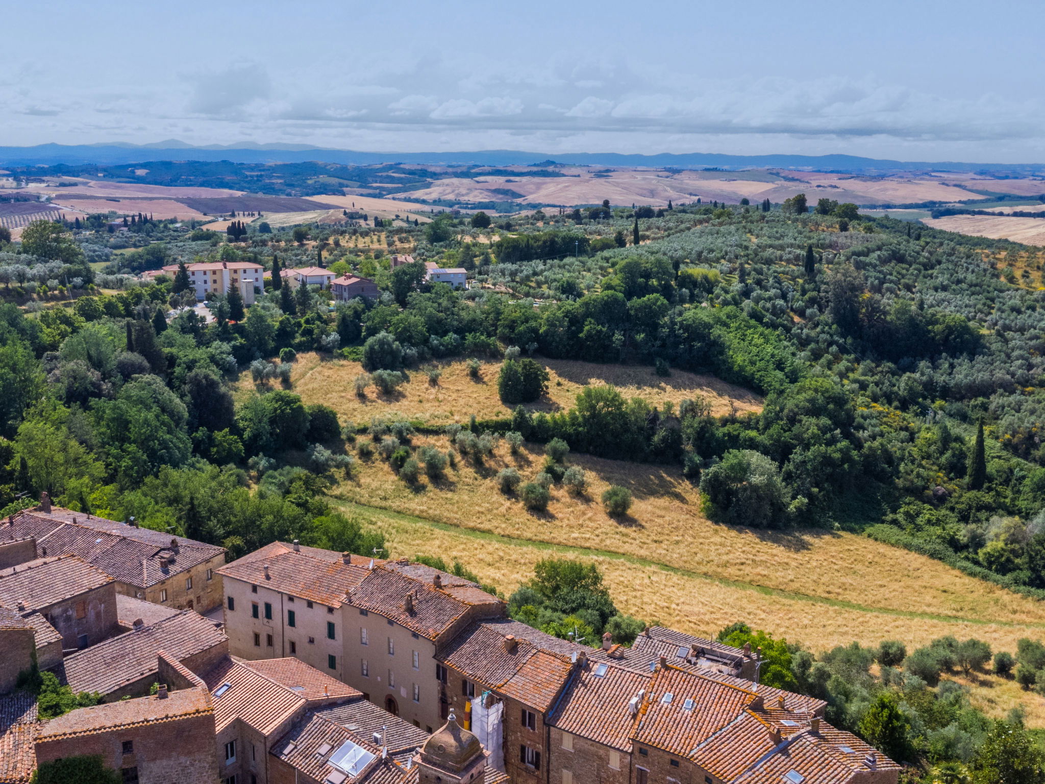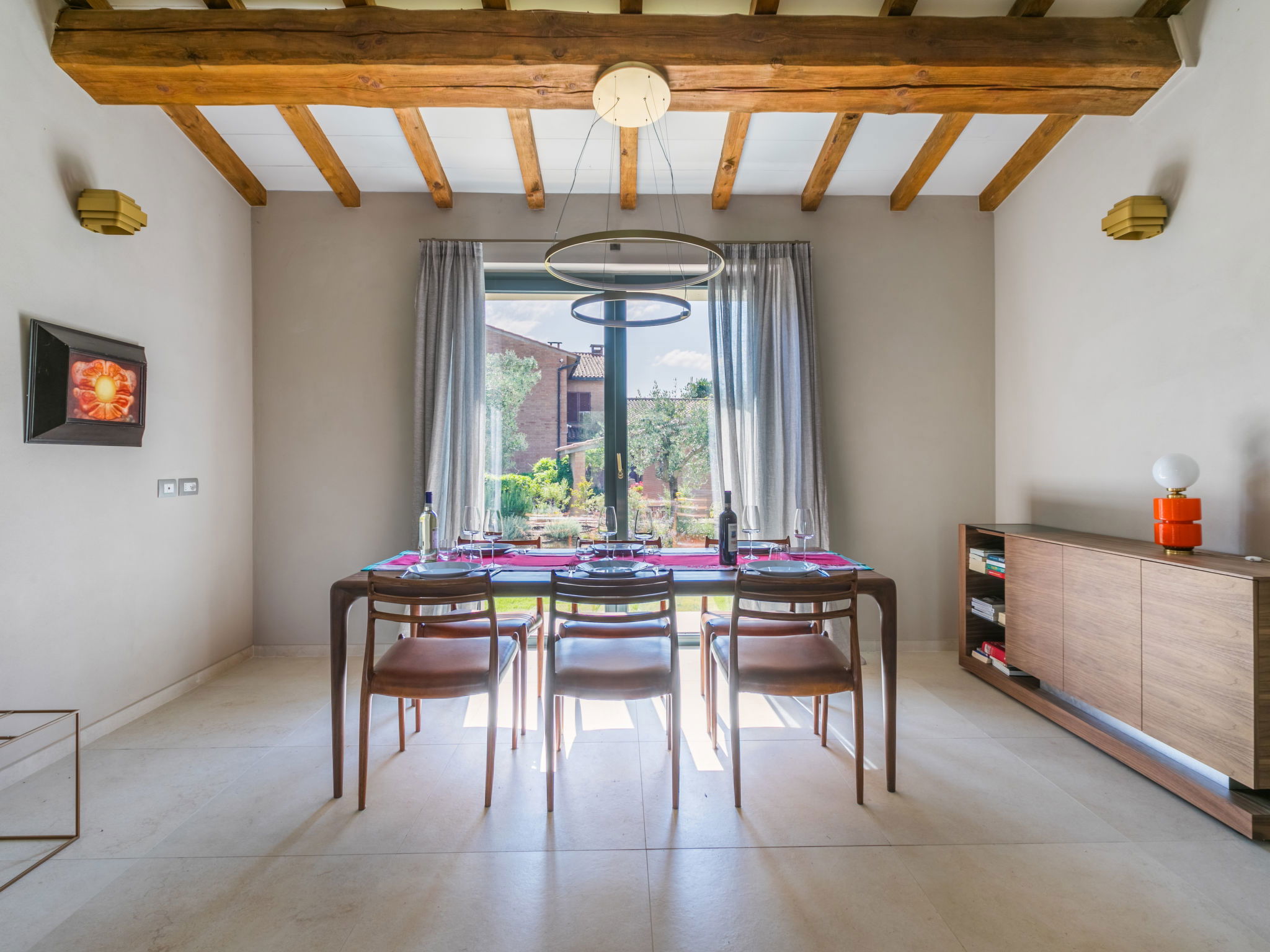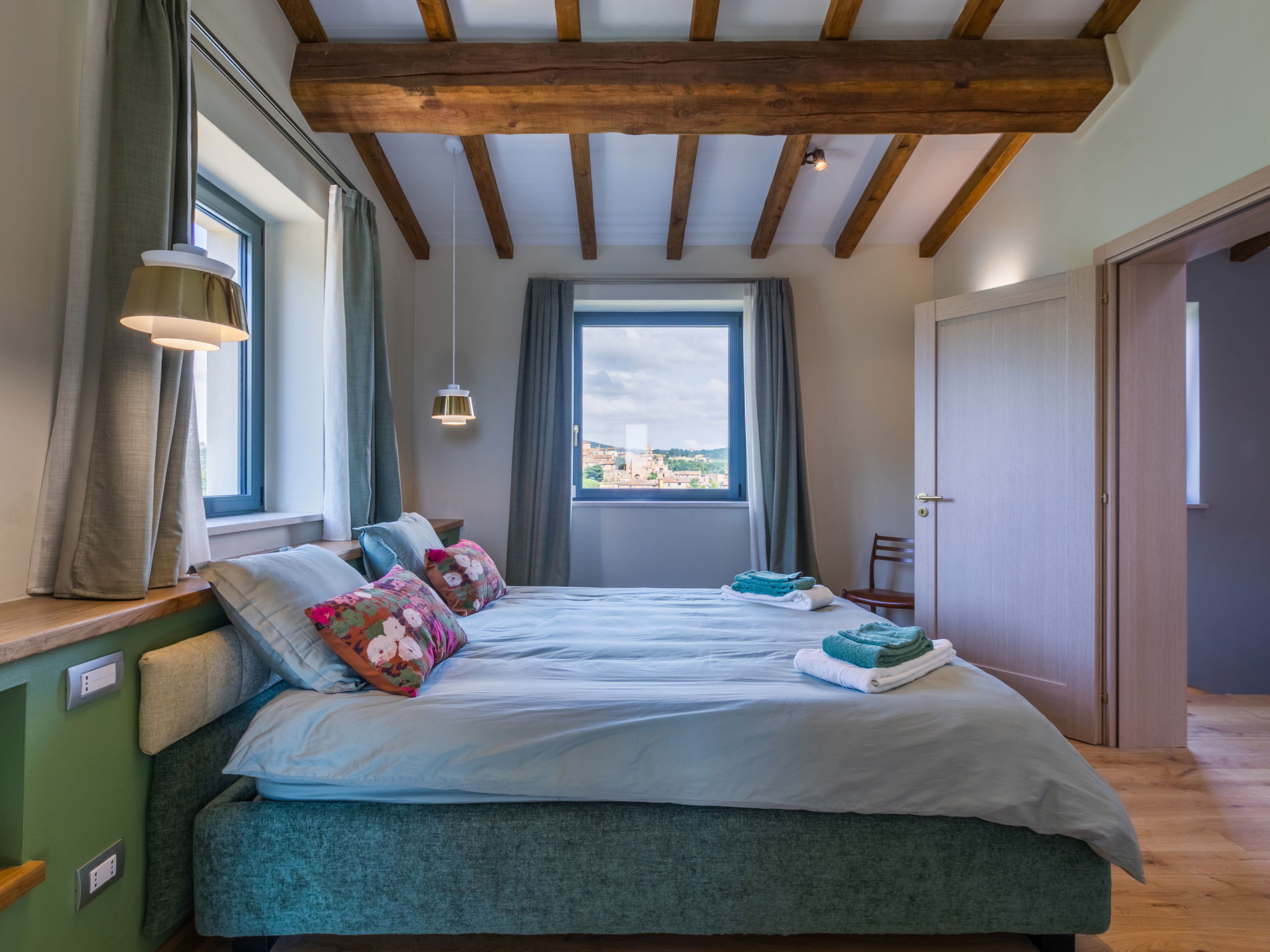 Montisi 15 km from Montalcino: Modern, beautiful house "Villa Montisi", 2 storeys, built in 2020, surrounded by trees and fields. 500 m from the centre of Montisi, in a sunny, elevated position in the residential district, in the countryside. Private: beautiful garden with flowers and trees, swimming pool (4 x 12 m, depth 120 - 150 cm, seasonal availability: 01.May. - 30.Sep.) with internal staircase. Outdoor shower, garden furniture, barbecue, pool maintenance by the owner/gardener. In the house: air conditioning, washing machine, tumble dryer. Storeroom available. Parking at the house on the premises. Shop, grocery 500 m, supermarket 10 km, restaurant 500 m, 5 minute walk to the centre, bus stop "Montisi" 500 m. Nearby attractions: Montalcino 23 km, Pienza 30 km, Montapulciano 25 km, Siena 50 km. Please note: baby equipment (included). Groups of teenagers on request only.