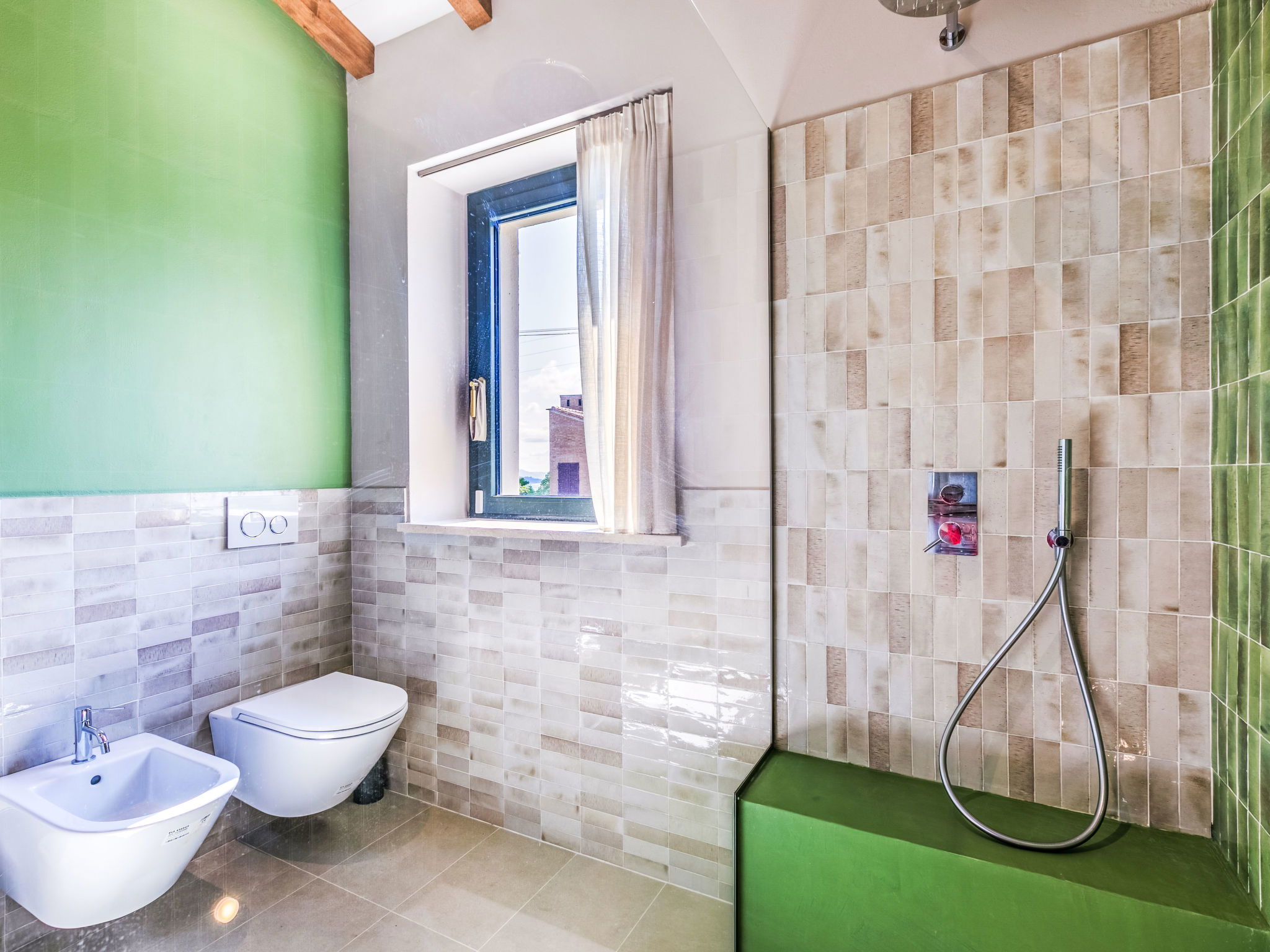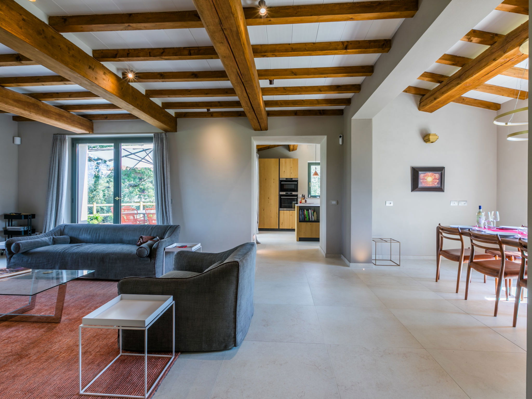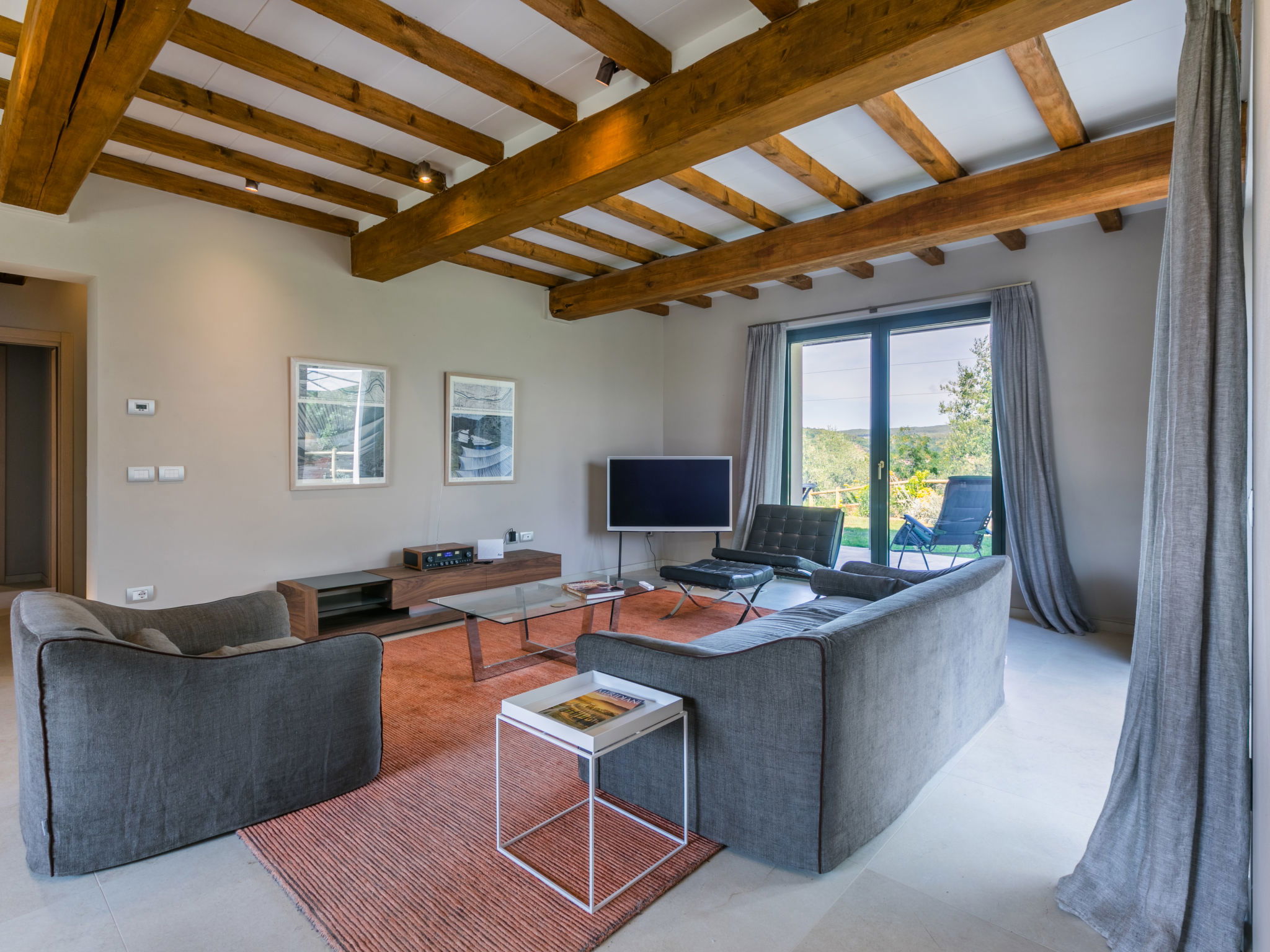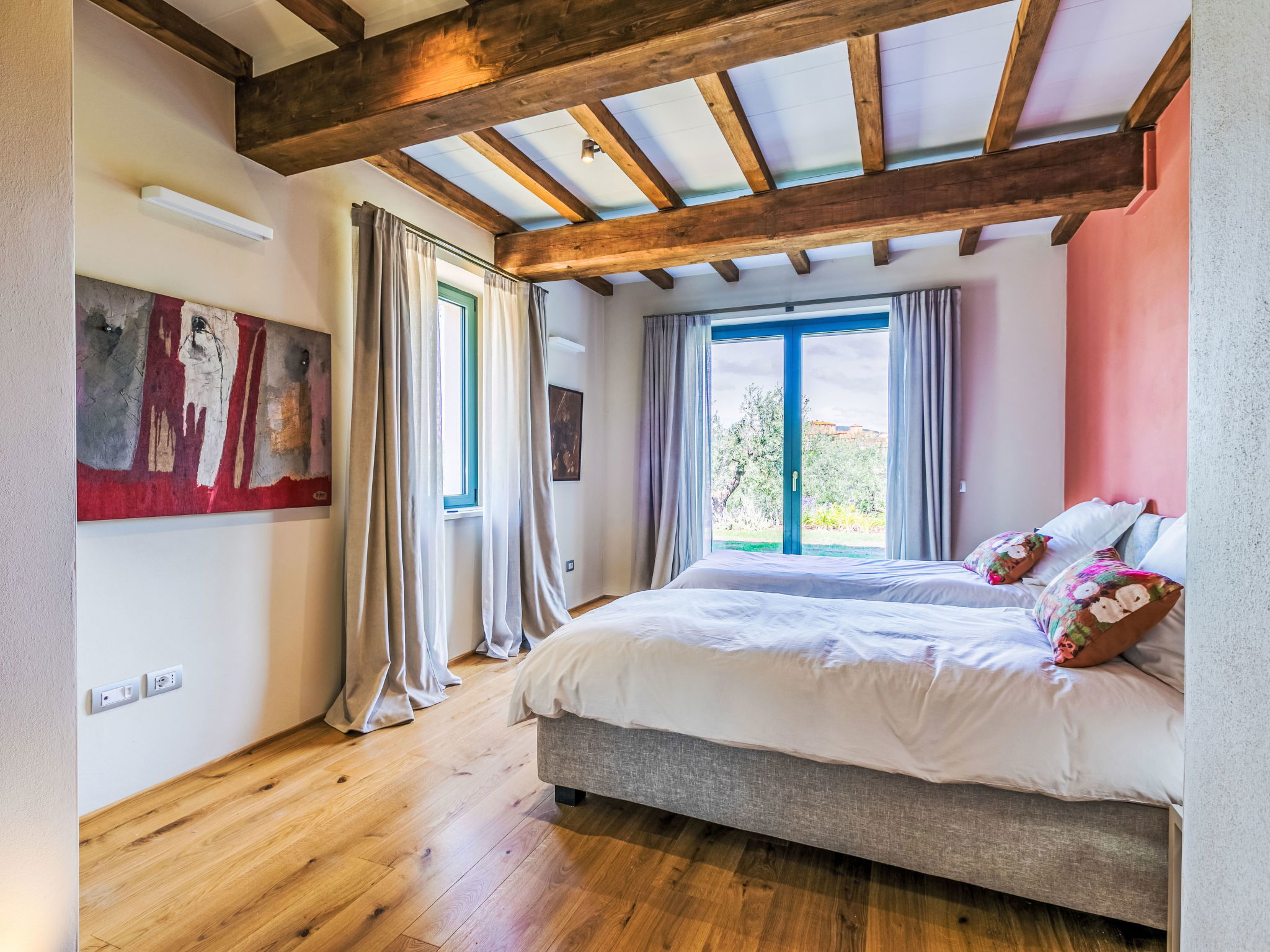 "Villa Montisi", 4-room villa 170 m2 on 2 levels. Spacious and bright, very tasteful and stylish furnishings: open large living/dining room with panoramic window with dining table and TV (flat screen), air conditioning. Exit to the garden, to the terrace. 1 room with panoramic window with 2 beds (80 cm, length 200 cm), air conditioning. Large, open kitchen (oven, dishwasher, 5 induction hot plates, toaster, kettle, microwave, electric coffee machine, Capsules for coffee machine (Nespresso) extra) with air conditioning. Exit to the patio. Bath/WC. Upper floor: open small, Studio. 1 double bedroom with panoramic window Dressing room with shower/bidet/WC and air conditioning. 1 large double bedroom with panoramic window with shower/bidet/WC and air conditioning. Air-conditioning, floor heating. Natural stone floors. 2 terraces, patio, garden, lawn. Terrace furniture, barbecue, deck chairs. Very beautiful panoramic view of the resort. Facilities: washing machine, dryer, iron, children's high chair, baby cot for up to 2 year olds, hair dryer. Internet (WiFi, free). Parking at the house. Please note: non-smokers only. Smoke alarm, fire extinguisher. The pool mentioned in the description is for private use. IT052037C2OY62BVYD