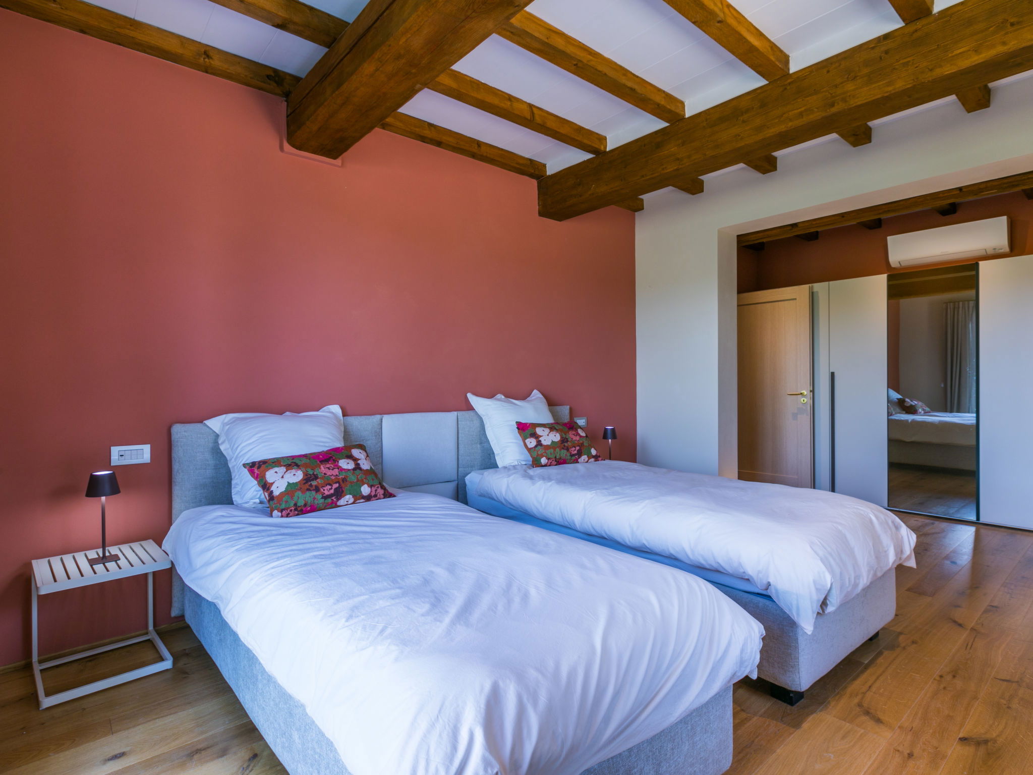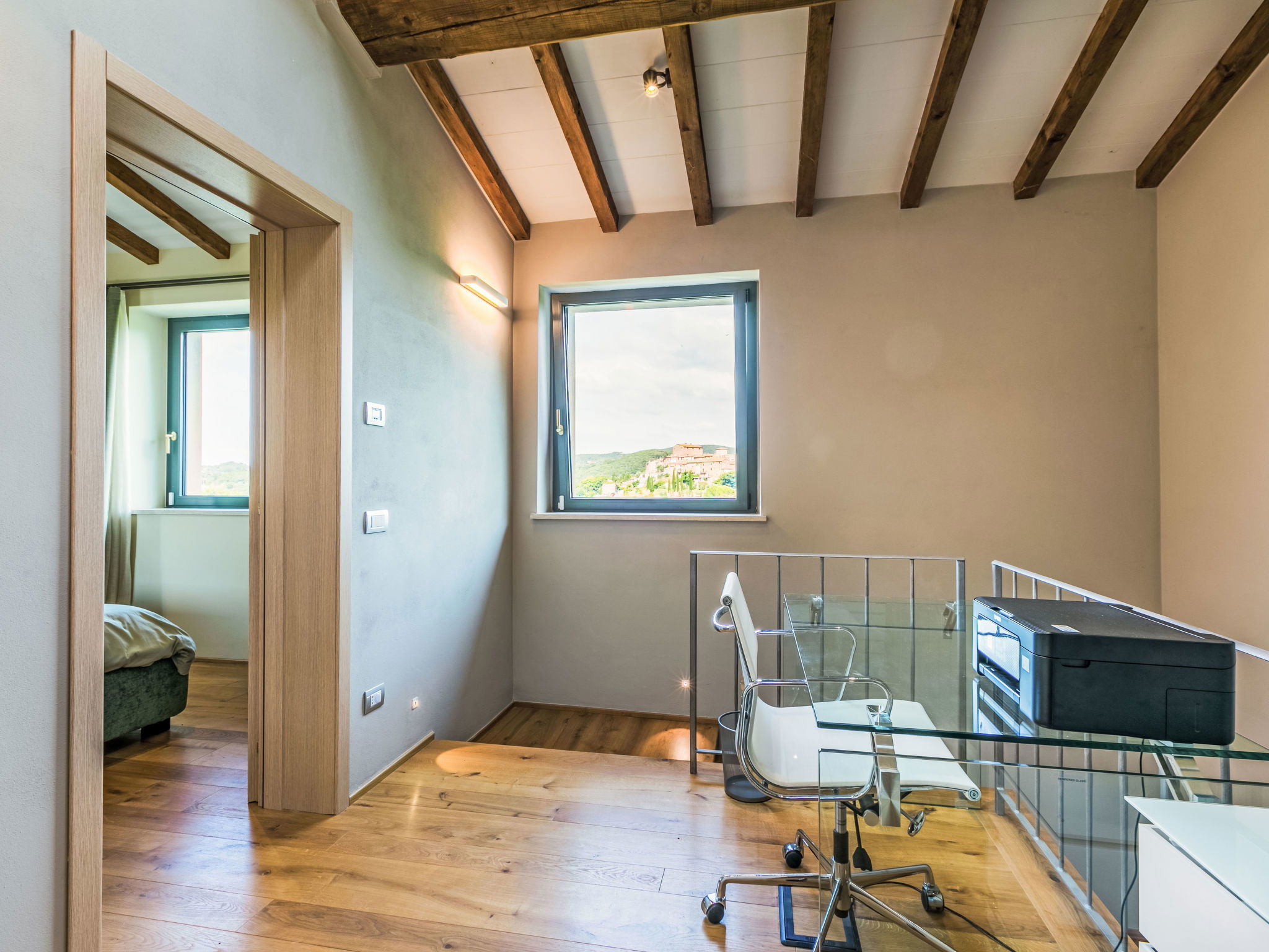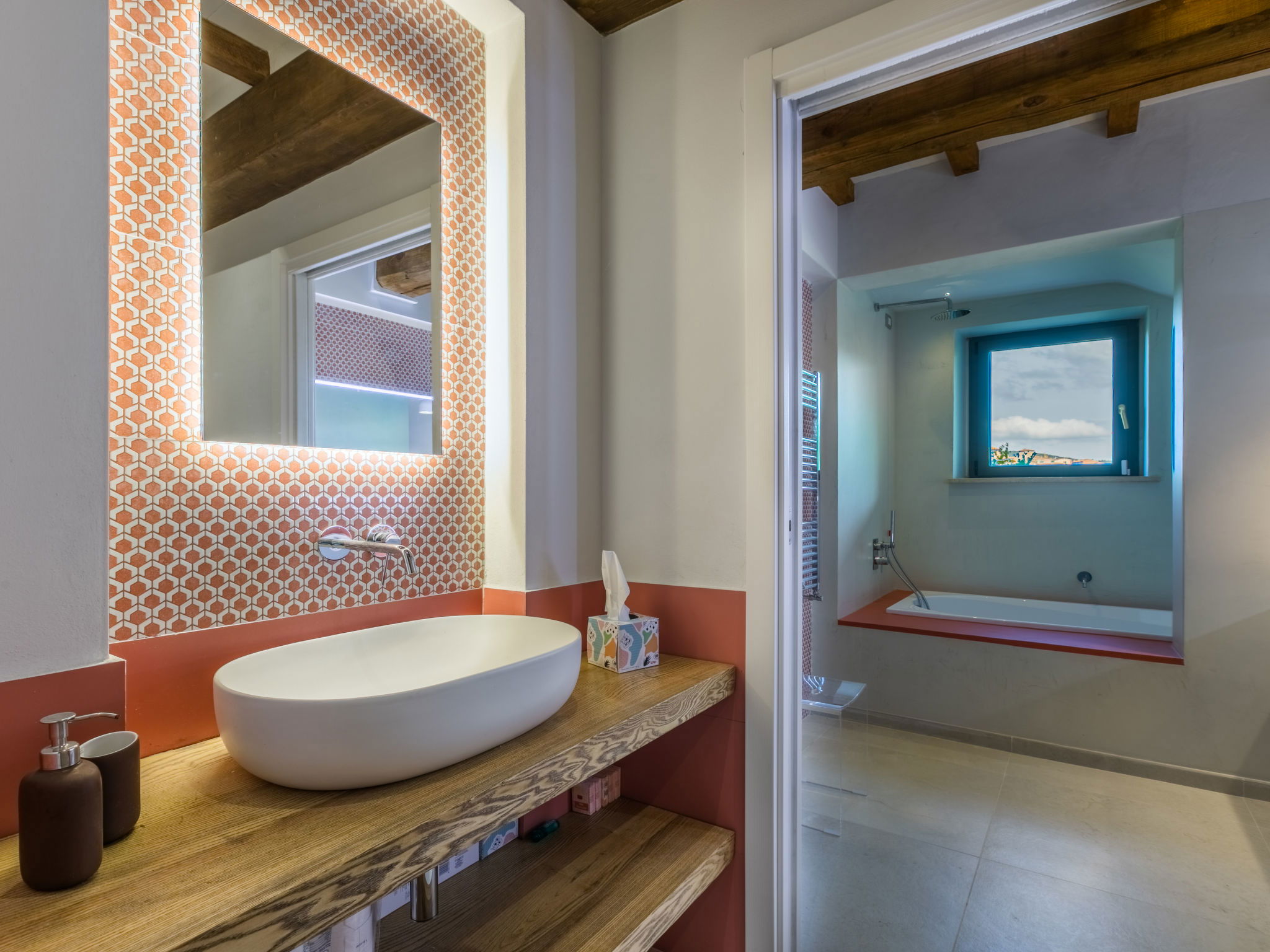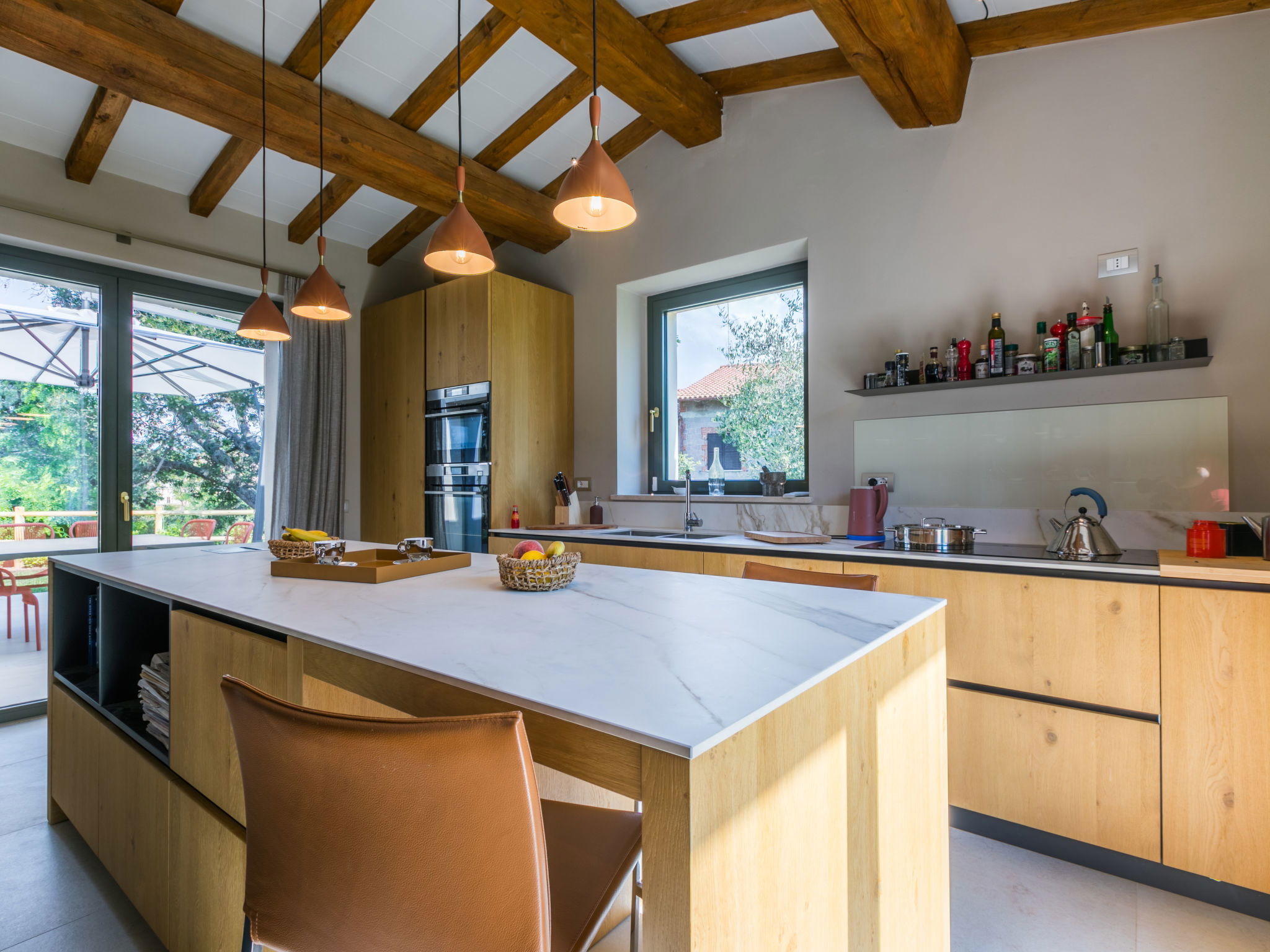 "Villa Montisi", 4-room villa 170 m2 on 2 levels. Spacious and bright, very tasteful and stylish furnishings: open large living/dining room with panoramic window with dining table and TV (flat screen), air conditioning. Exit to the garden, to the terrace. 1 room with panoramic window with 2 beds (80 cm, length 200 cm), air conditioning. Large, open kitchen (oven, dishwasher, 5 induction hot plates, toaster, kettle, microwave, electric coffee machine, Capsules for coffee machine (Nespresso) extra) with air conditioning. Exit to the patio. Bath/WC. Upper floor: open small, Studio. 1 double bedroom with panoramic window Dressing room with shower/bidet/WC and air conditioning. 1 large double bedroom with panoramic window with shower/bidet/WC and air conditioning. Air-conditioning, floor heating. Natural stone floors. 2 terraces, patio, garden, lawn. Terrace furniture, barbecue, deck chairs. Very beautiful panoramic view of the resort. Facilities: washing machine, dryer, iron, children's high chair, baby cot for up to 2 year olds, hair dryer. Internet (WiFi, free). Parking at the house. Please note: non-smokers only. Smoke alarm, fire extinguisher. The pool mentioned in the description is for private use. IT052037C2OY62BVYD